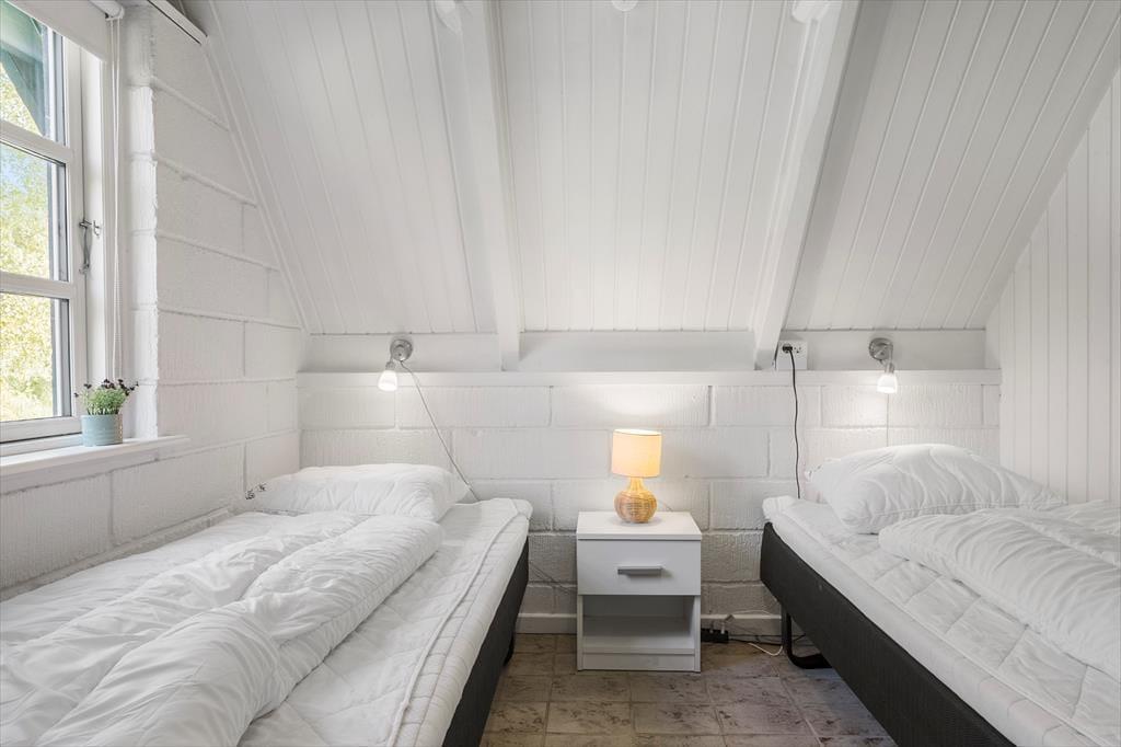 Det stråtækte sommerhus har ligget her på østkysten af den smukke Limfjordsø siden 1974, og det er sidenhen blevet renoveret, så det fungerer som en fin feriebolig for op til seks personer. Blandt andet er køkkenet moderniseret, og der er fladskærms-tv med dvd-afspiller i huset – men der er dog ingen wi-fi, så I har mulighed for at tage en pause fra de sociale medier, hvis I trænger til det. I stuen kan I tænde op i brændeovnen, inden I kryber sammen i sofaen med varm te og krydsogtværser eller samles til brætspilshygge omkring spisebordet. Et brusebadeværelse og et soveværelse ligger også her i stueplan, mens førstesalen byder på to værelser med ekstra sengepladser. Bemærk, at det ene værelse er et gennemgangsrum, og herfra har I også adgang til en overdækket altan.