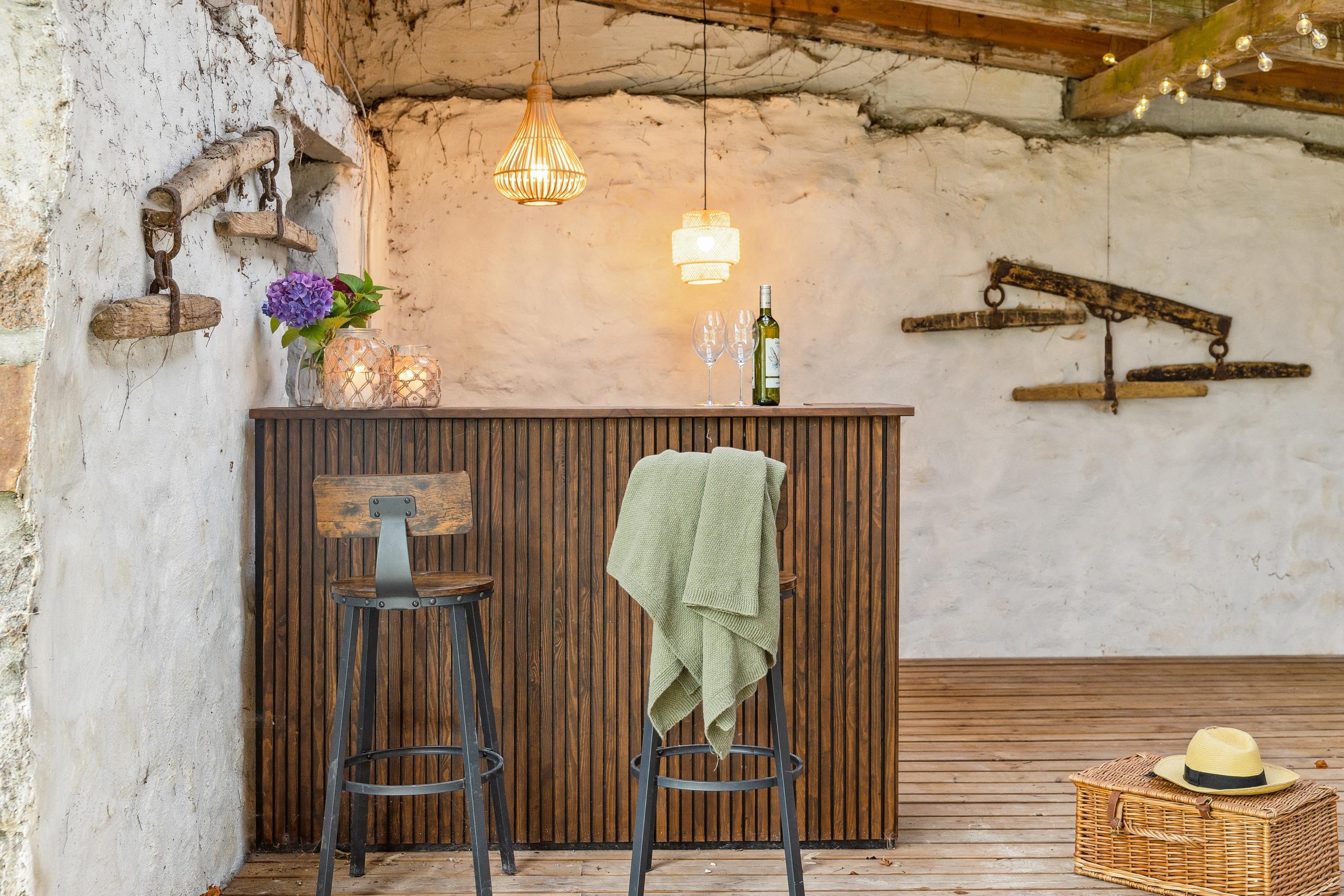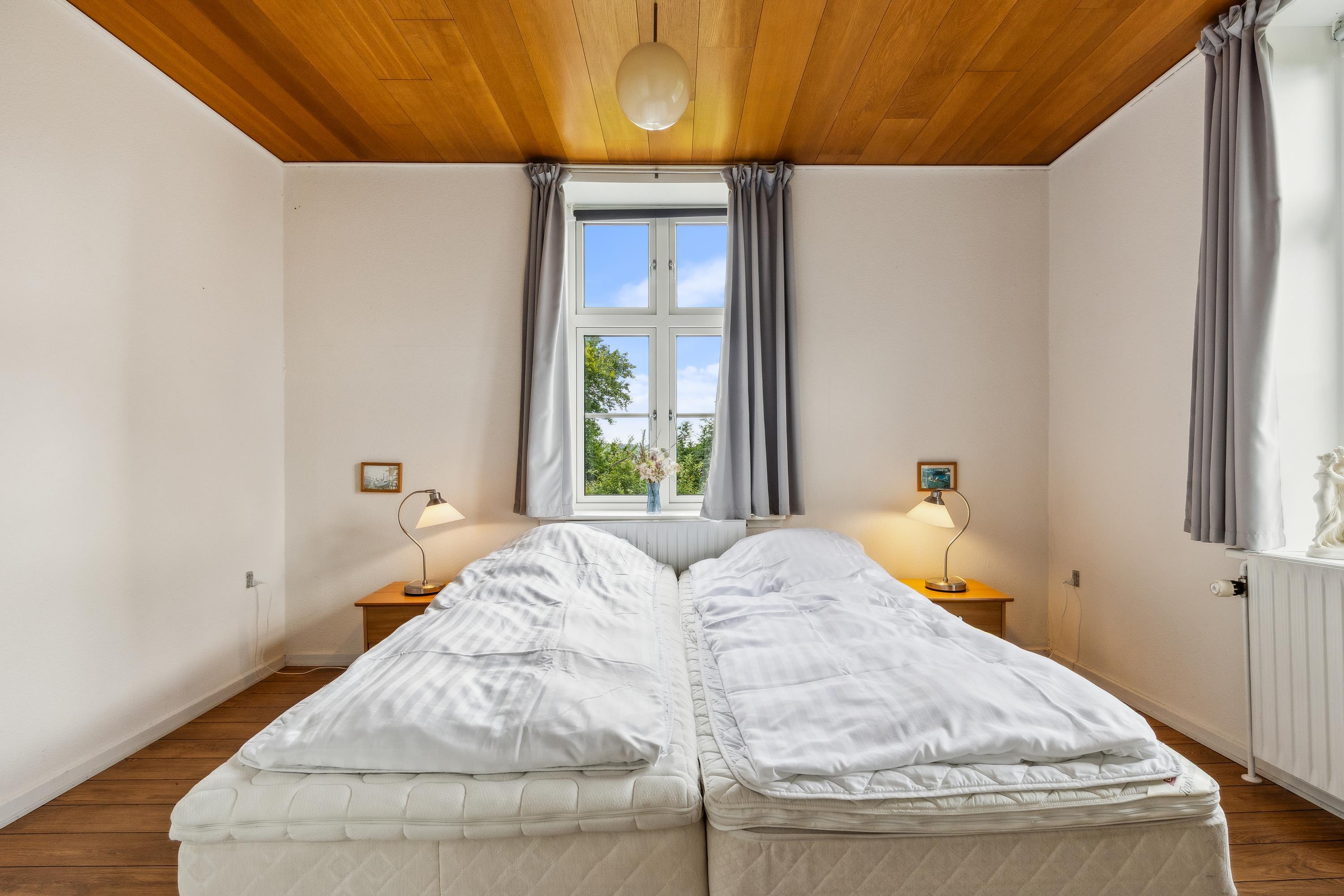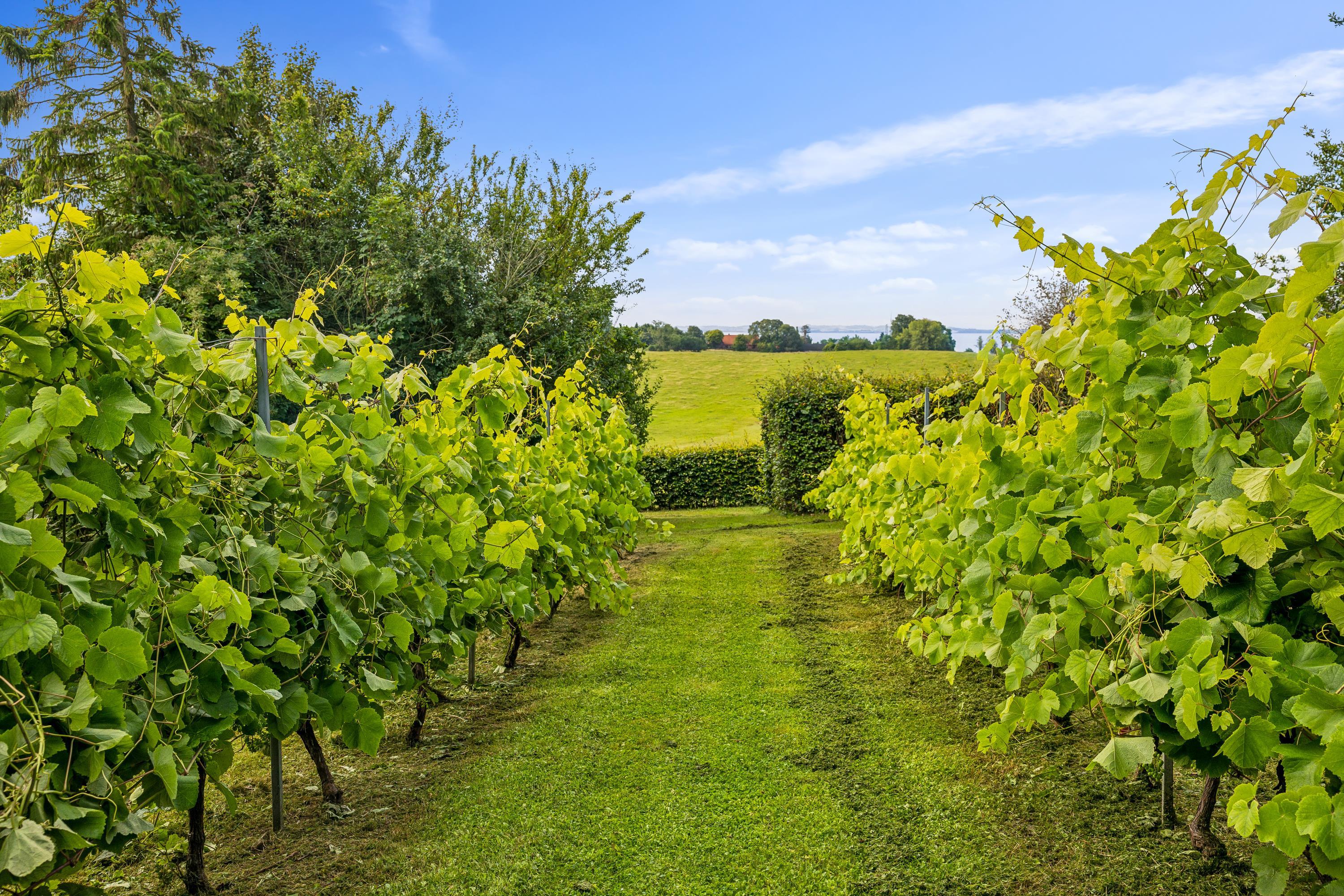 I Hovedbygningen er der plads til 26 personer, og så er der en dejlig, stor terrasse med udsigt ud over Kaløvig. Her er der desuden petanquebane, gynger, legehus og sandkasse samt adgang til fodboldbane og frugthave, og der er altså altid noget at give sig til – uanset om man er voksen eller barn.