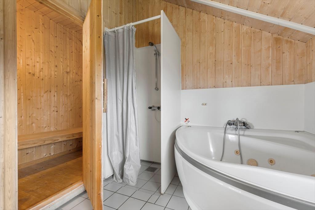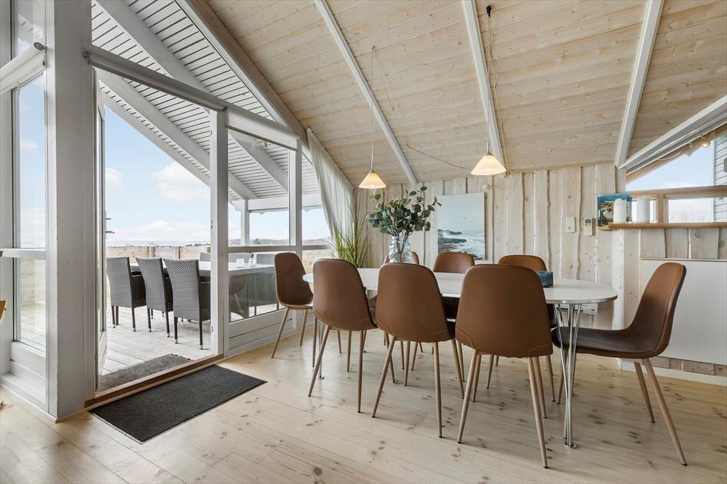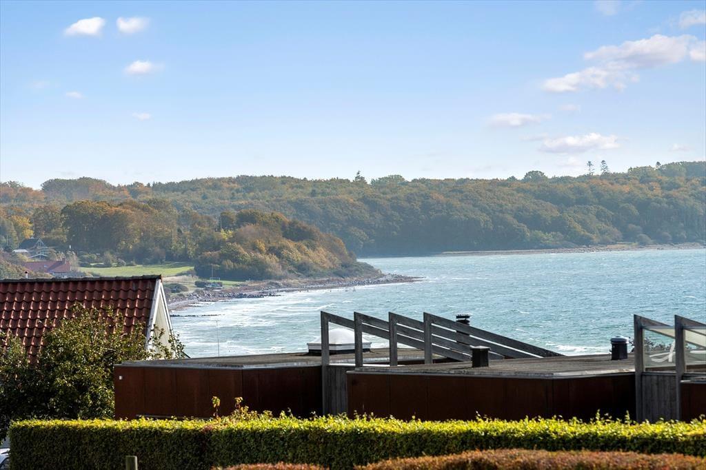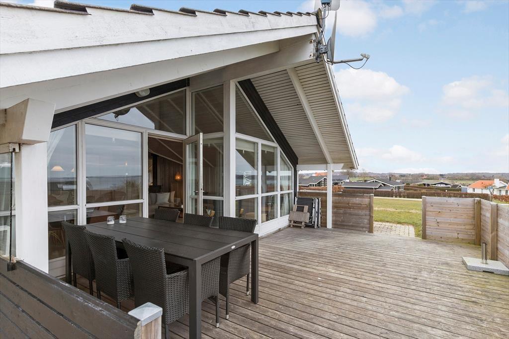 Det er udenfor, ferien virkelig folder sig ud. På den store terrasse kan du nyde udelivet med grill, solbadning og udsigt til horisonten, hvor hav og himmel smelter sammen. Fra huset har du en helt fantastisk panoramaudsigt over vandet – perfekt til stille morgener med kaffe eller lange aftener med et glas vin i hånden. Haven er indbydende og ugeneret, så du både kan finde ro i solen og legeplads til børnene. Vil du endnu tættere på havet, ligger stranden kun en kort gåtur væk. Her er der plads til at være sammen – eller bare være.