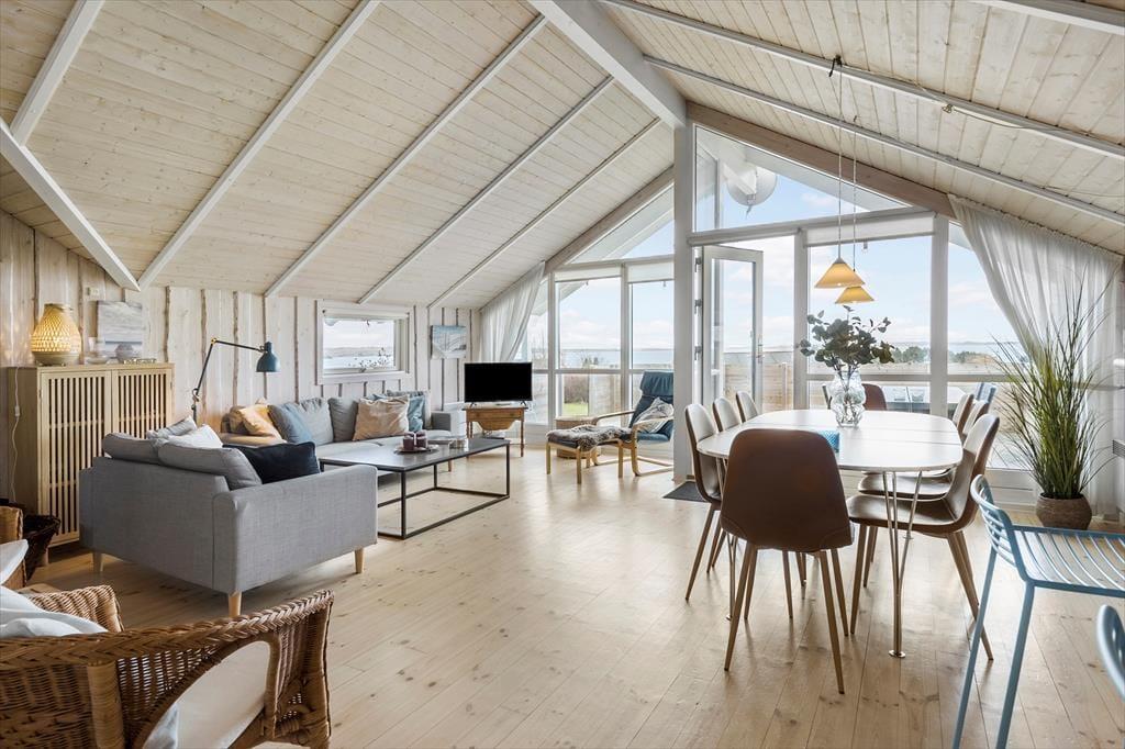 Velkommen til dit ferieparadis på Rypevej 2, Djursland. Her træder du ind i et lyst og indbydende sommerhus, hvor komfort og hygge er tænkt ind i hver en krog. Allerede fra stuen bliver du mødt af en betagende panoramaudsigt over vandet – en udsigt, der følger dig fra morgenkaffen til solnedgangen. Store vinduespartier trækker lyset og landskabet helt ind i opholdsrummet, hvor du kan slappe af i bløde møbler med brændeovn, tv og alt, hvad der skaber feriestemning. Køkkenet er veludstyret, og hele huset emmer af ro og kvalitet – klar til at danne rammen om dine bedste feriedage.