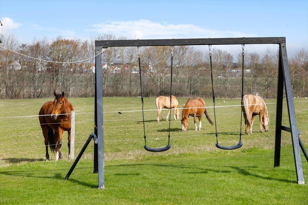 Boligen er på 103 m² og ligger på en 1.200 m² stor grund, hvor der bl.a. er gynge og sandkasse.