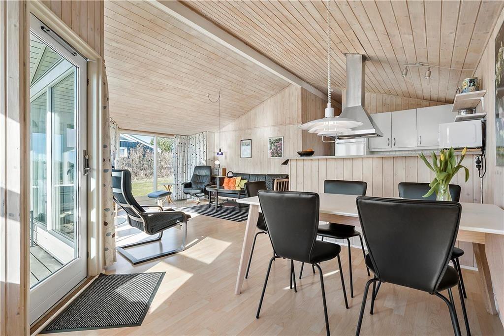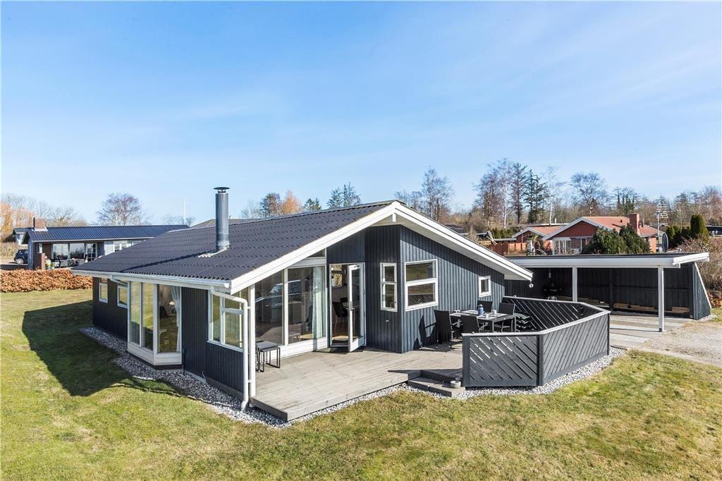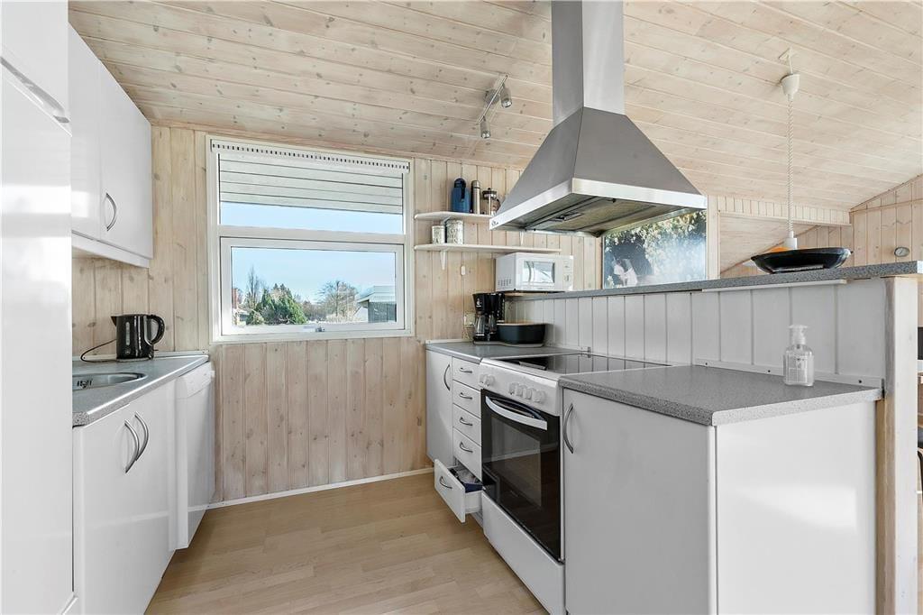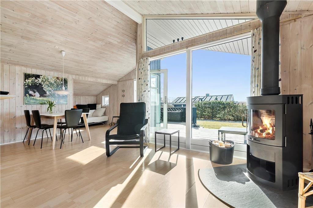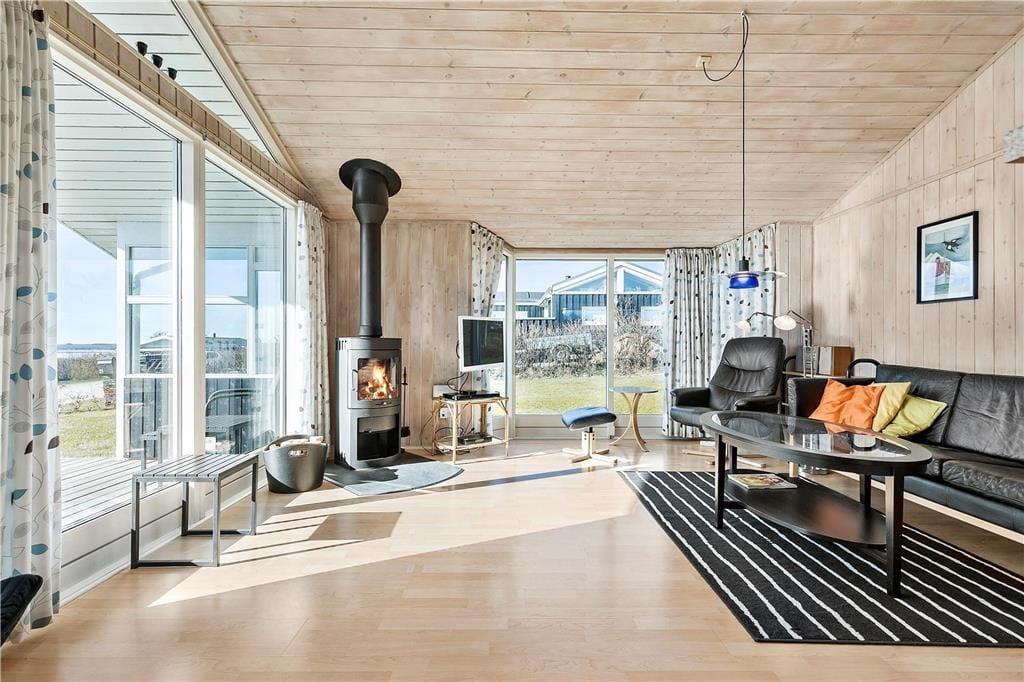 Sommerhus i Følle Strand, Østjylland, med plads til 6 voksne. Der er en hyggelig indretning med bl.a. brændeovn, og du finder desuden vaskemaskine og opvaskemaskine i boligen.