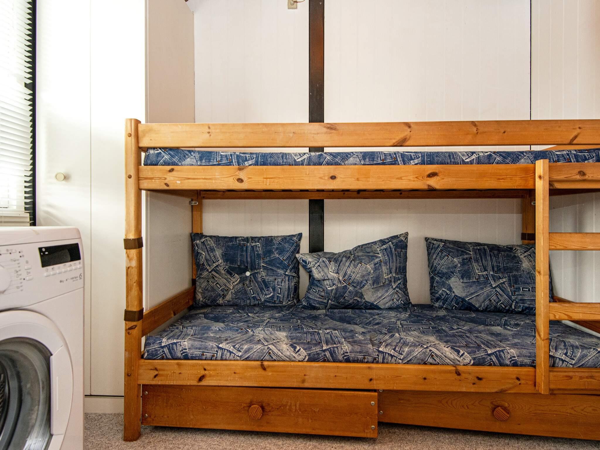 Ejendommen byder på tre soveværelser: to værelser med hver to enkeltsenge, der kan arrangeres som dobbeltværelser, og et tredje værelse med en køjeseng med to køjer, hvilket gør det ideelt for børn. Det åbne køkken er forbundet med spiseplads og stue, hvilket skaber et indbydende rum til fælles måltider og hyggelige aftener sammen. For komforten er huset udstyret med en energieffektiv varmepumpe, mens en traditionel brændeovn tilføjer ekstra varme og atmosfære på køligere dage. Brænde medfølger ikke.