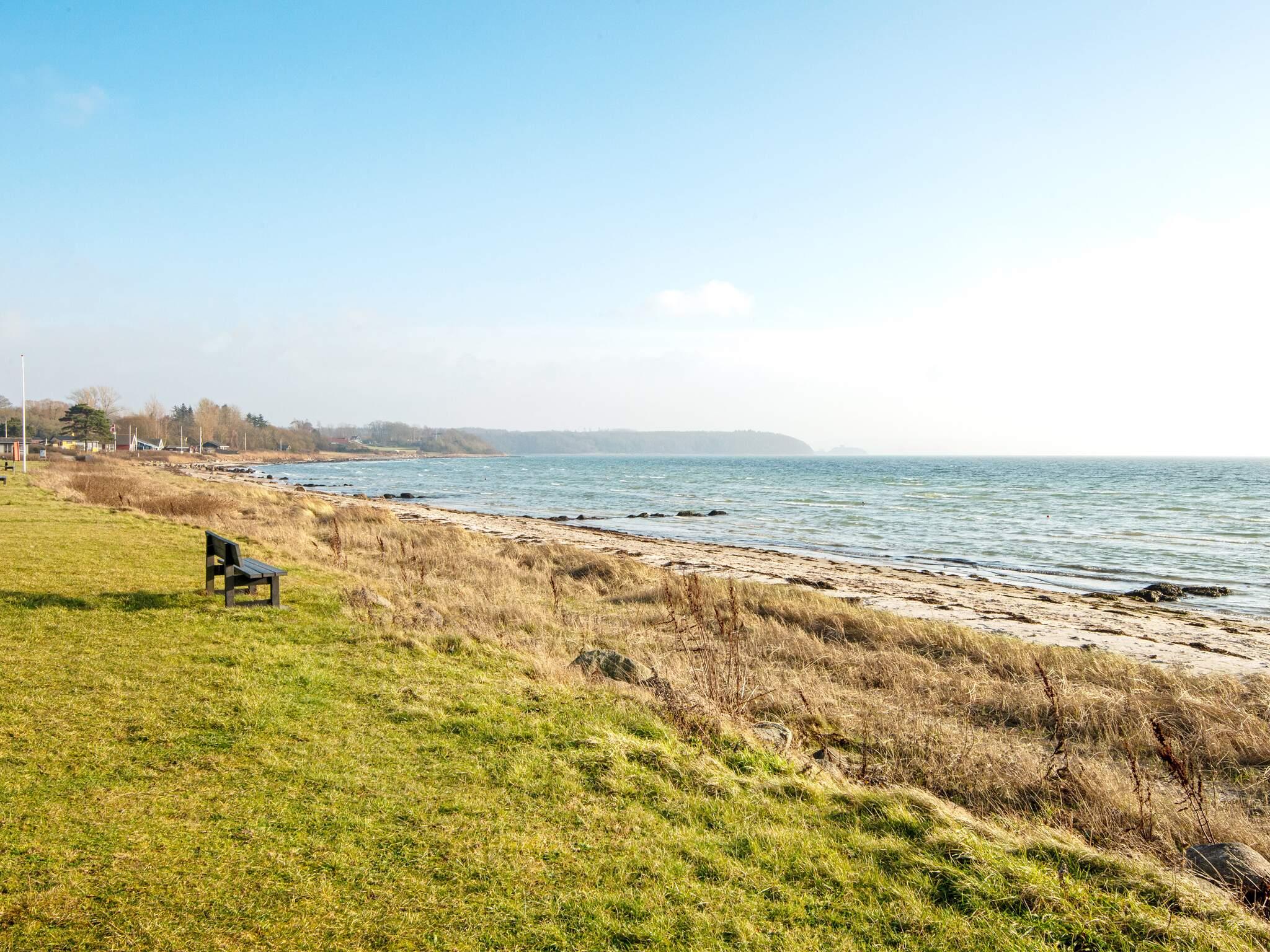 Fra opholdsstuen træder du ud på en overdækket terrasse, der er indrettet til udendørs afslapning. Børn kan hygge sig på græsplænen med legesættet, mens de voksne slapper af i den friske luft. En carport er tilgængelig på ejendommen, der tilbyder praktisk læ til dit køretøj. Blot 300 m fra huset ligger Følles lavvandede sandstrand, perfekt til badning og familieaktiviteter. I sommersæsonen er der badebroer til rådighed for gæsterne.