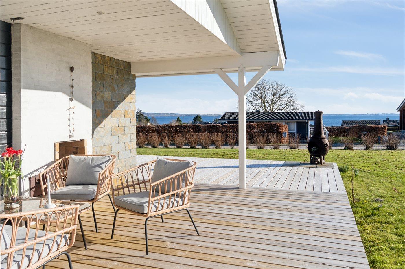 Dette velholdte sommerhus er beliggende tæt på badestrand og med udsigt til vandet og Kalø Slotsruin.