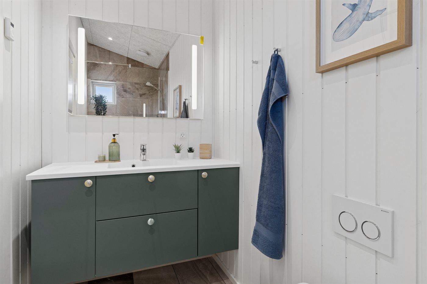 Der er 2 badeværelser med bruseniche og 2 toiletter. Der er gulvvarme på 2 badeværelser.