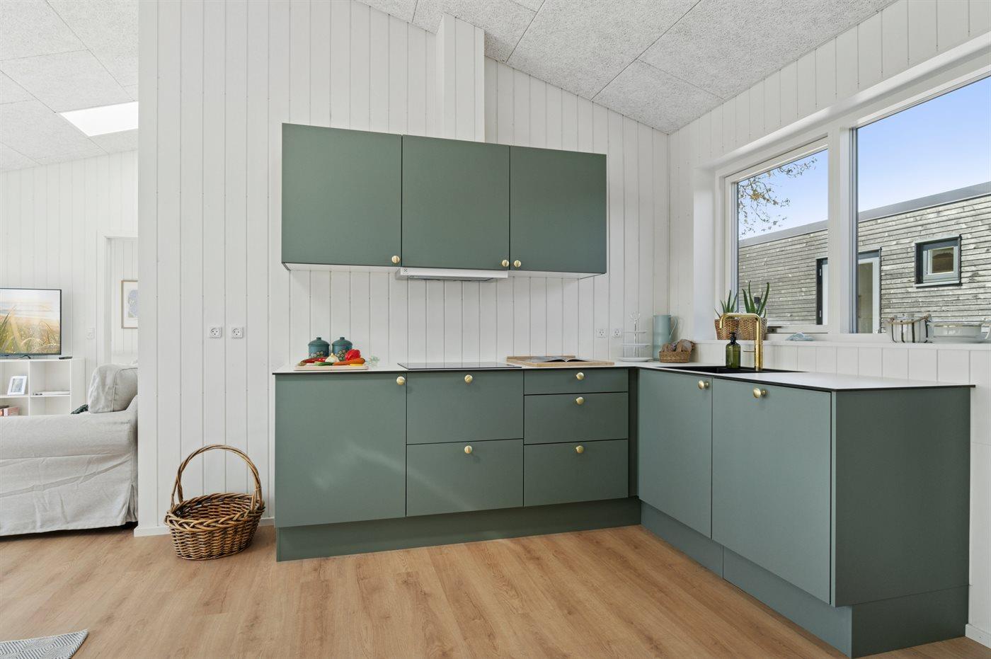 Køkkenet er udstyret med 1 køleskab. Der er 4 induktionskogeplader, varmluftovn samt opvaskemaskine.