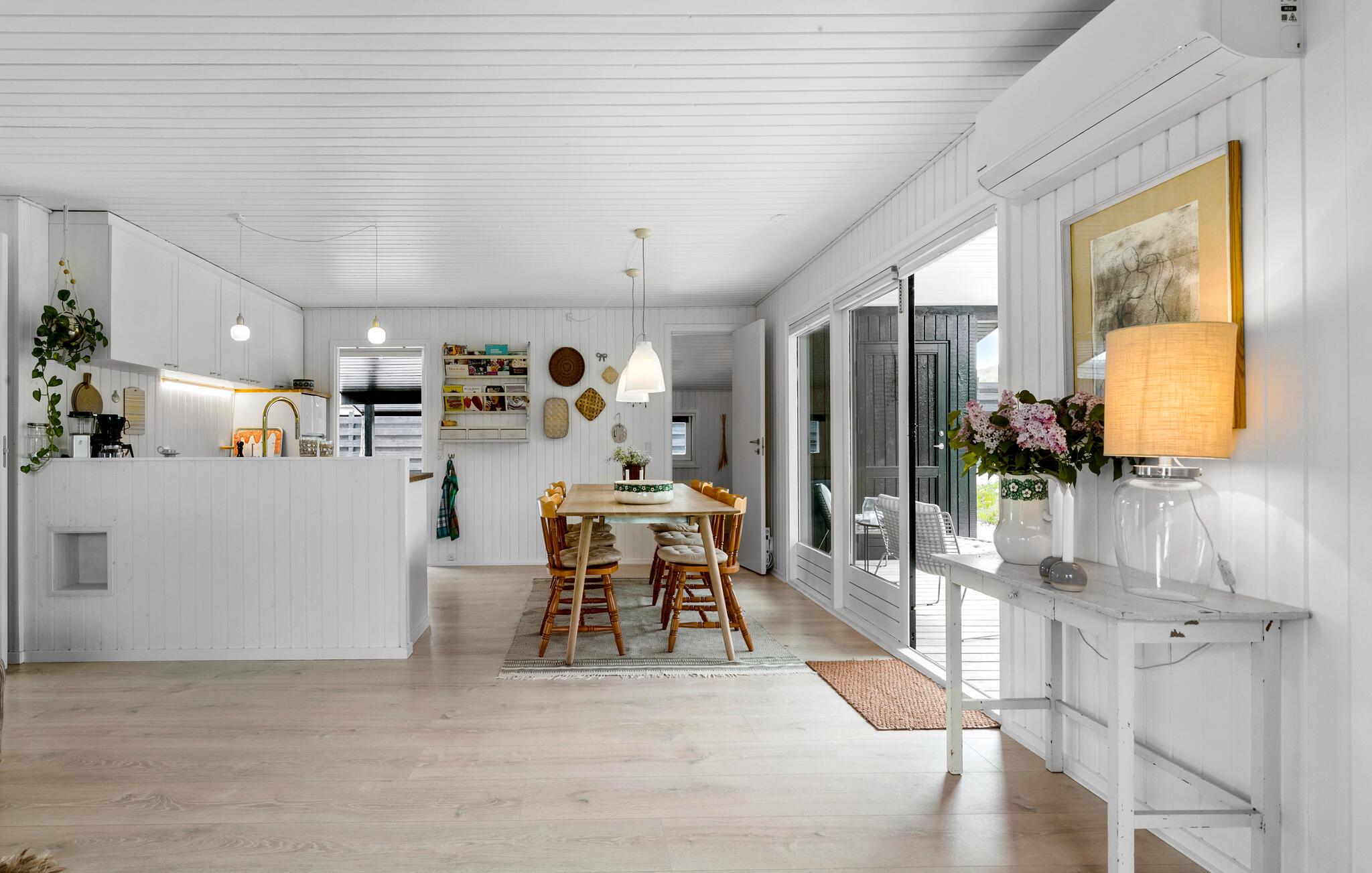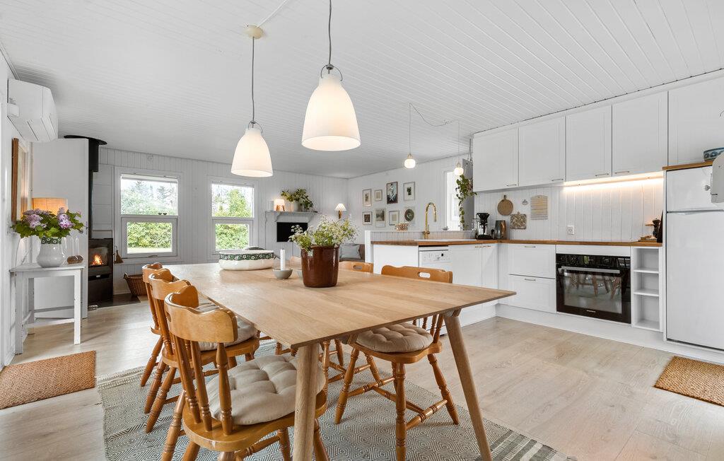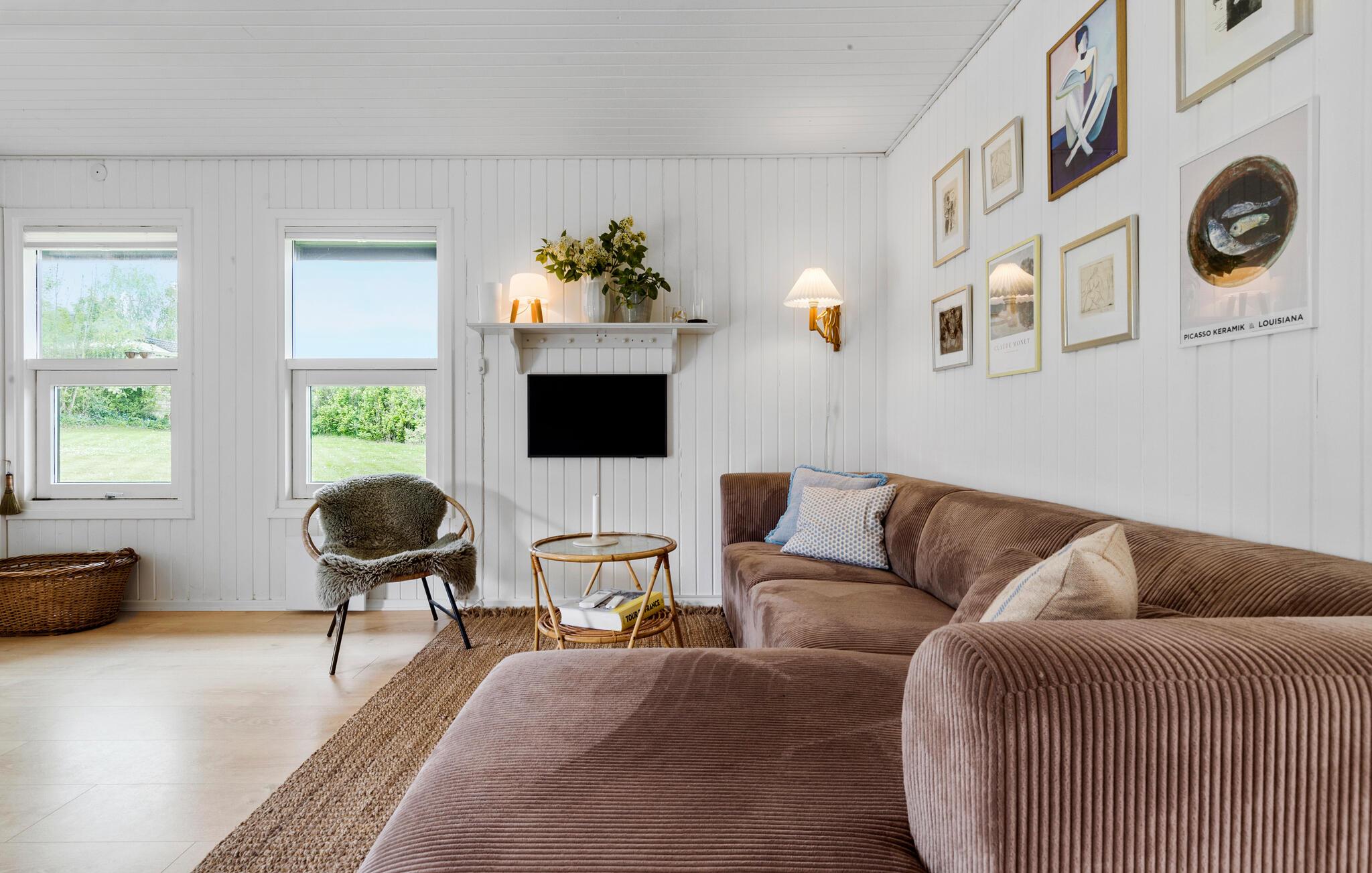 Ren ferieafslapning venter jer i dette komfortable hus, som er godt placeret nær stranden og er det optimale sted for en afslappende ferie. Find jer godt til rette i de lyse, stilfulde og moderne møblerede værelser, den indbydende sofa lægger op til at tilbringe hyggelige aftener ved den knitrende brændeovn.