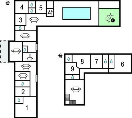 Badeværelse (nr. 9) - WC. Varmt og koldt vand. Bruser
