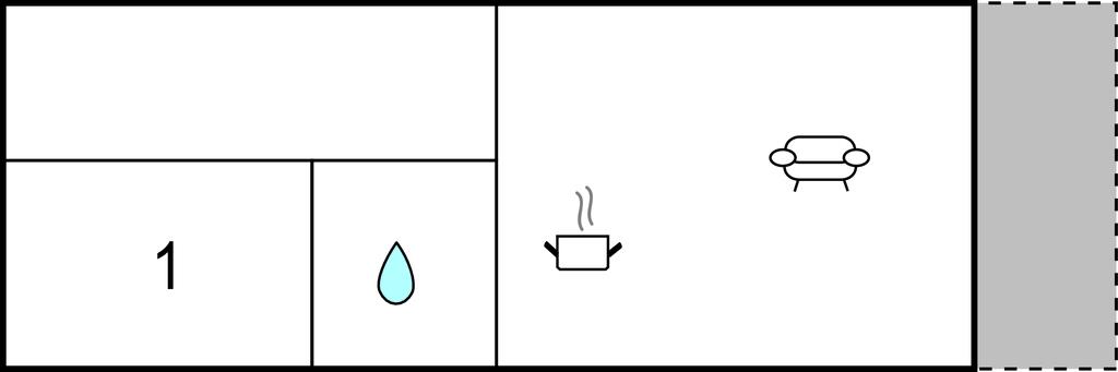 Opholdsstue/køkken - 2 Sovepladser. (Sofa, madras eller lignende).