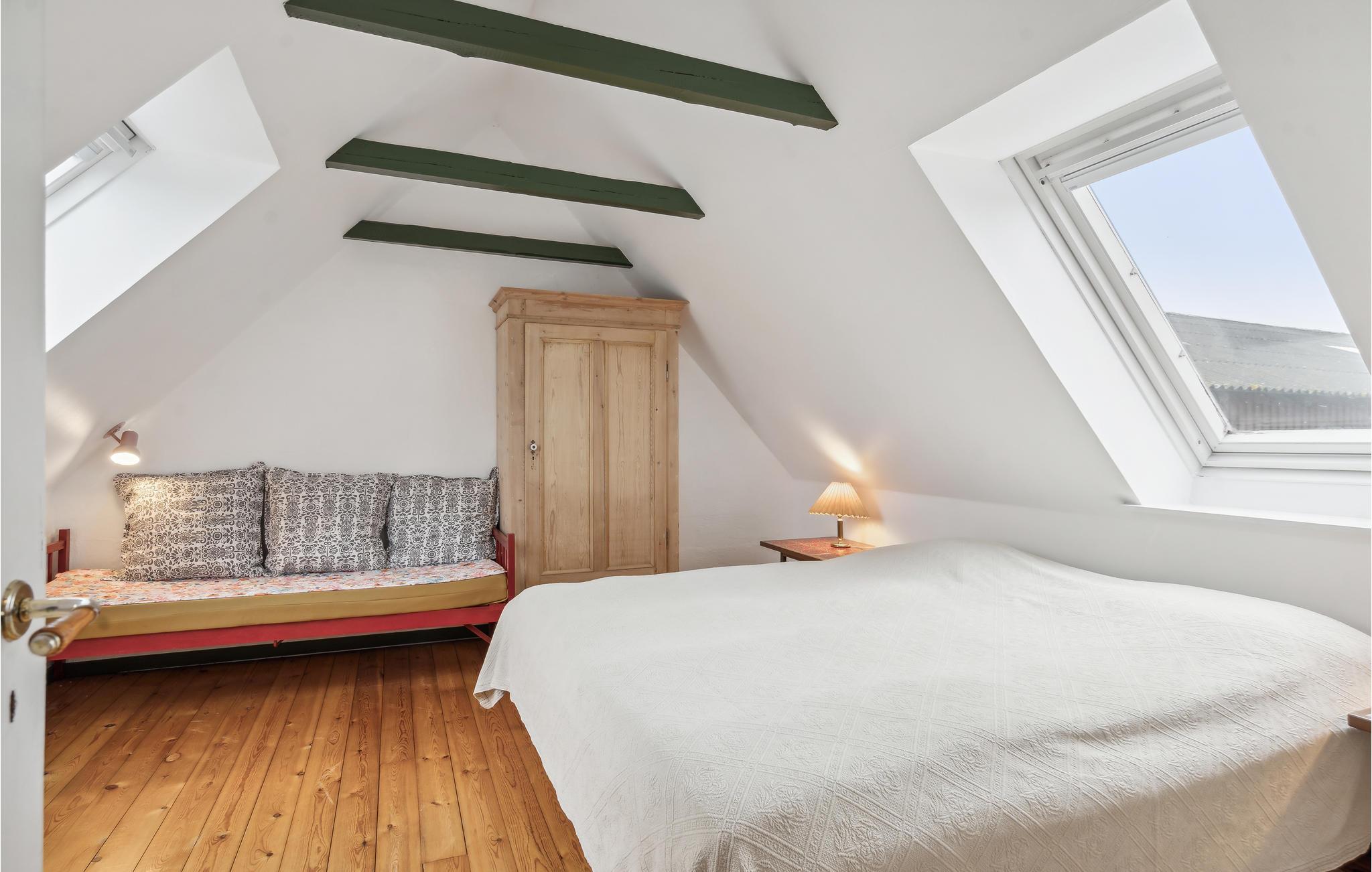 Der er lagt op til nogle herlige dage i Dyreborg, hvor denne toetagers lejlighed kan blive jeres base. Boligen har en enkelt og funktionelt indrettet med træk fra klassisk landstil, og den hvidkalkede gård, som lejligheden er en del af, tilfører et ekstra strejf af fynsk idyl til jeres ferie. Ud over rummene indenfor kan I rykke ud på den åbne terrasse og nyde en grillmiddag, solen eller sætte jer med ferieplanlægningen. Hvis I er en større gruppe, som holder ferie sammen, kan I reservere en af de andre lejligheder.