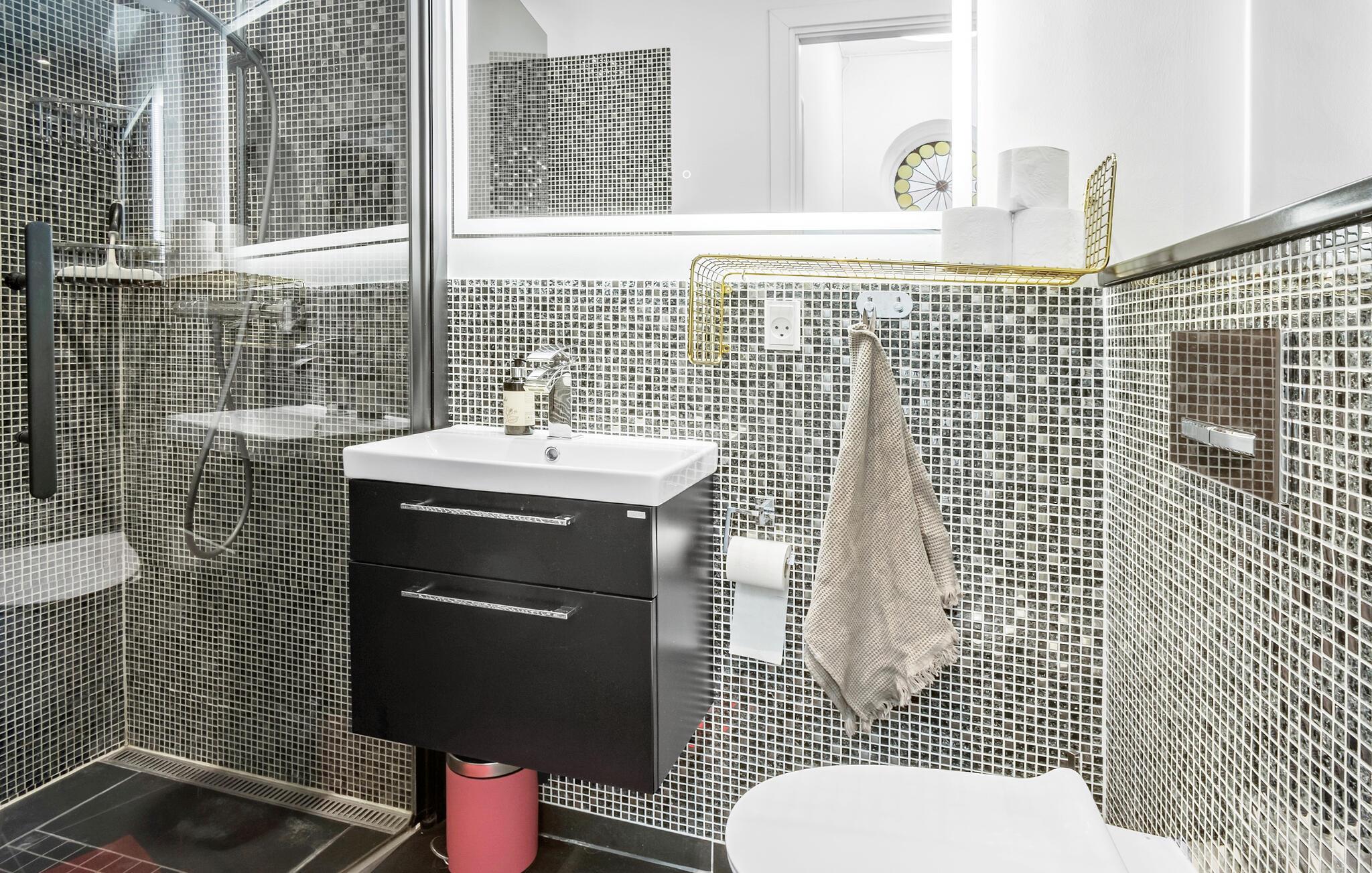 Badeværelse (nr. 1) - WC. Varmt og koldt vand. Bruser