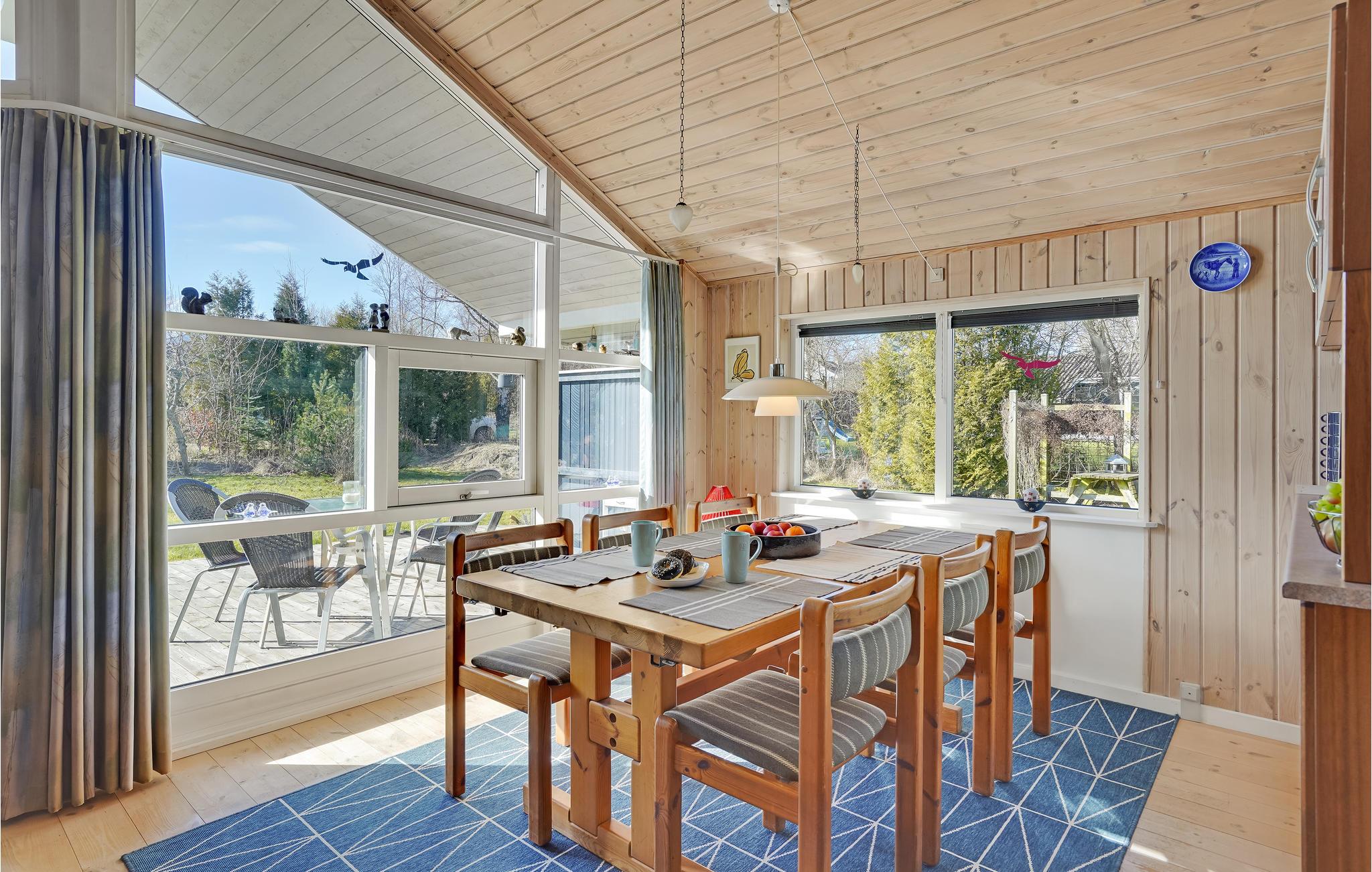 Glæd jer til en afslappende ferie med jeres familie i dette hyggelige sommerhus. Nyd tiden sammen med jeres kære og nyd husets gode faciliteter. Her kan I være sammen om at lave mad, lege og slappe af i sofaen og hygge jer. I sommermånederne kan I nyde jeres morgenkaffe på terrassen og se jeres børn spille fodbold på græsplænen.