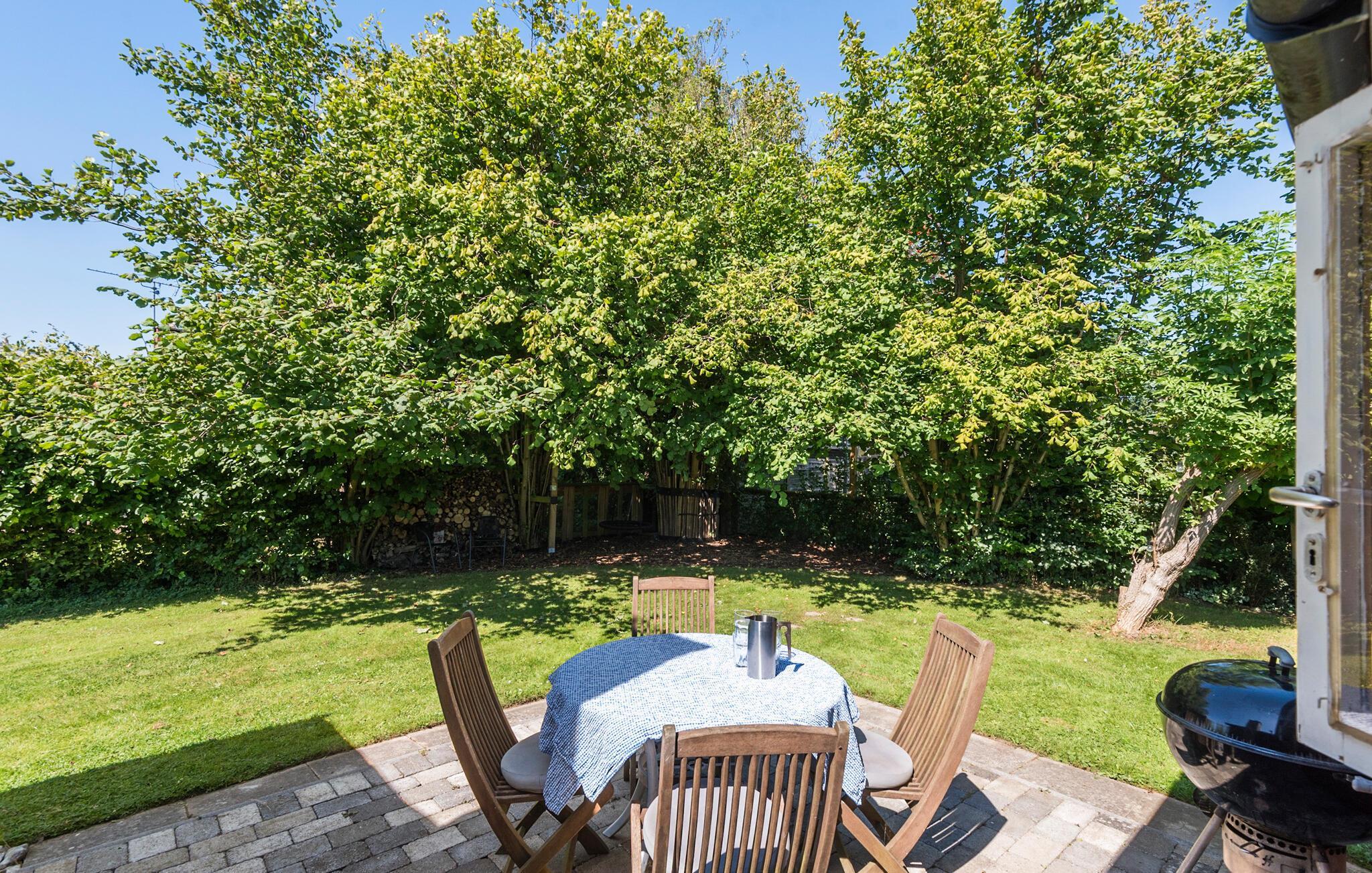 Udendørs byder haven på en overdækket terrasse med havemøbler og grill, perfekt til udendørs middage og hyggelige grillaftener. Bålpladsen er ideel til at riste skumfiduser og fortælle historier under stjernerne. Kun en kort gåtur fra huset finder I en skøn sandstrand, hvor I kan svømme, bygge sandslotte eller tage en afslappet gåtur langs vandet.