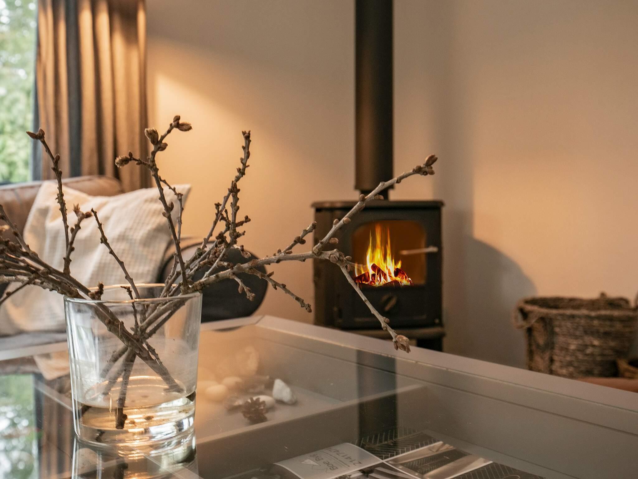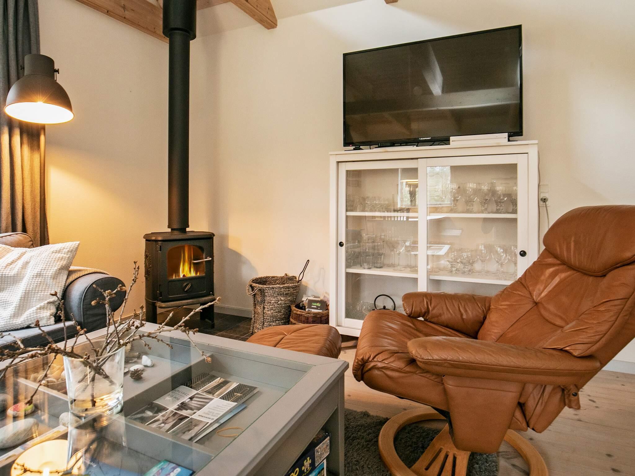 1 Opholdsstue: Brændeovn, radio, Apple TV, tv, høj stol