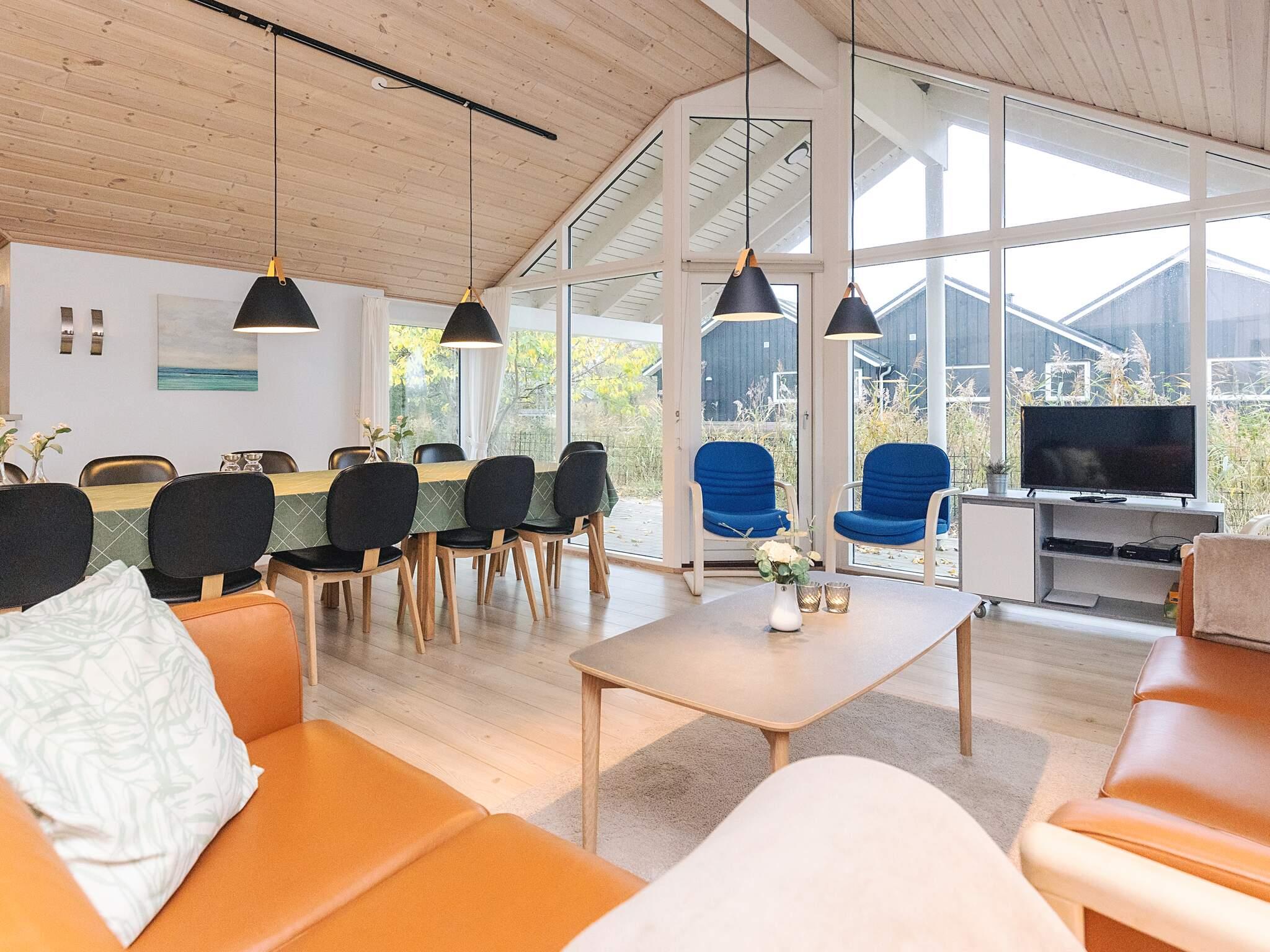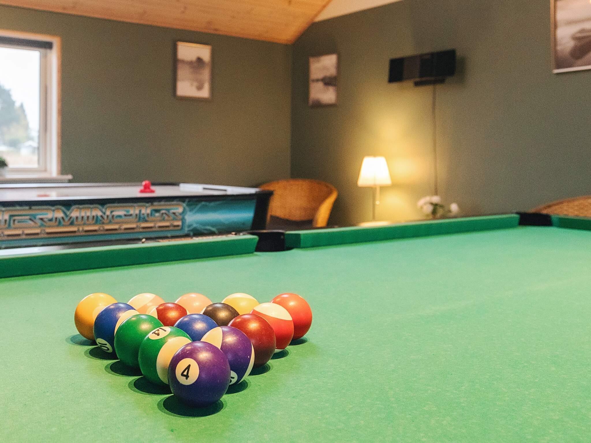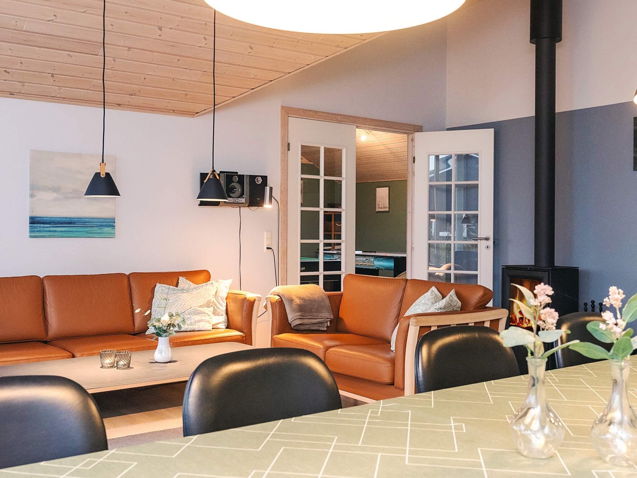 På en stor naturgrund ligger dette sommerhus. Huset er velindrettet og rummer alt, hvad hjertet kan begære af aktivitets- og udfoldelsesmuligheder. I det 30 m² store aktivitetsrum er der muligheder for at udfordre hinanden i billard eller bordtennis. Huset indeholder to badeværelser, hvoraf det ene er udstyret med 6-personers spabad og adgang til sauna. Smagfuldt indrettet stue med stemningsfulde møbler, brændeovn og fladskærms-tv. På den store grund, der omkranser huset, er der tænkt på de mindste gæster med gynger og sandkasse. Ligeledes er huset udstyret med barneseng og højstol. Hvis vejret svigter, kan I hygge jer i stuen foran brændeovnen. På grund af husets størrelse afviger prisen på rengøring fra den normale listepris.