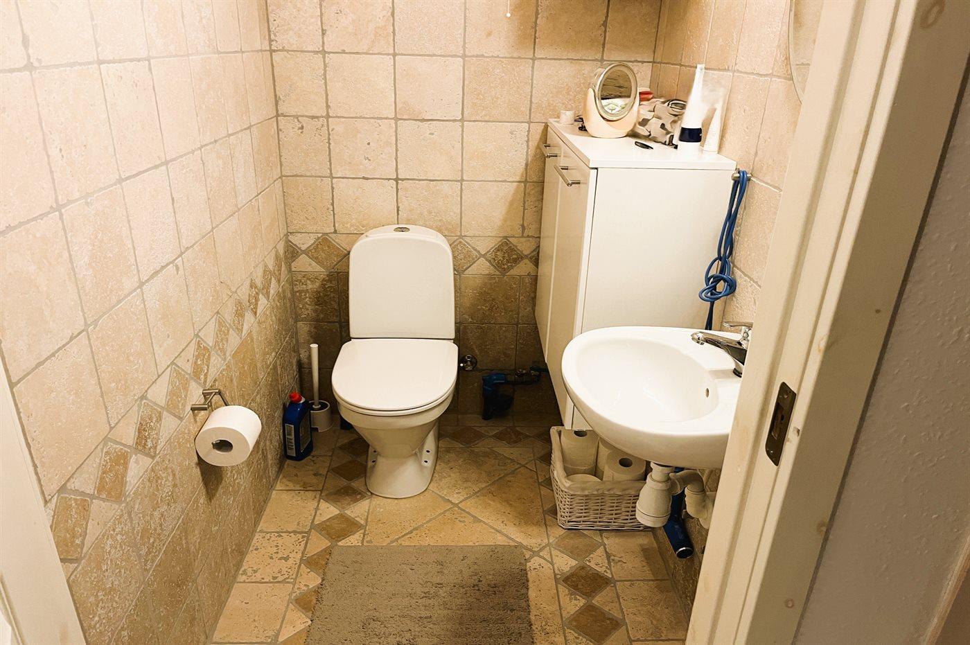 Der er 1 badeværelse med bruseniche og 2 toiletter, heraf 1 gæstetoilet. Der er gulvvarme på 1 badeværelse. Der er gulvvarme på gæstetoilettet. I saunaen er der mulighed for afslapning.