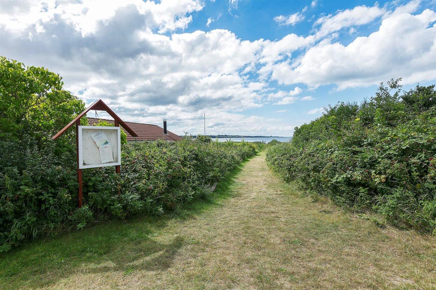 Ferieboligen er beliggende på en 701 m² stor havegrund. Der er 200 m til havet. Der er en badebro i nærheden. Nærmeste forretning er beliggende i en afstand af 3500 m. Der er en golfbane i en afstand af 5600 m. Til ferieboligen hører åbent terrasseareal. Desuden er der overdækket terrasse. Grill til rådighed. Parkering ved ferieboligen.