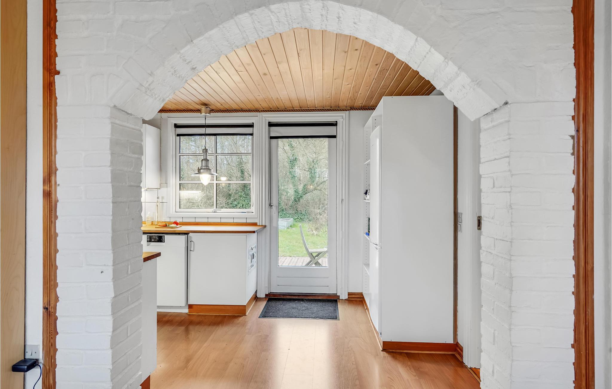 Velkommen til dette hyggelige feriehus med pæn indretning og charmerende detaljer, såsom de synlige loftsbjælker under det spidse tag på første sal eller buegangen mellem køkken og spisestue.