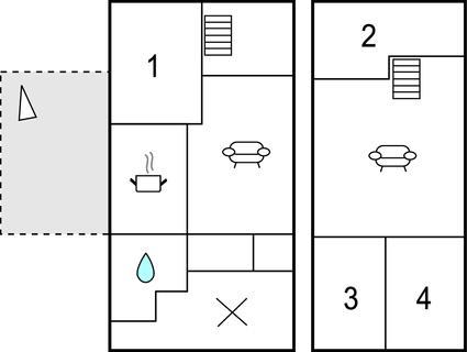Til huset hører en dejlig terrasse, som er udstyret med diverse havemøbler til solbadning og udendørsspisning. Børnene vil elske at pusle rundt i haven, og har I hunde, så kan de også boltre sig på græsset (op til to husdyr er velkomne her). Om aftenen kan I tænde op i grillen og samles til en hyggelig grillaften. Der er også bålplads til snobrødsbagning, ristede skumfiduser og hyggesnak sent om aftenen, mens flammerne lyser op i mørket.