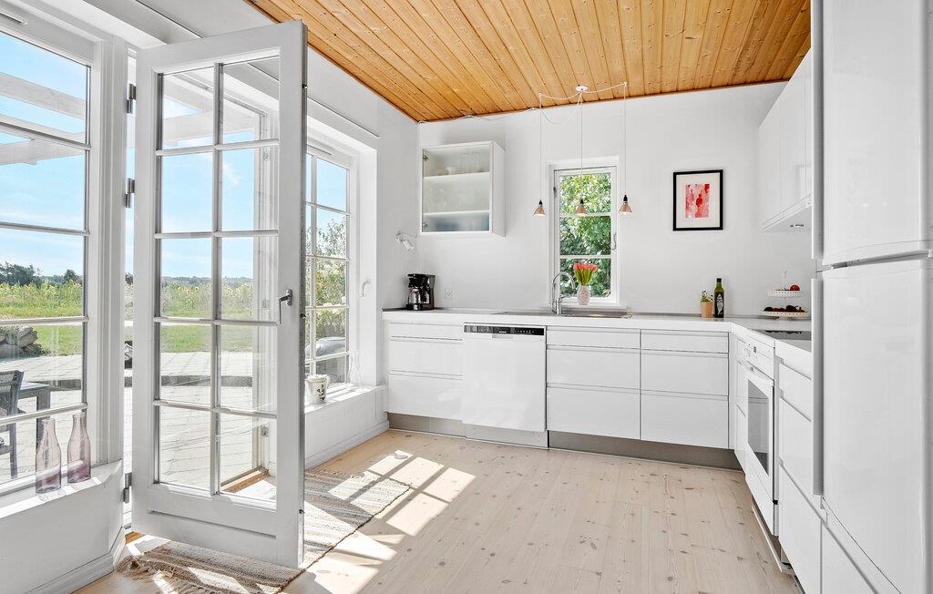 Fra køkkenet kan I træde direkte ud på en stor terrasse, hvor I kan sætte jer til rette for at nyde solen og den vidunderlige udsigt. Dagene rundes af på bedste vis med grillretter i de fredfyldte omgivelser.