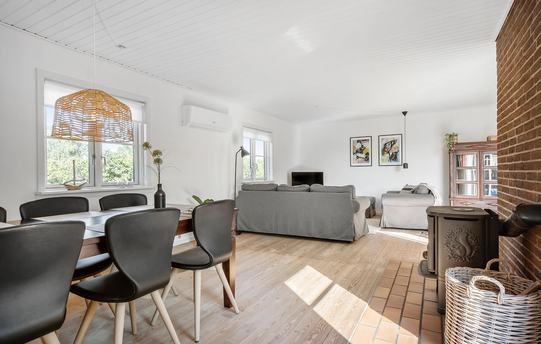 Velkommen til dette skønne hus, der ligger i rolige omgivelser på smukke Sydfyn og danner rammen om en herlig ferie med familien. Huset er dejligt indrettet med en stor åben stue, der prydes af lyse træpaneler og delvist rå murstensvægge, der giver det indre et både flot og rustikt udtryk og får en masse dagslys gennem de mange vinduespartier. Skulle vinden bide lidt fra sig, kan I tænde op i brændeovnen og nyde dens knitrende lydtapet til madlavningen i det veludstyrede køkken og en hyggelig aftensmad ved spisebordet.