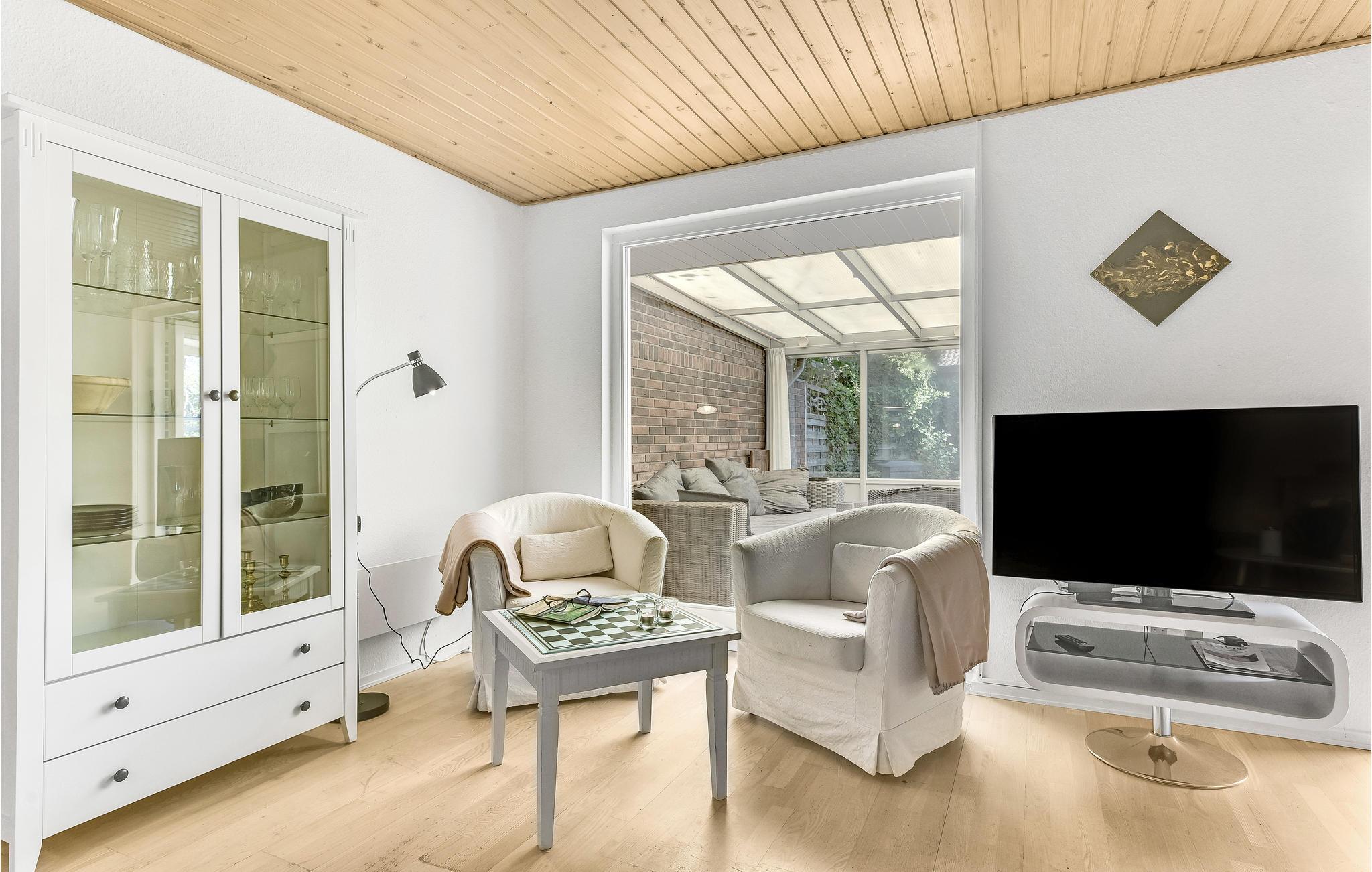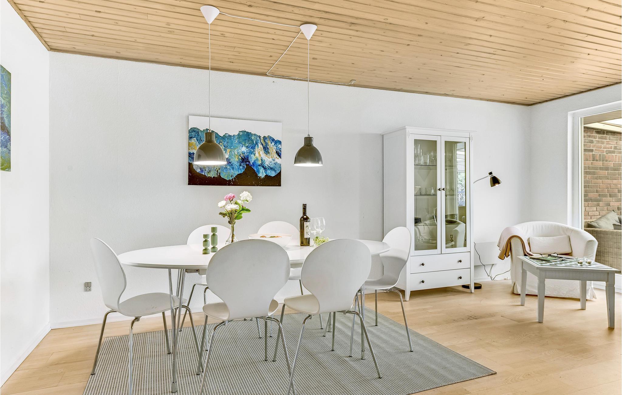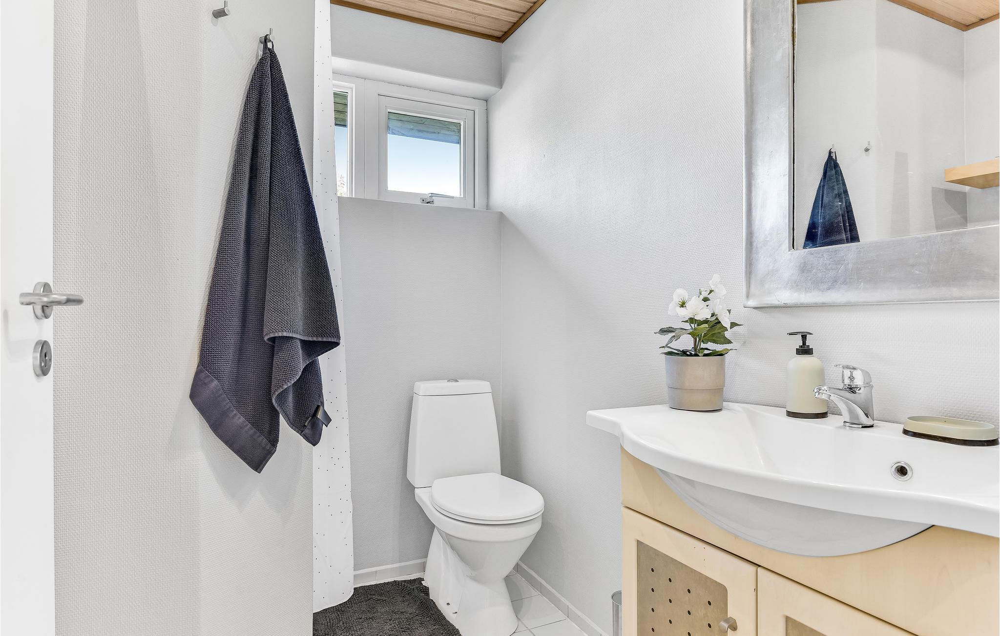 Find jer til rette i dette attraktive feriehus, der har pæne, lyse rum og en charmerende udestue med plankegulv og husets flotte ydermur. I nogle af rummene er der gulvvarme, så her er et behageligt klima selv i årets kolde måneder.