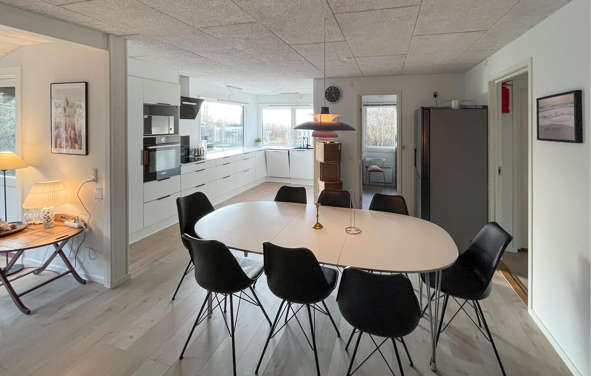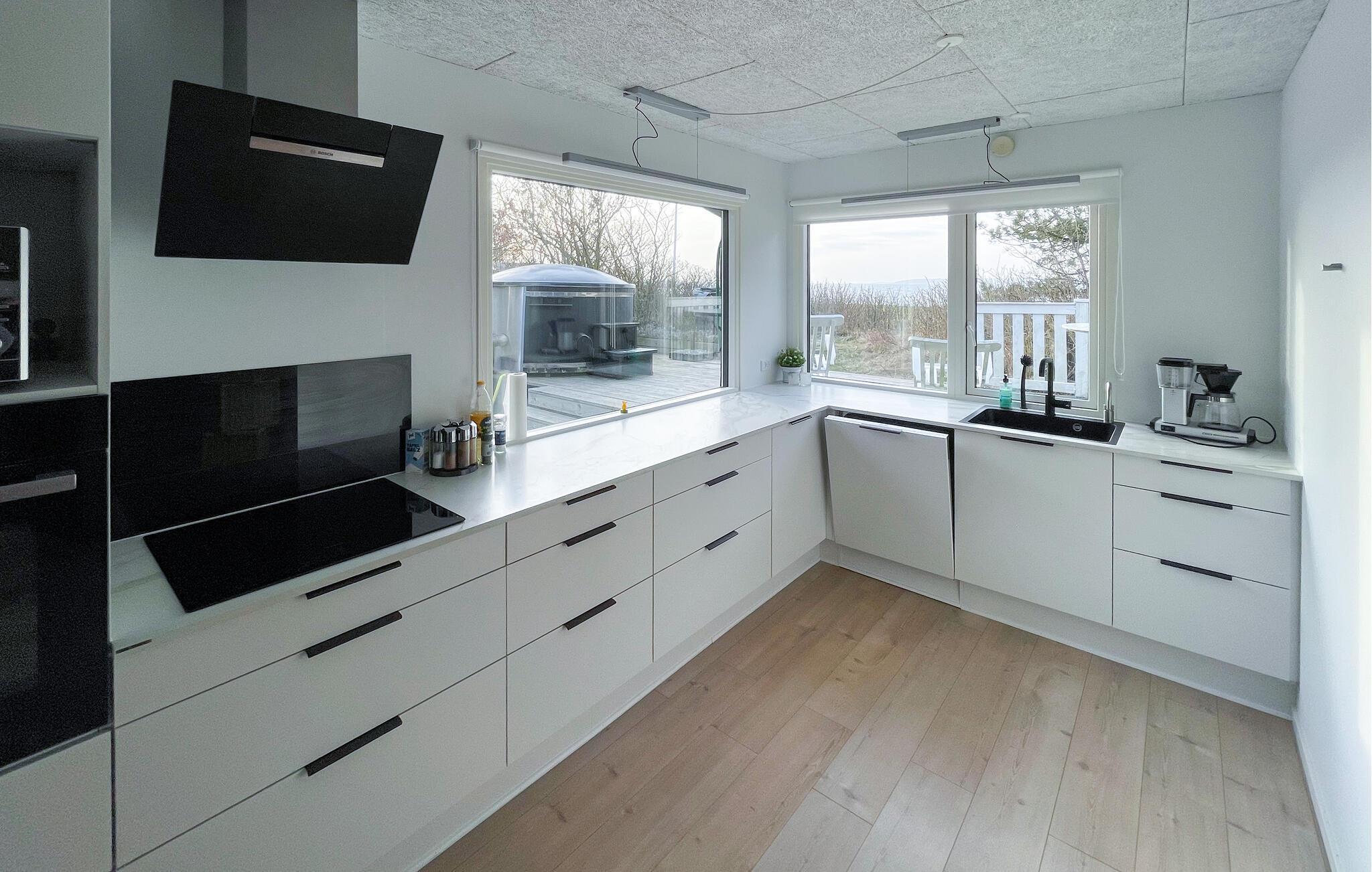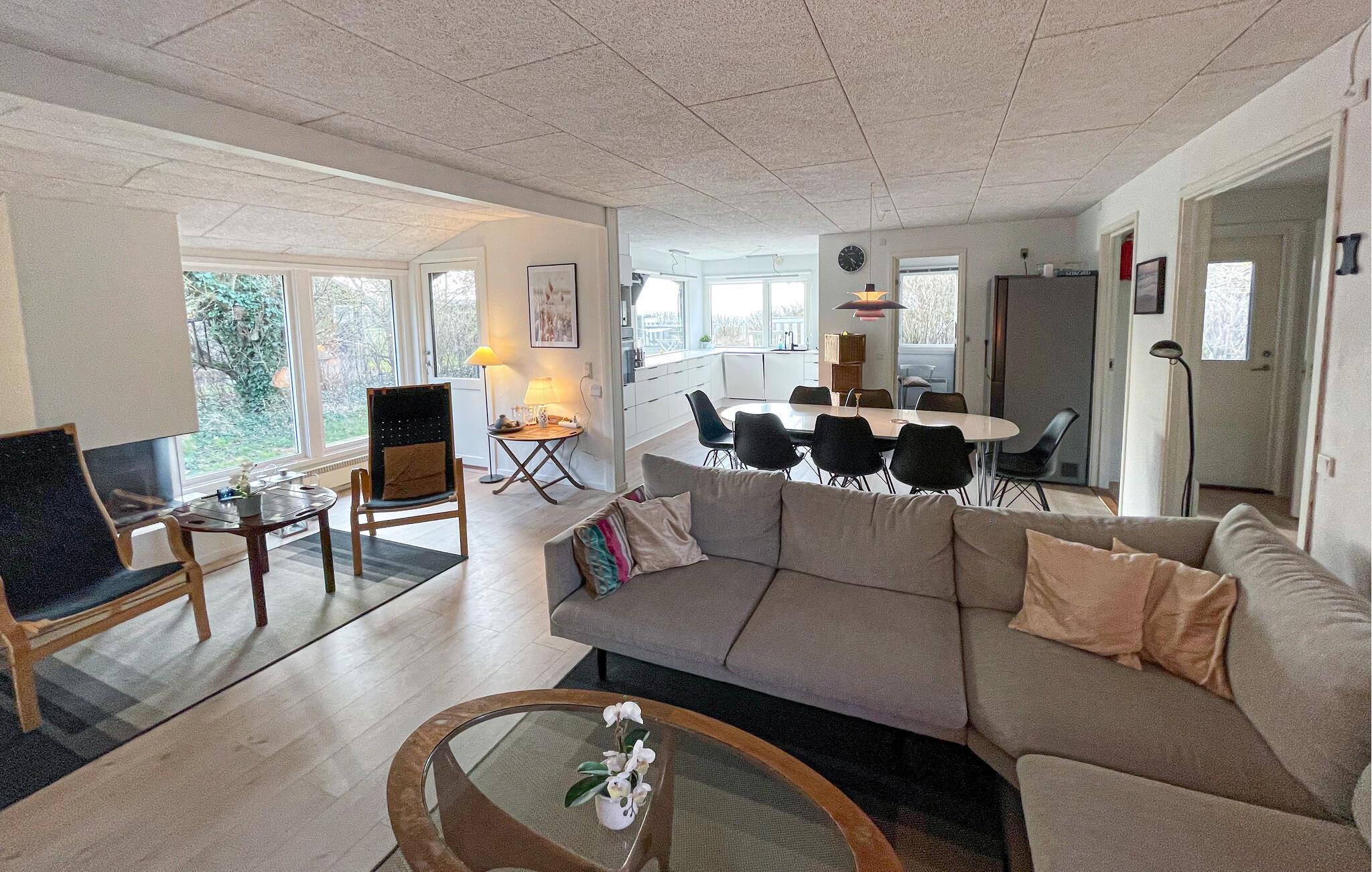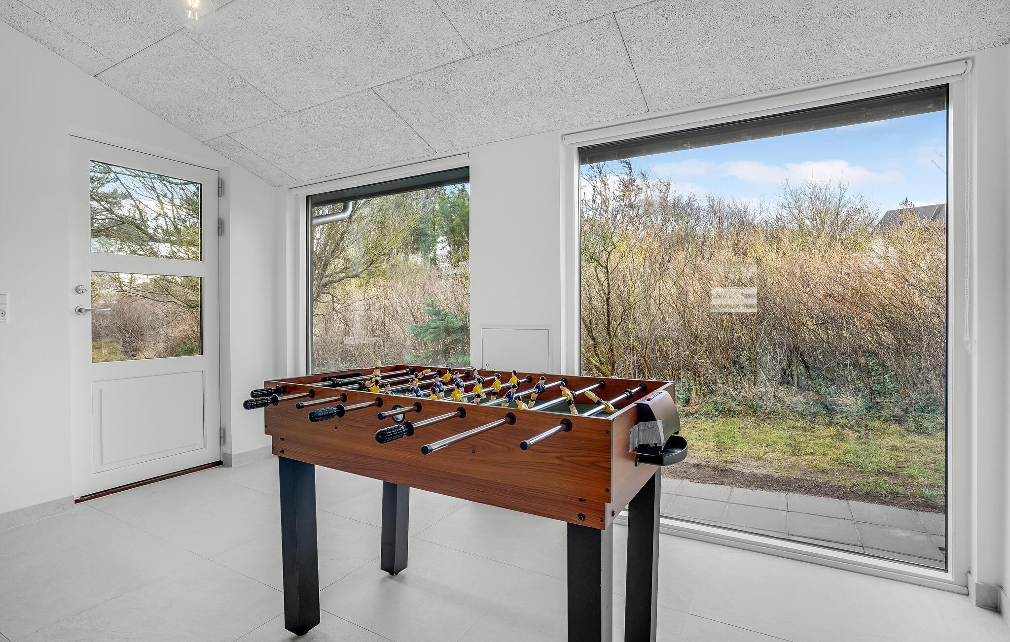 Husets indretning er noget særligt med moderne indretning og en åben grundplan. Find jer godt til rette i den store sofa eller samles med familien ved spisebordet. Det lyse køkken byder på god plads til at lave mad sammen med udsigt over landskabet. Brug aktivitetsrummet med bordfodbold, tag en dukkert i den private indendørs pool, eller slap af i saunaen.