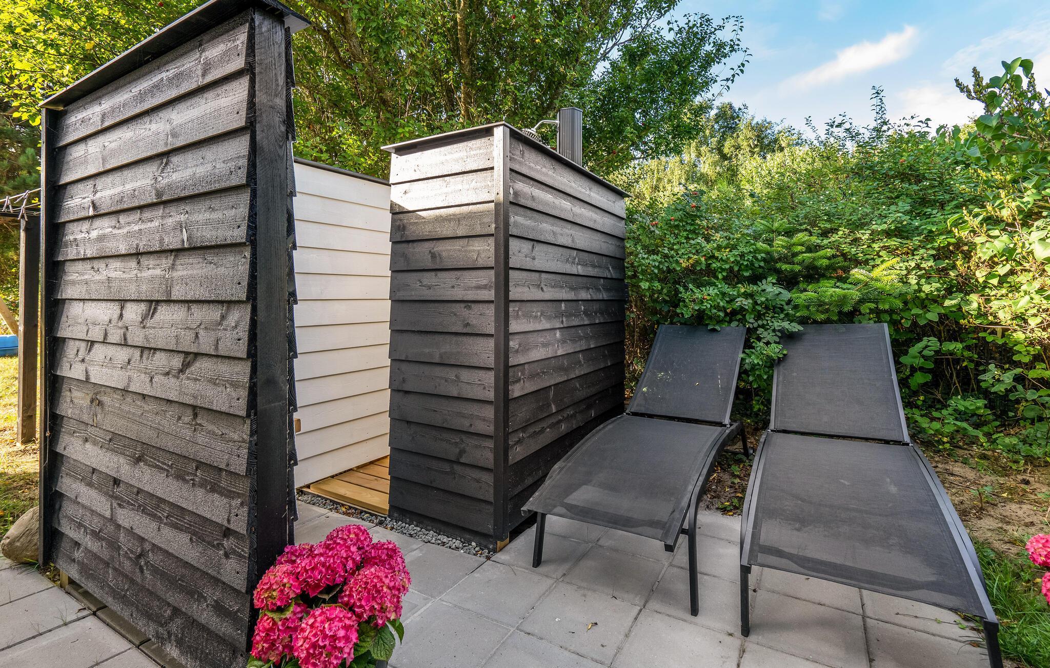 Udendørsområdet lægger op til en masse hyggestunder. Nyd solen på terrassen eller sæt jer til rette i vildmarksbadet med kig til vandet. Slap af på en af ??liggestolene eller træk jer tilbage til det hyggelige opholdsområde. Efter at have besøgt stranden kan I bruge den udendørs bruser til at skylle sandet af.