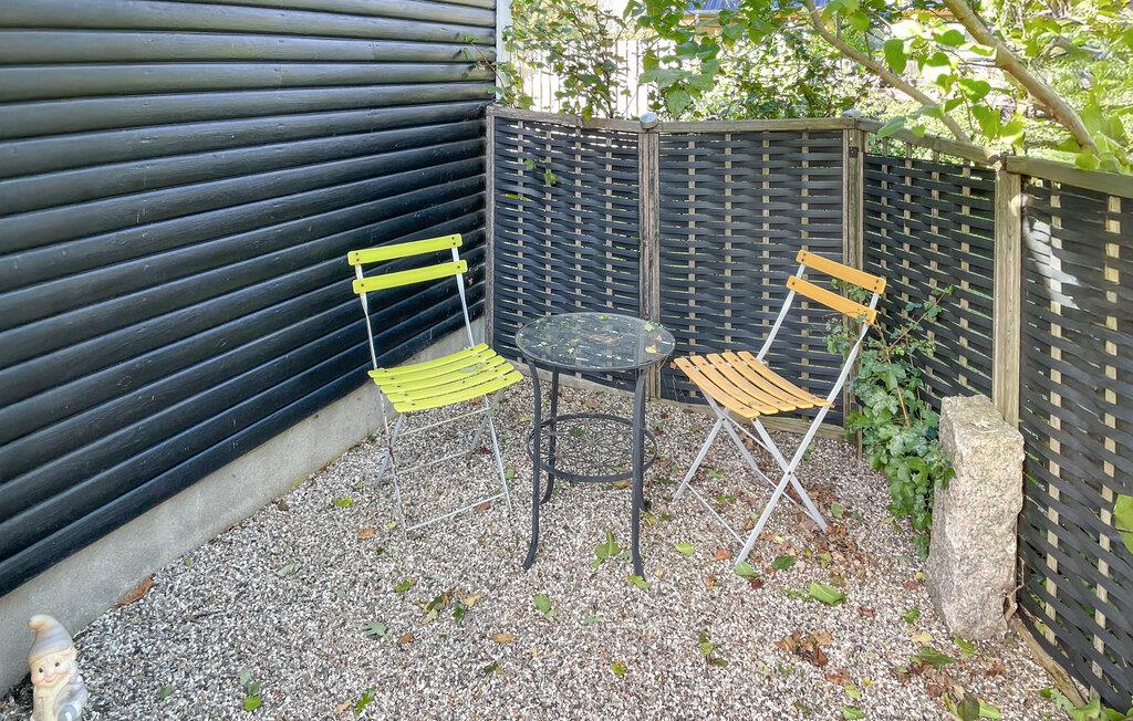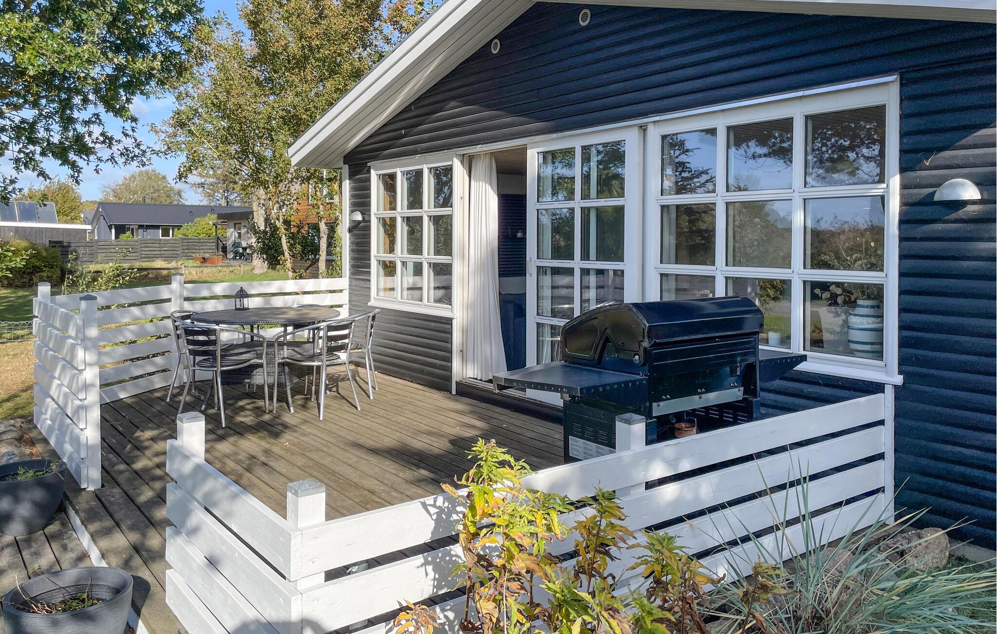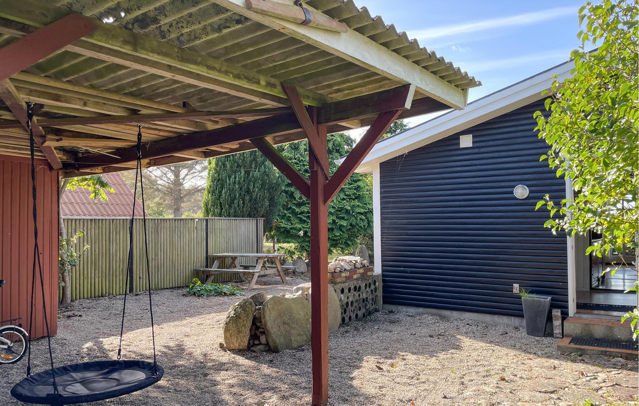 Træd ud på den solrige træterrasse, og nyd udsigten til det grønne omkring huset. Start dagen med morgenmad under åben himmel, eller grill om aftenen. I den lille have kan I slappe af, eller finde en skyggefuld plads i siddeområdet bag huset. Børnene vil glæde sig over det overdækkede sandområde med gynge.