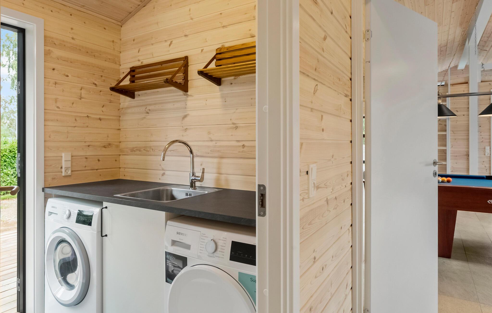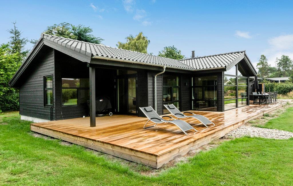 Hyggeligt og moderne feriehus i Væggerløse med billard, terrasse og tæt på stranden.