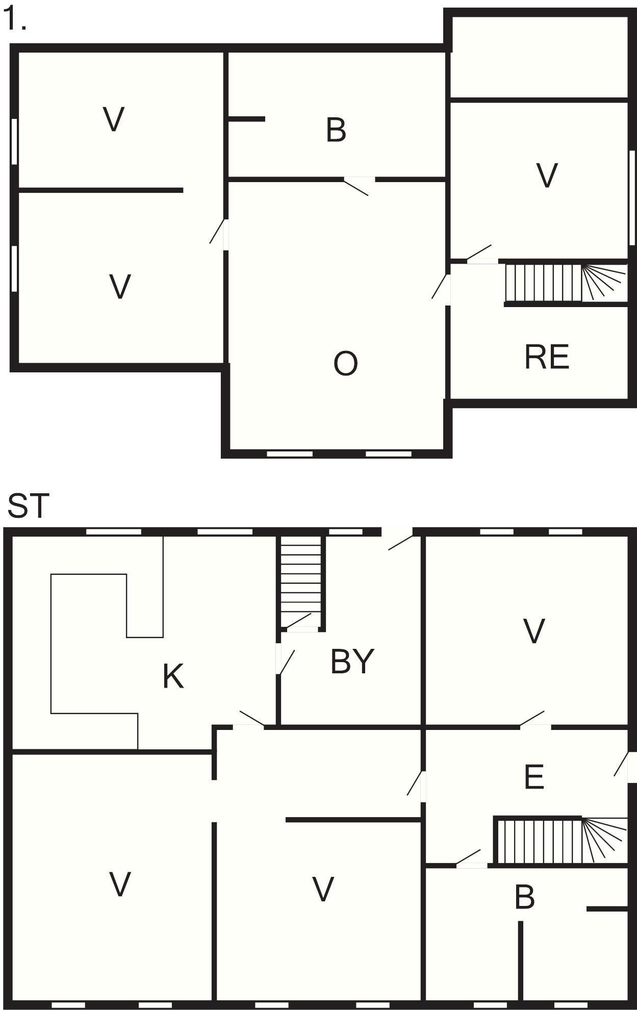 1 Opholdsstue: Pejs, tv, køleskab, kaffemaskine