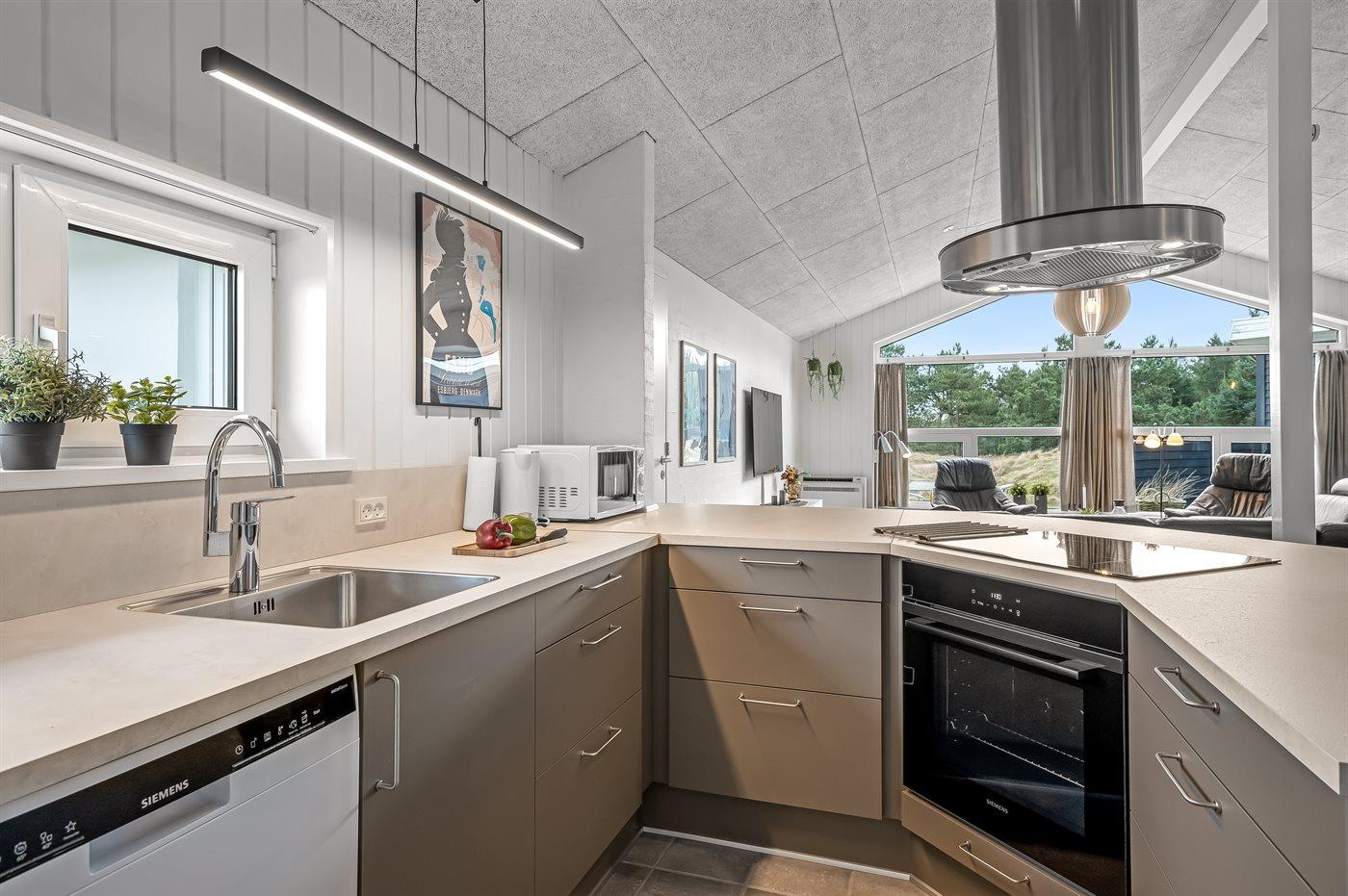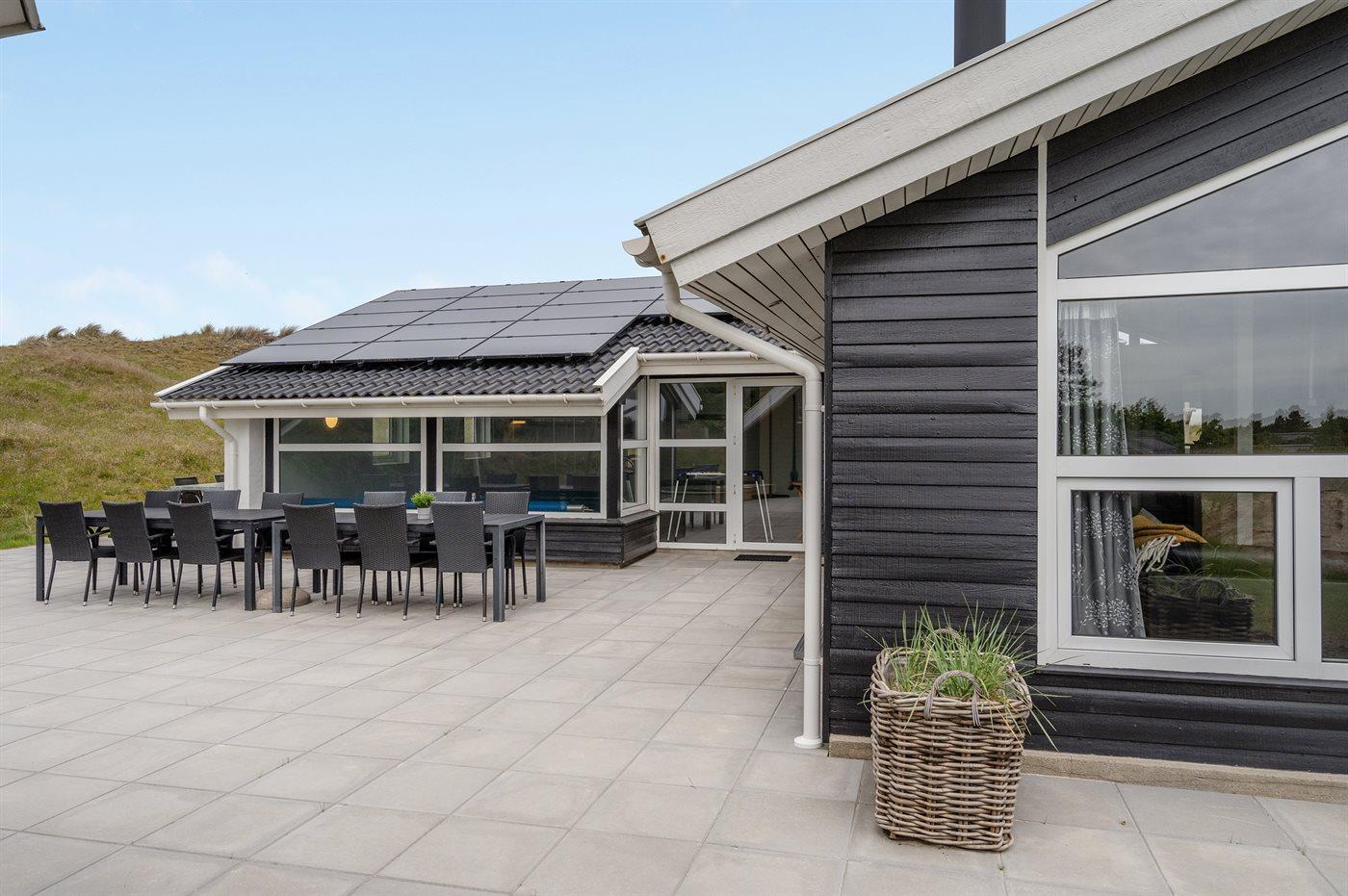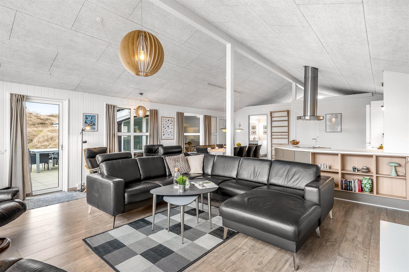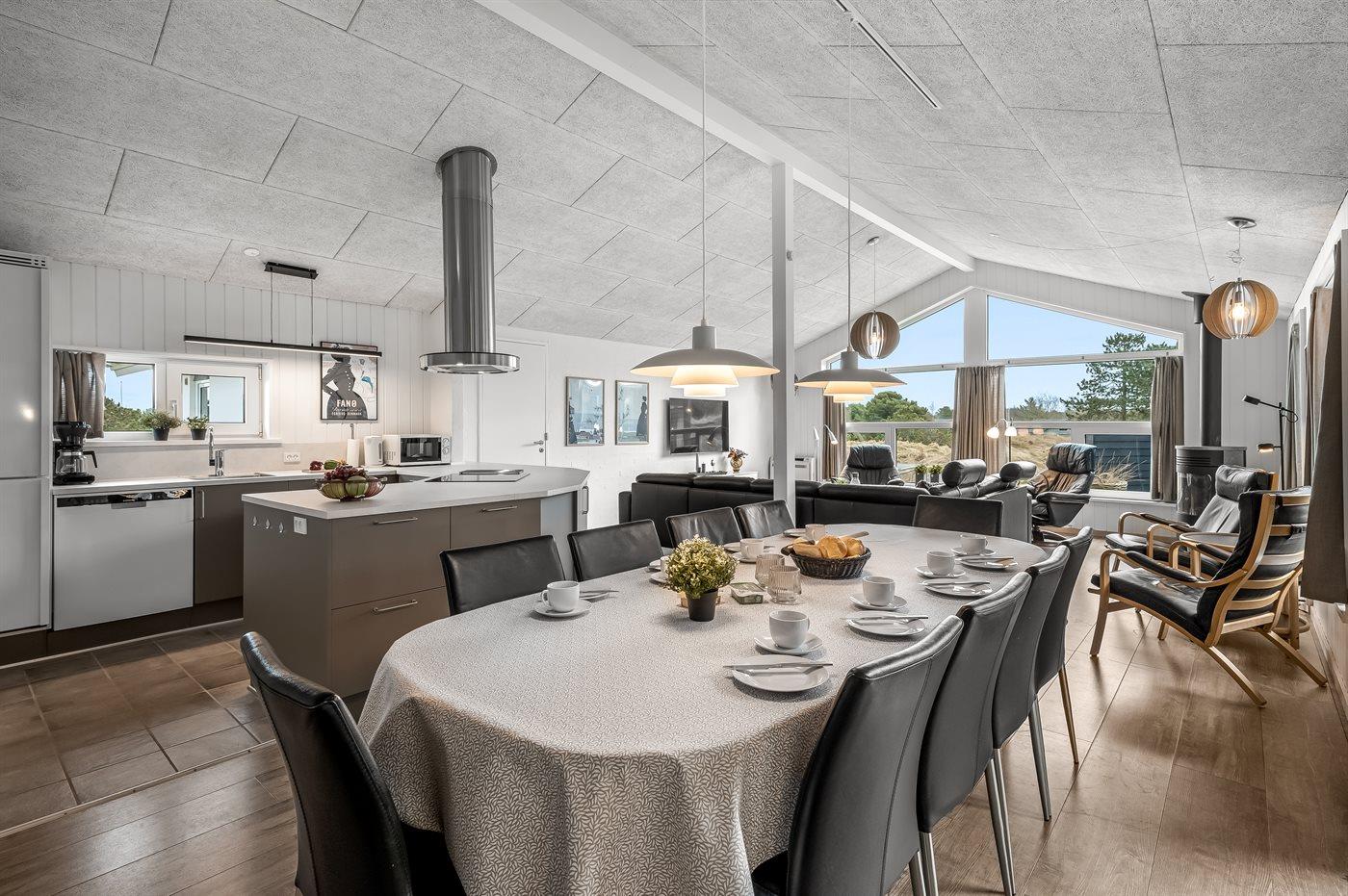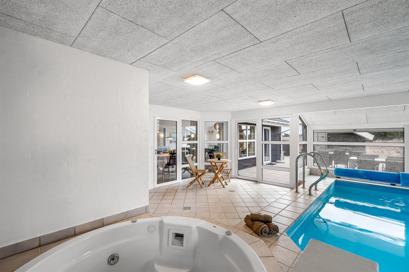 Et energirigtigt og skønt sommerhus med både swimmingpool, spabad og sauna. I læ af de store klitter og for enden af en blind vej ligger dette skønne, energirigtige og særdeles velholdte sommerhus. Her findes alt i udstyr og I får førsteklasses komfort.