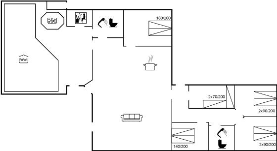 Der er plads til 10 personer - fordelt på 5 dejlige og hyggelige soverum samt en lille hyggehems. Et veludstyret køkken med morgensol indbyder til kulinariske udfoldelser, mens I fra både køkken og spisehjørne har indkig til det store og flotte swimmingpool-område med både stor spa (standvand) og sauna. I den hyggelige opholdsstue kan I holde varmen på de kolde dage ved hjælp af varmepumpen eller den hyggelige brændeovn, som kan lyse og knitre, mens I nyder en god film på det store TV eller læser en god bog.