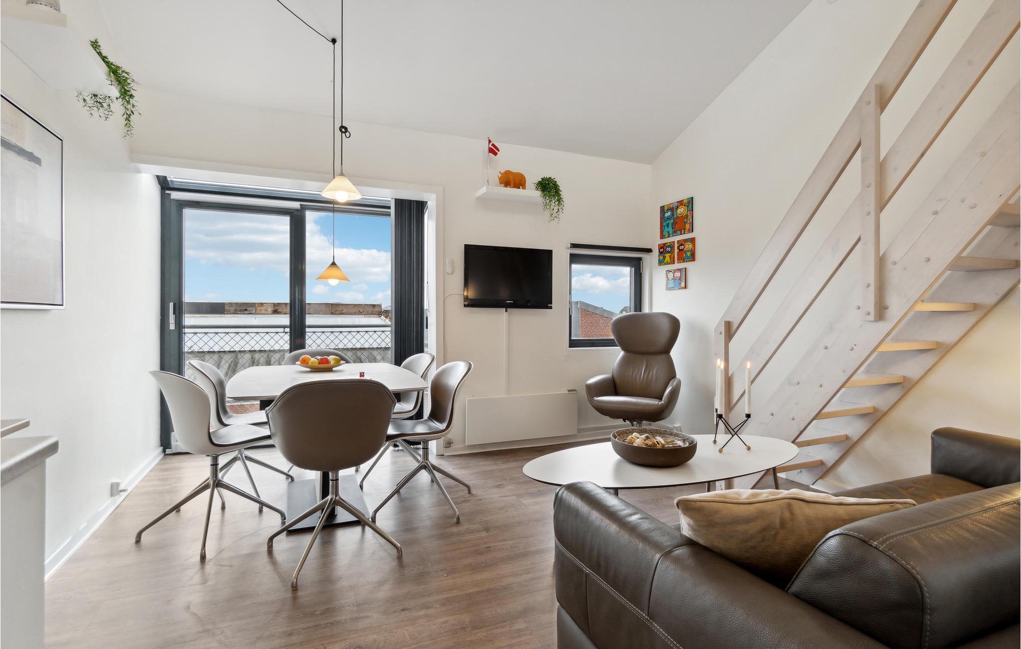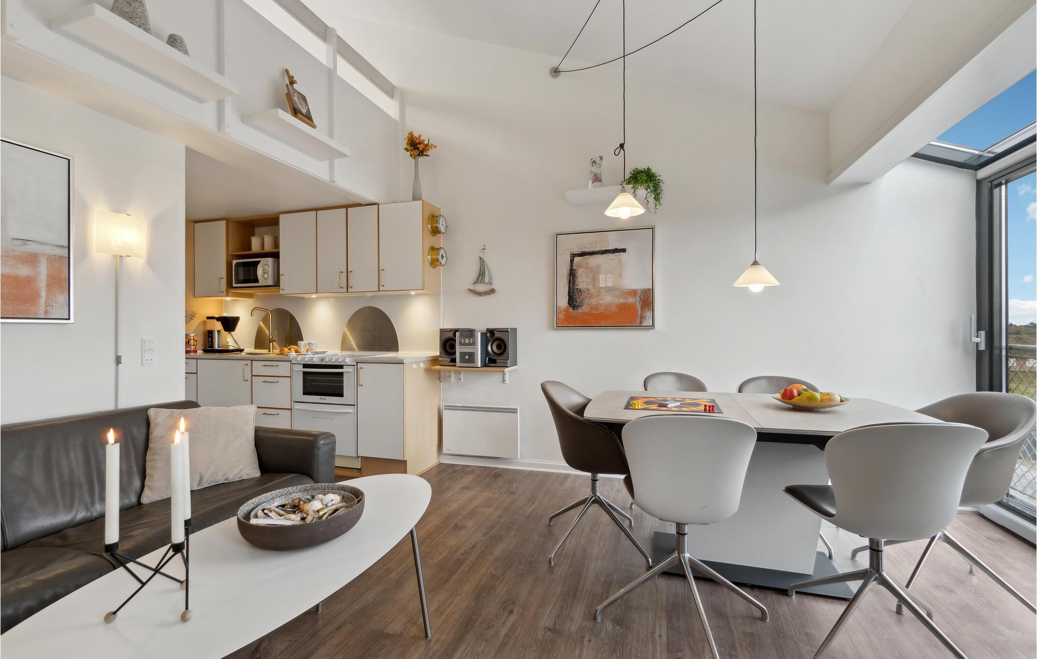 Denne moderniserede ferielejlighed ligger tæt på Fanøs brede nordstrand. I lejligheden er der åbent mellem de to etager, hvilket tilføjer et charmerende strejf. Opholdsrummet er indrettet med pæne designermøbler og byder på en behagelig atmosfære, hvor alle vil føle sig godt tilpas. Lav en lækker morgenmad om morgenen, og læg planer for jeres aktiviteter og udflugter på øen, mens I spiser foran de store vinduer. Om aftenen kan I smække fødderne op i sofaen, slappe af og se en underholdende film sammen. Den moderne hems byder på ekstra komfort takket være en designventilator, som hele året rundt sørger for et behageligt klima i rummet.