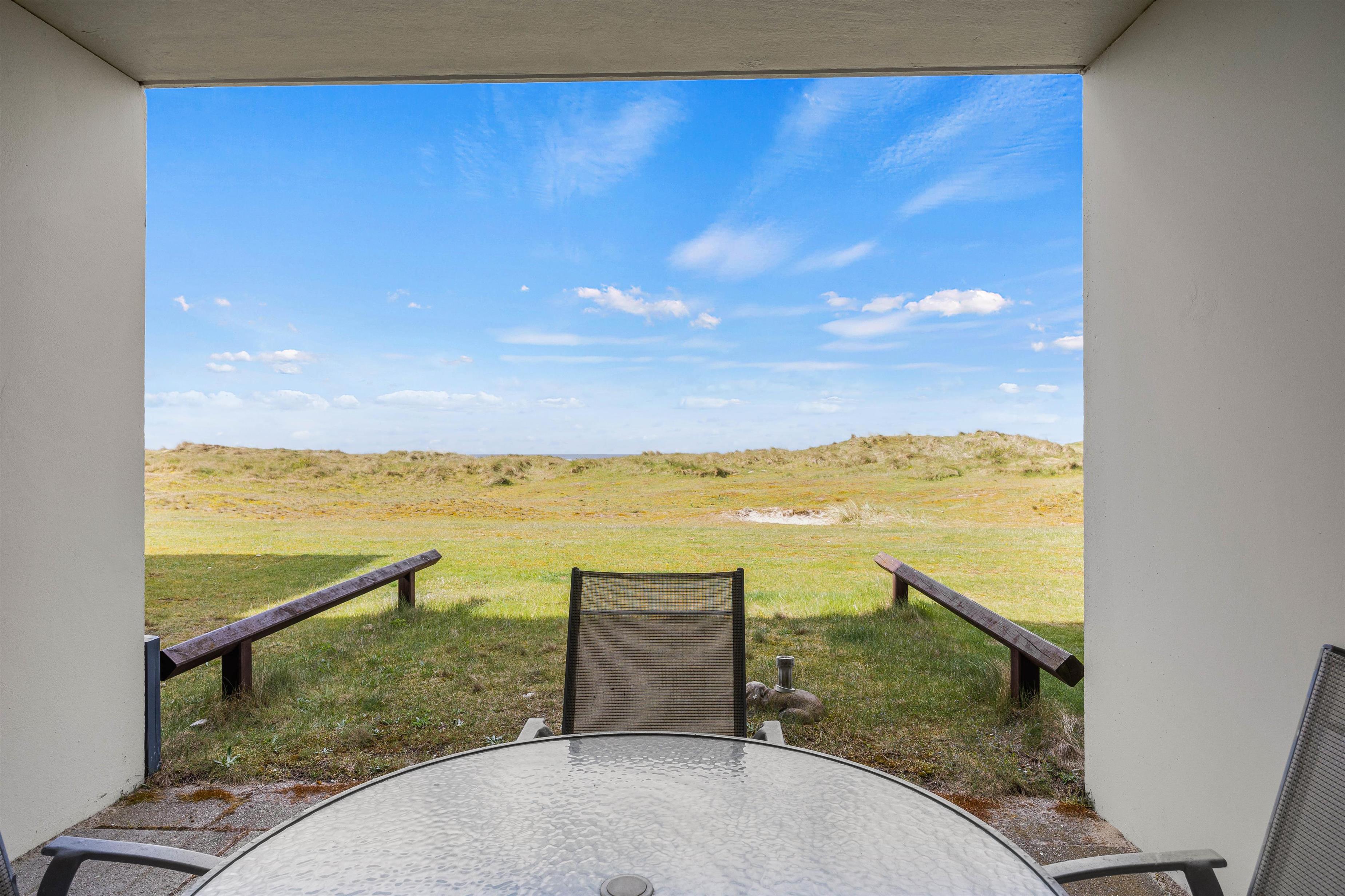 Her er også en udendørs swimmingpool, der kan benyttes i sommerperioden. Jeres ferie starter allerede på altanen, hvor lyden af brusende hav og de skønneste solnedgange kan nydes på alle tider af året. Også jeres hund er hjertelig velkommen her.