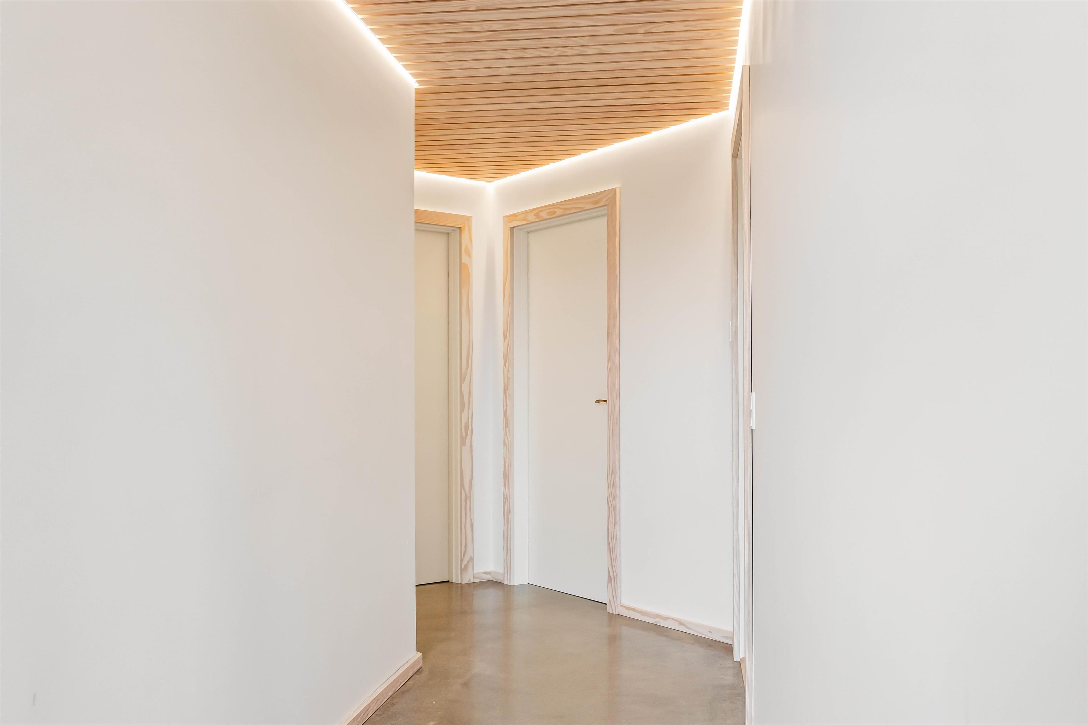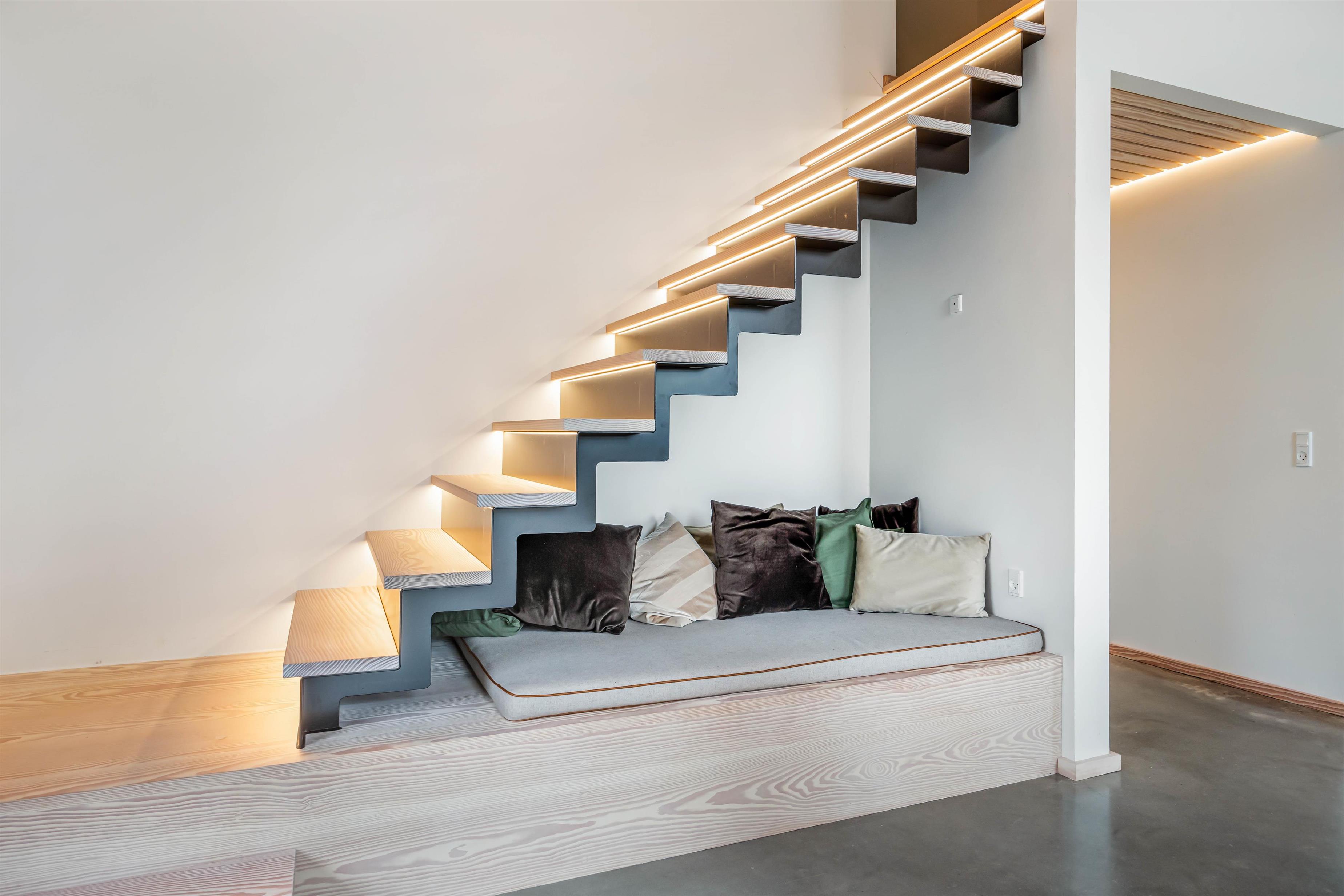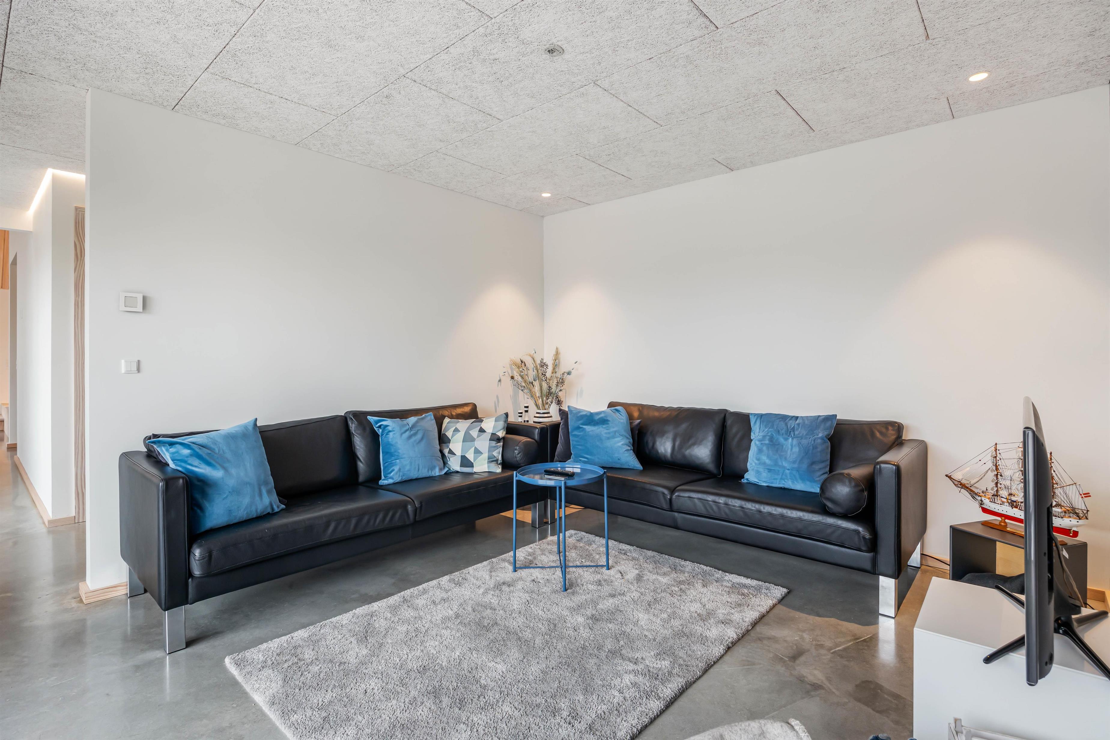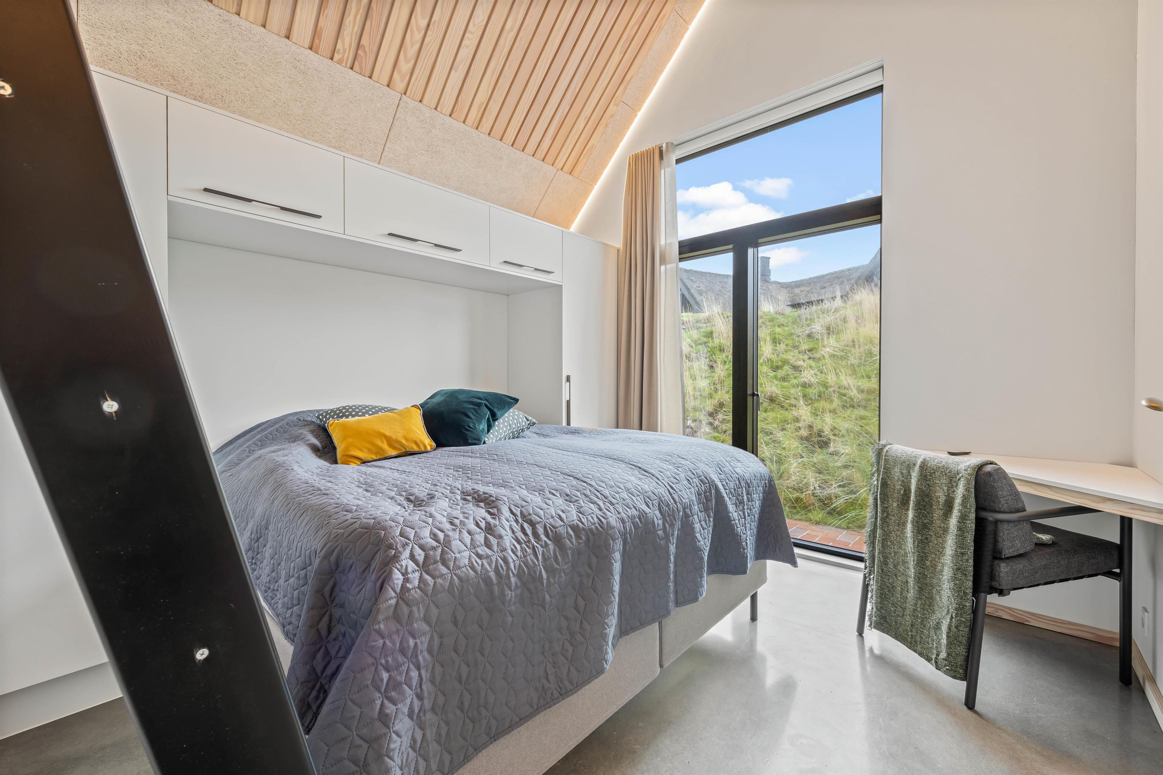 Sommerhuset på Skovsletten 6 har mange lækre detaljer i interiøret og indretning, hvor æstetikken taler et sprog for sig selv med de blanke stengulve og mange lysindfald fra panoramastore vinduer. Der er også kunstigt lysindfald langs flere lister samt en oplyst svævende trappe med hyggehjørne under. Det skal opleves!