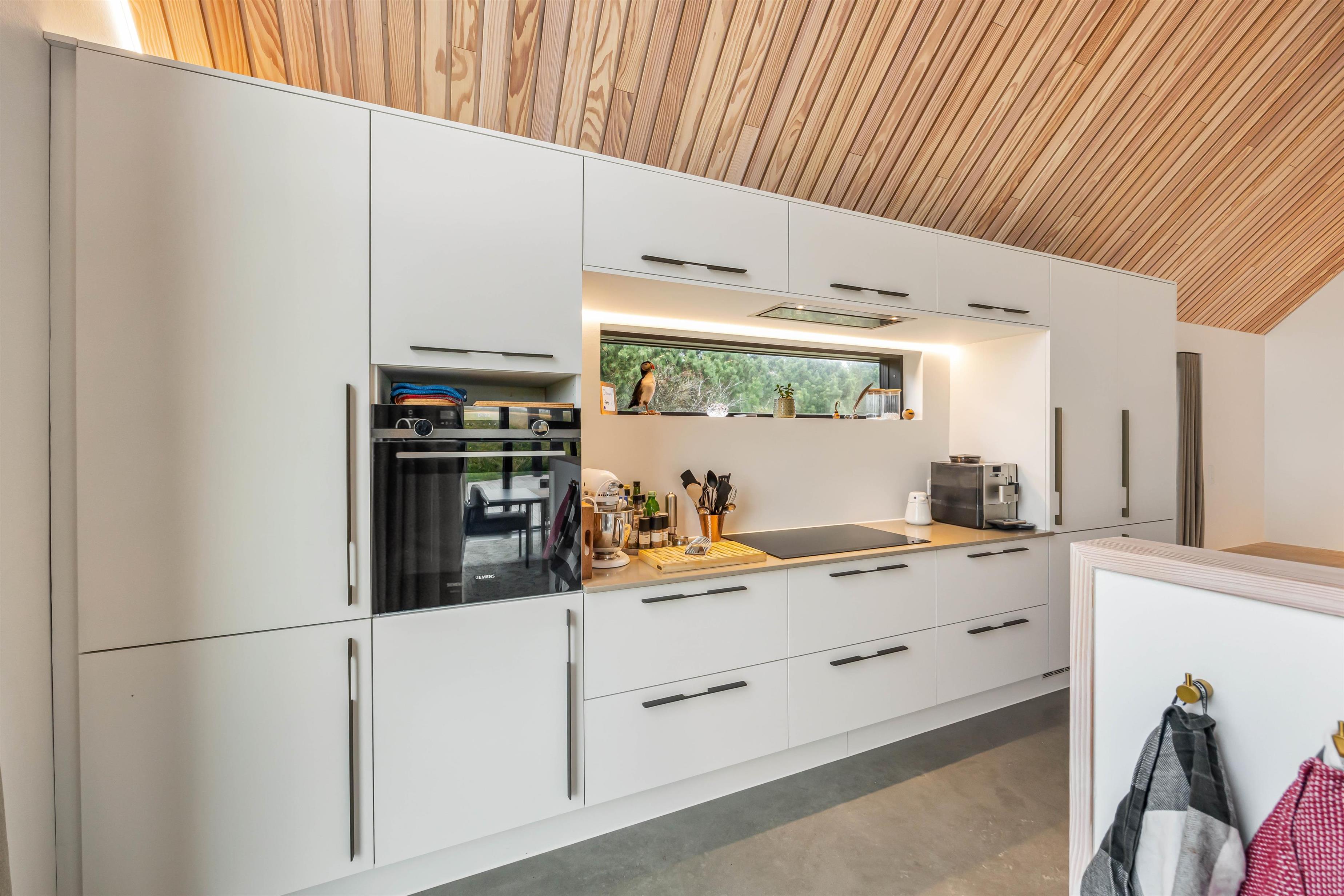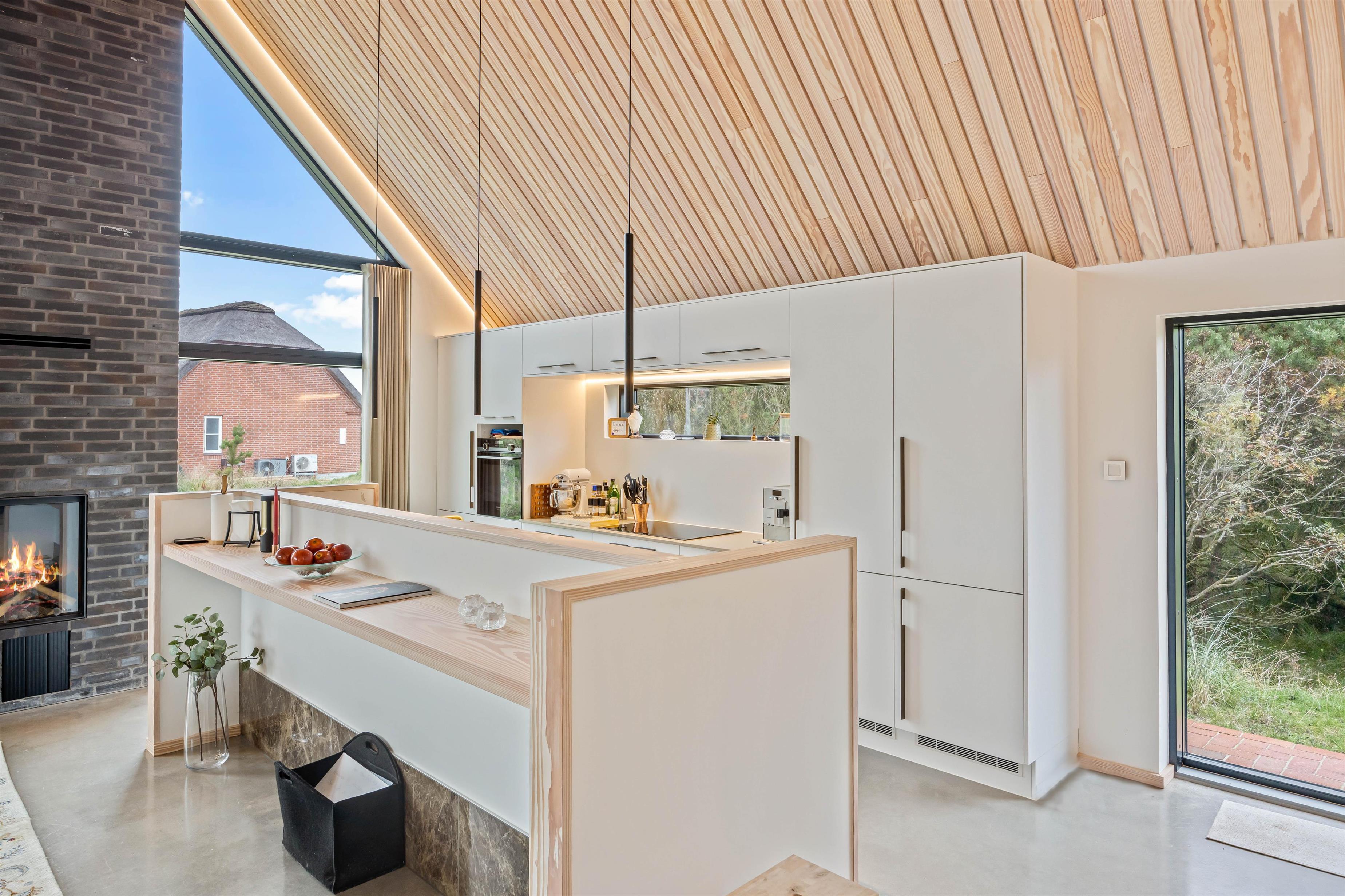 I dette feriehus er mulighederne for forkælelse i en kombination med naturen og afslapning helt ideelle. Indendørs er feriehuset indrettet med et åbent og rummeligt køkkenalrum med ”katedral” højt til loftet, hvor ferien for alvor kan byde på hyggelige og mindeværdige stunder. Ikke mindst i sofahjørnet, hvor I kan streame en god film via Chromecast.