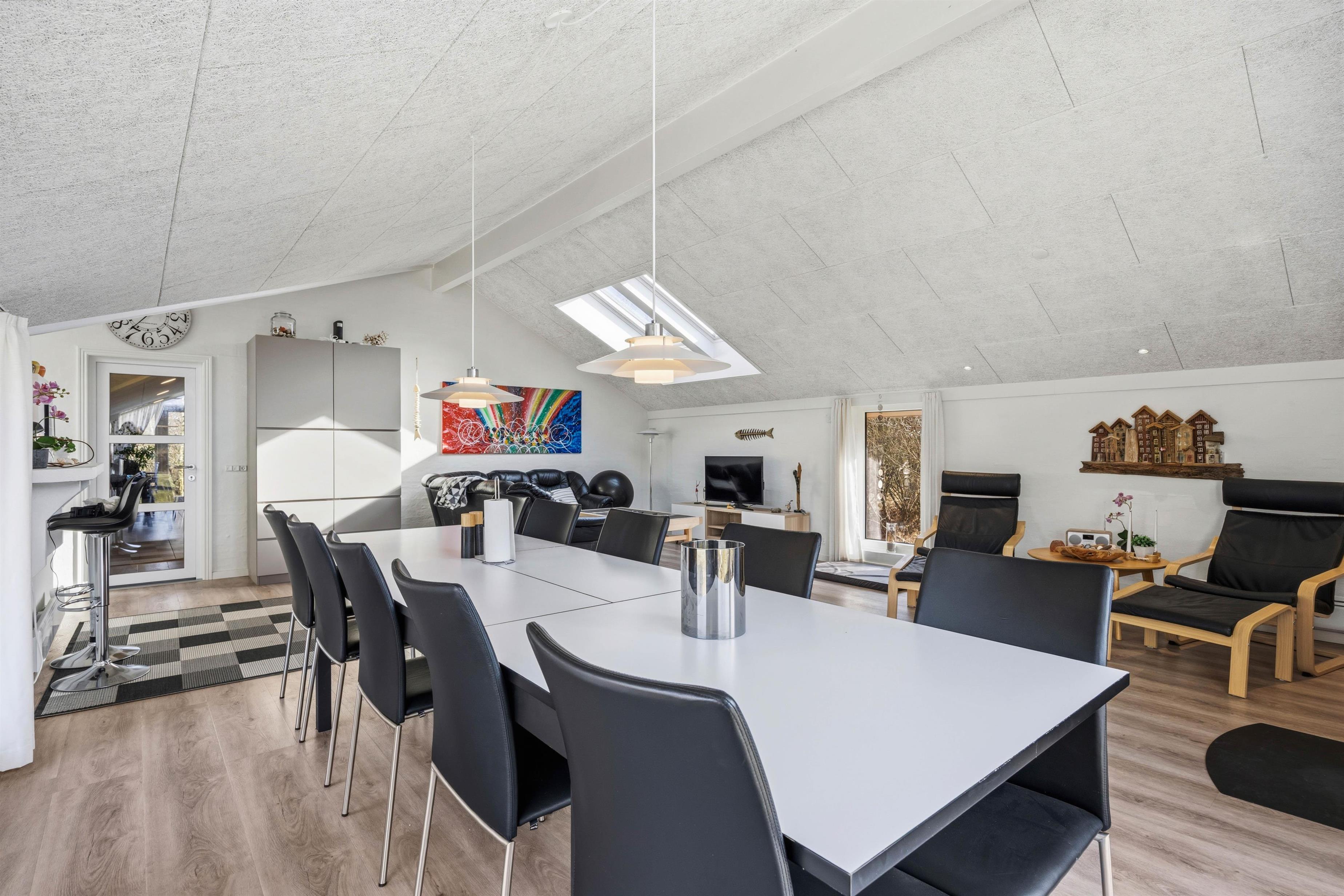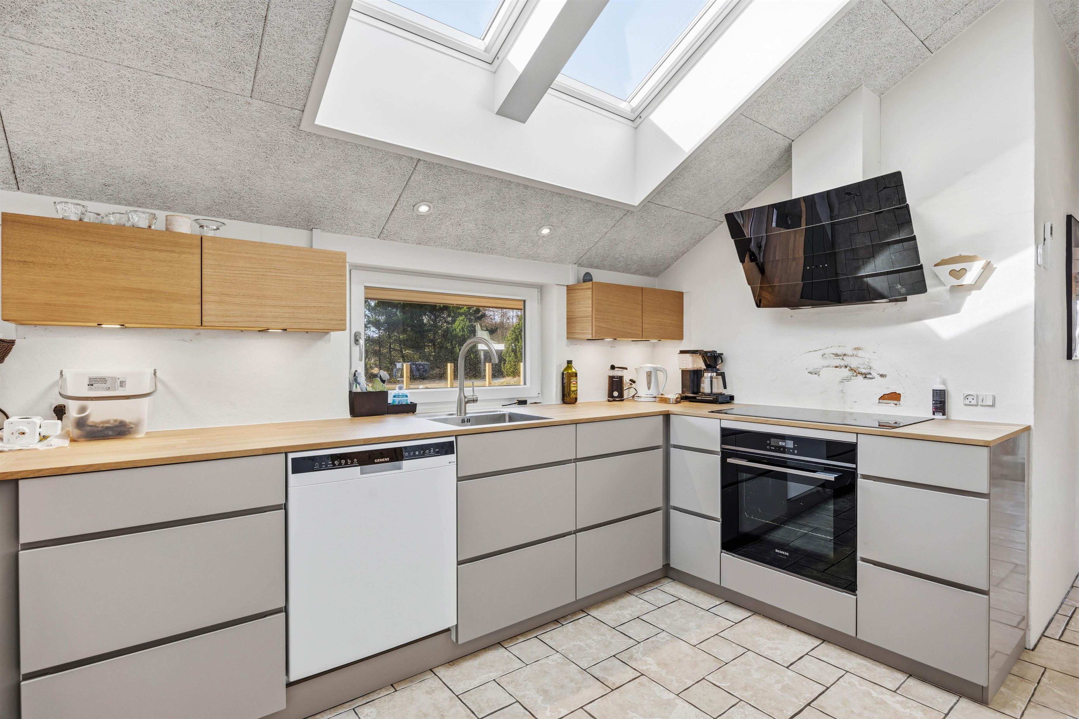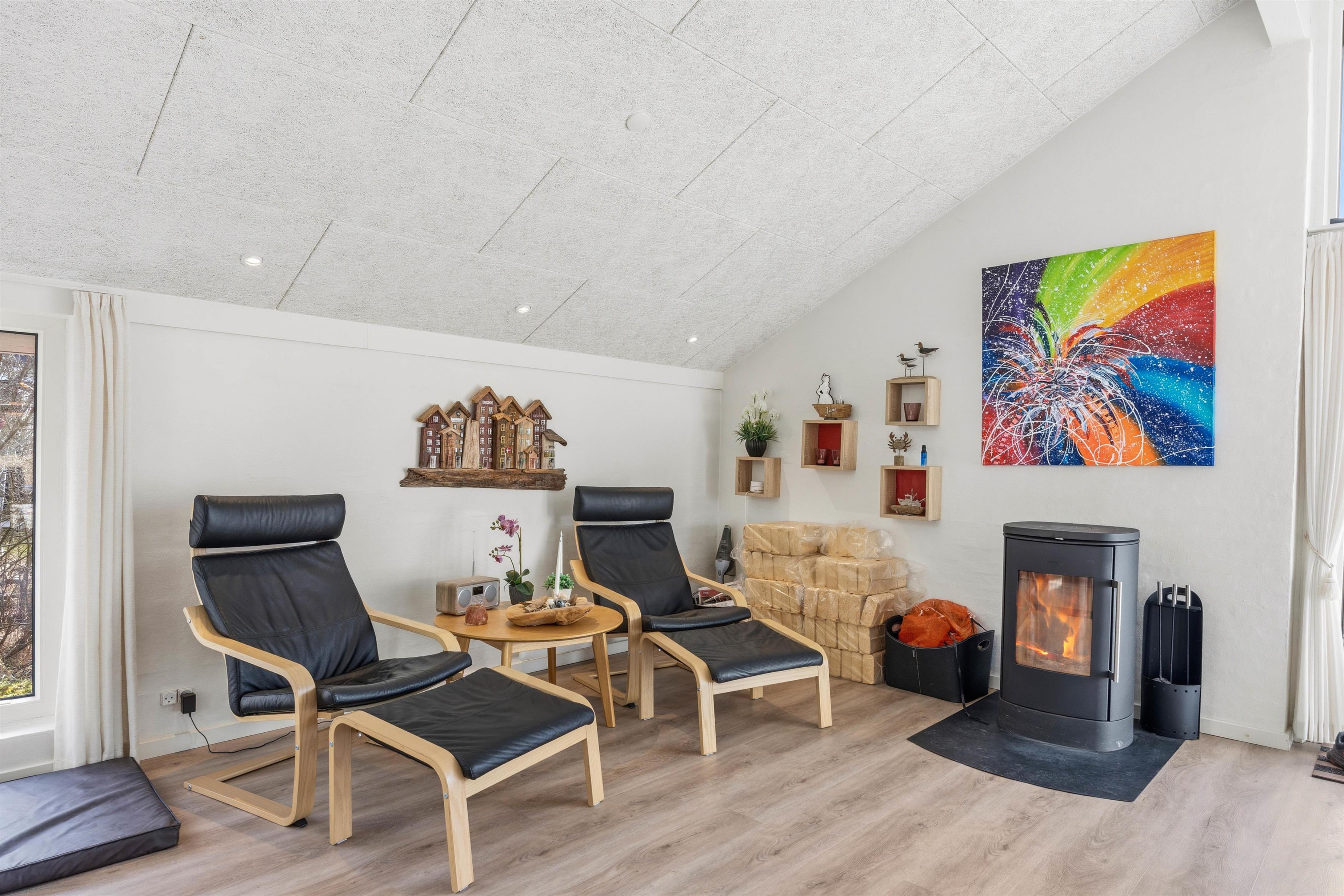 Sommerhuset byder på god plads til fælles stunder og samtidig fine muligheder for at trække sig tilbage og finde ro i en hyggekrog eller på et af husets værelser. Samlingspunktet er det store, lyse opholds- og spiseområde, hvor I kan lave mad sammen i det veludstyrede køkken, spille spil eller slappe af, mens brændeovnen skaber ekstra hygge på kølige dage. Øvrig opvarmning er el. Feriehuset har solceller.