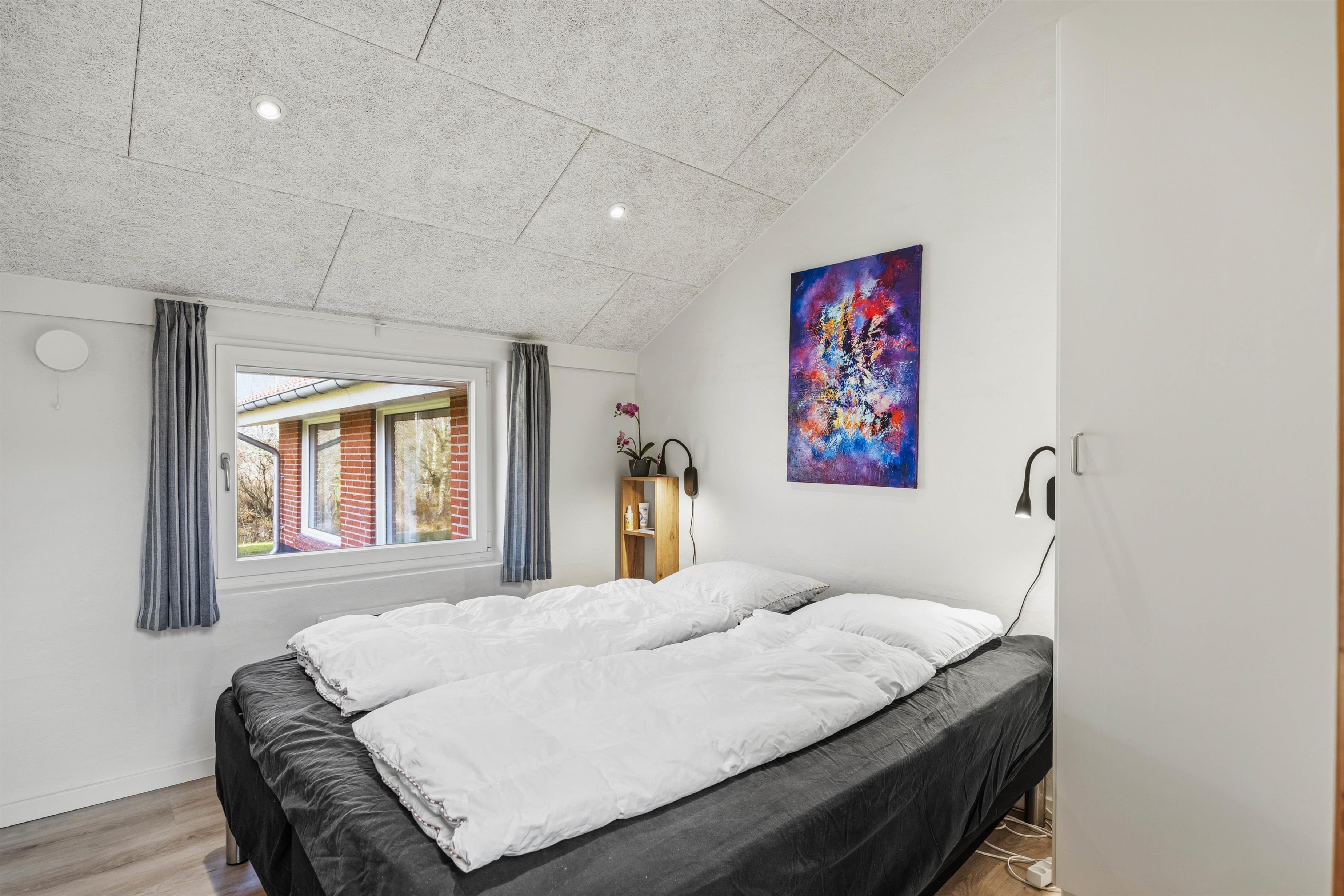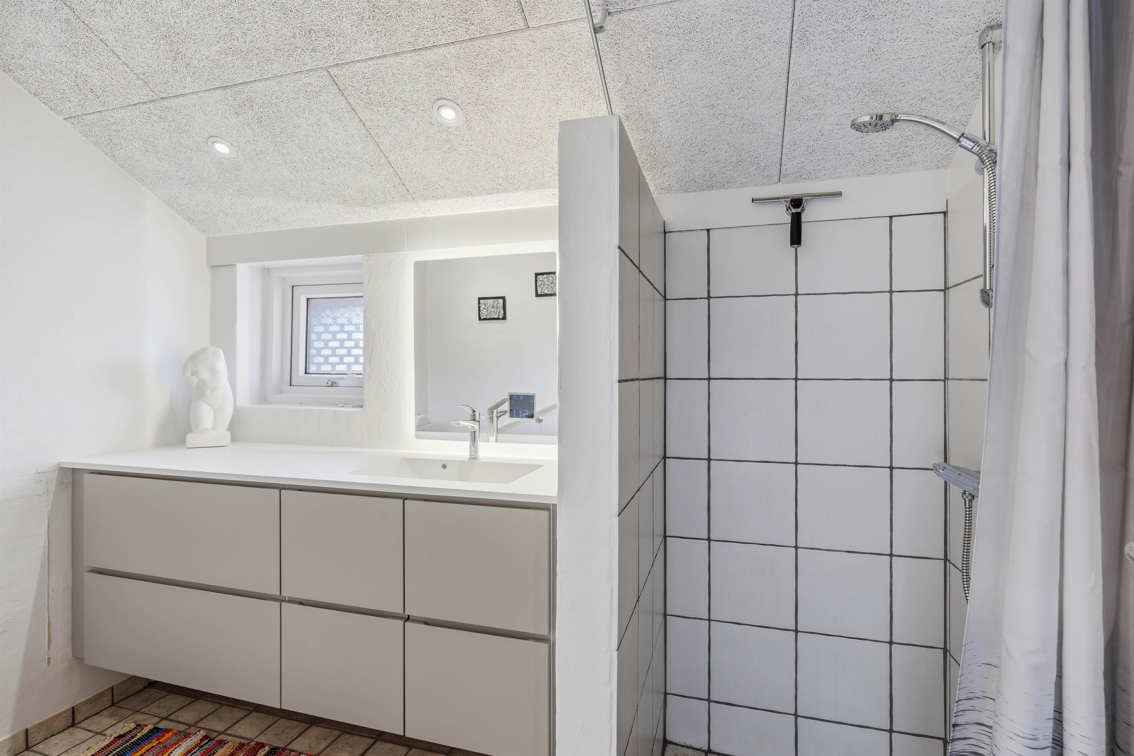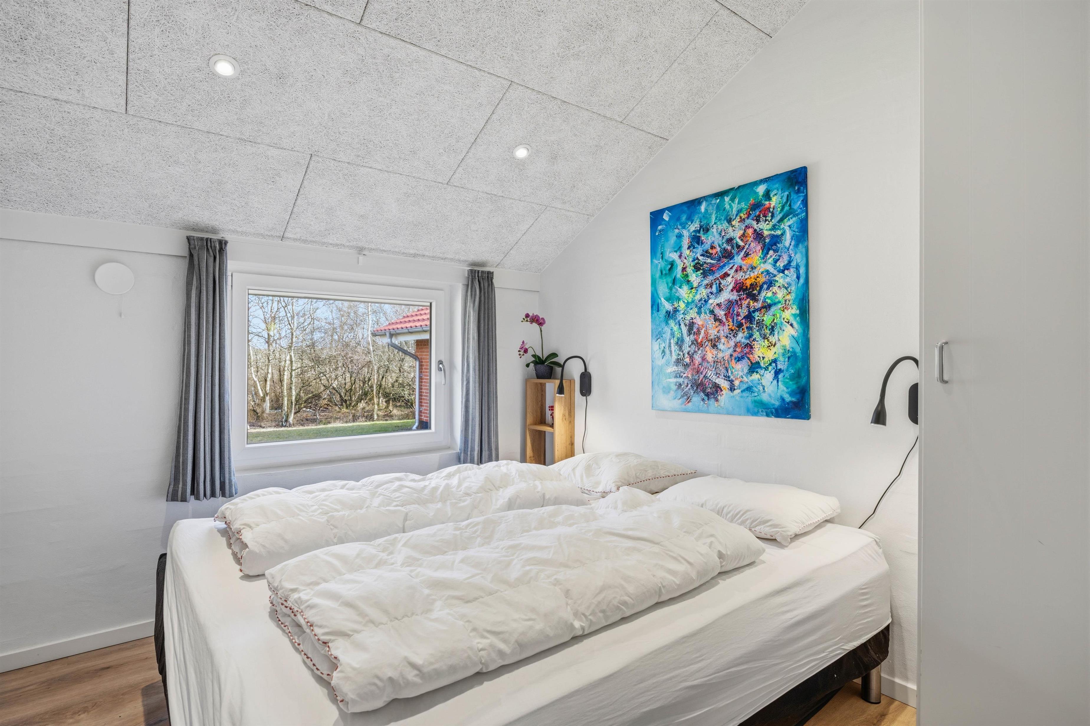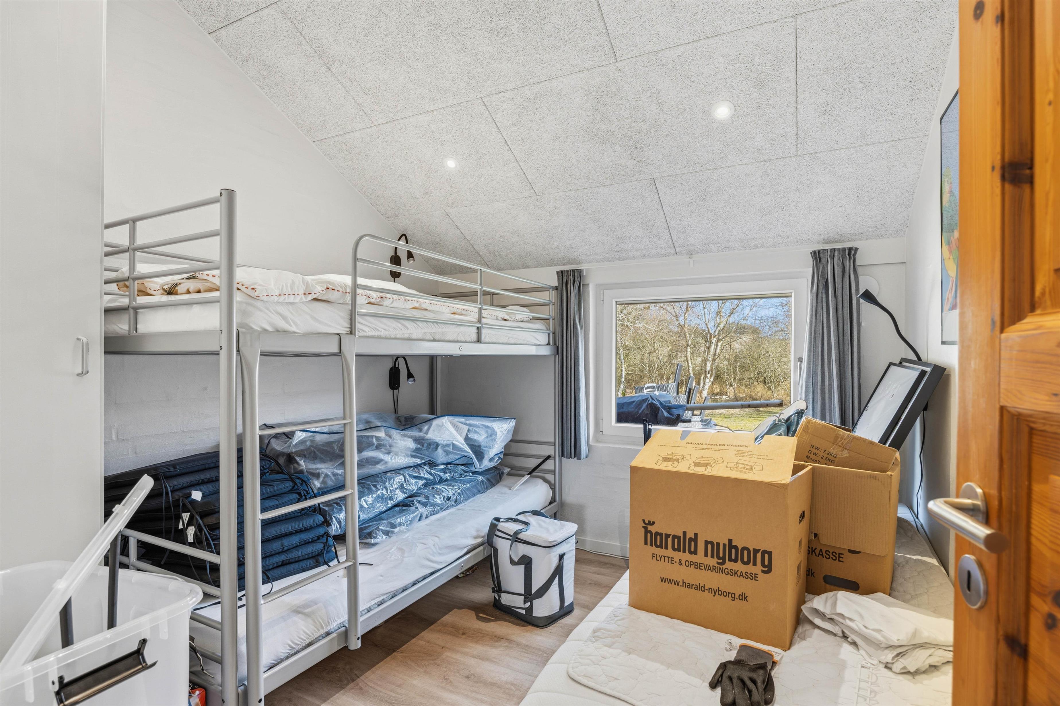 Sommerhuset rummer 4 soveværelser – 3 med dobbeltseng og 1 med enkeltseng samt køjeseng – så op til 9 personer kan overnatte komfortabelt. To moderne badeværelser fuldender boligens komfort og sikrer god plads og privatliv.