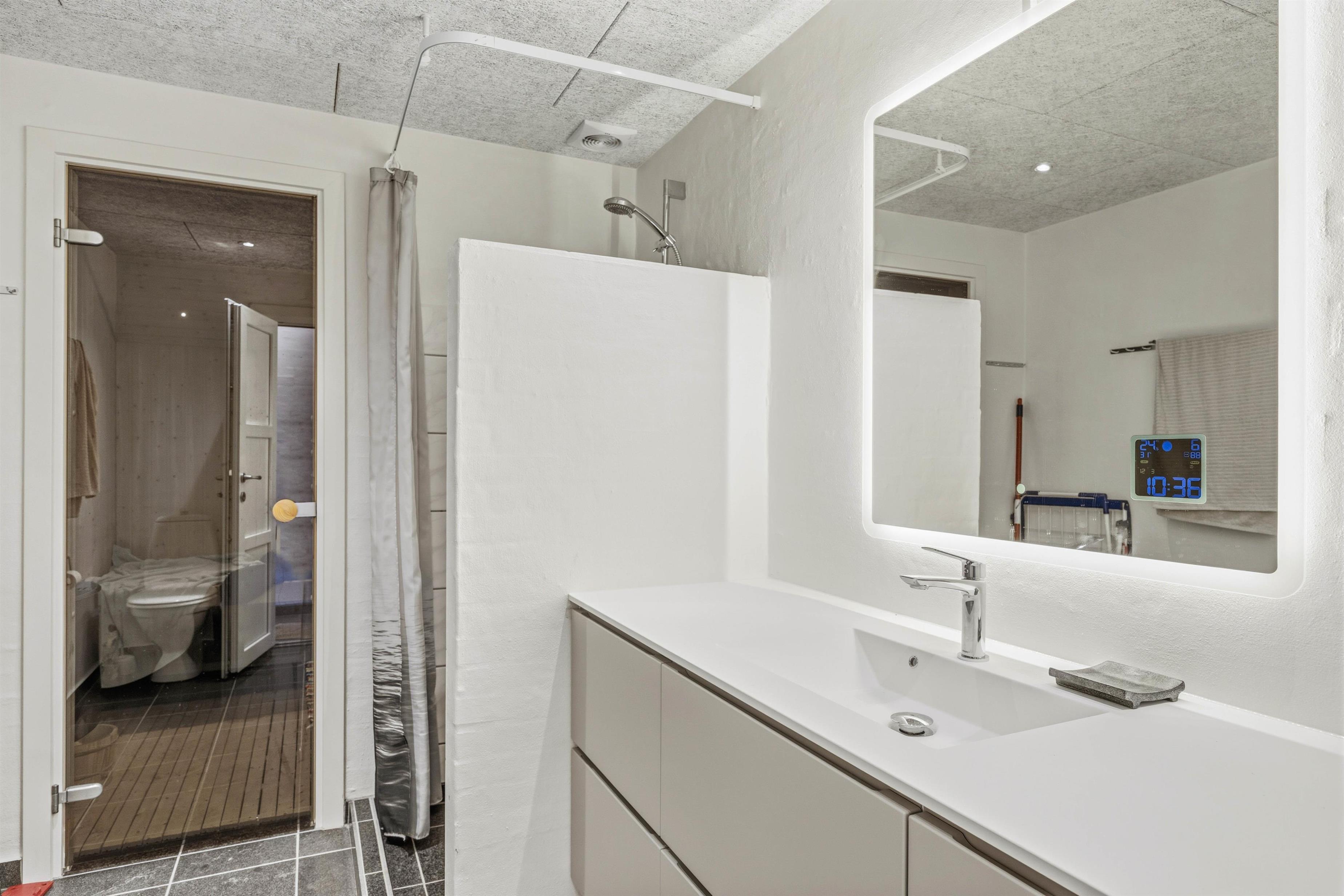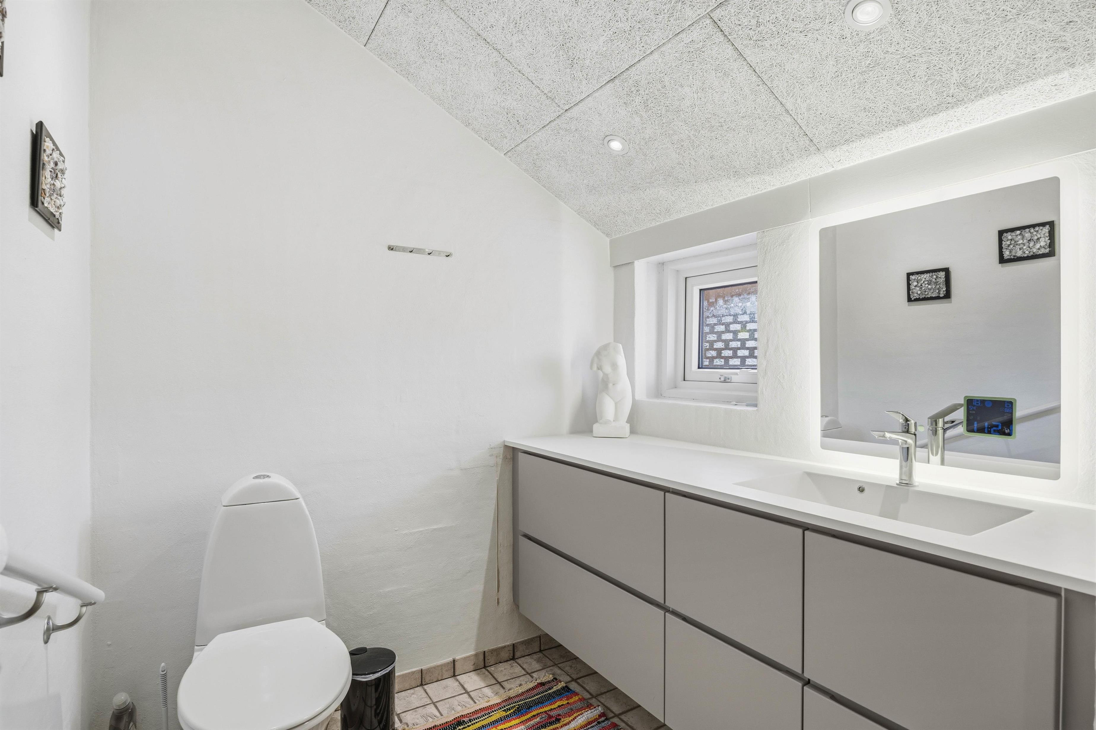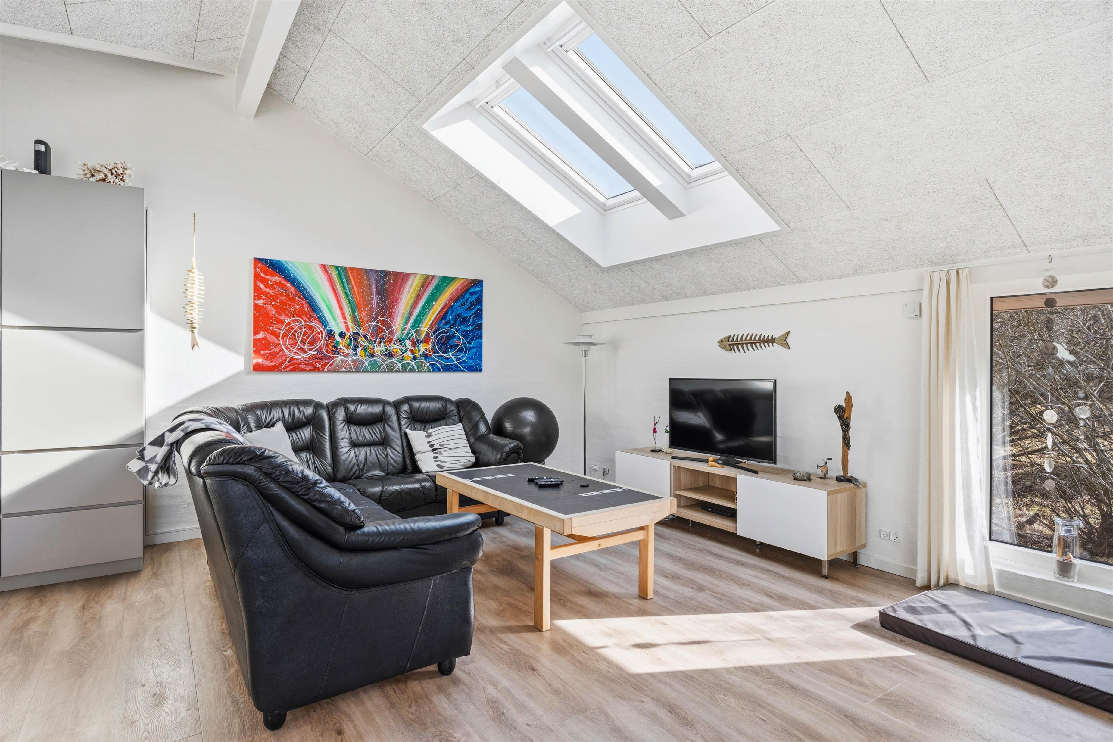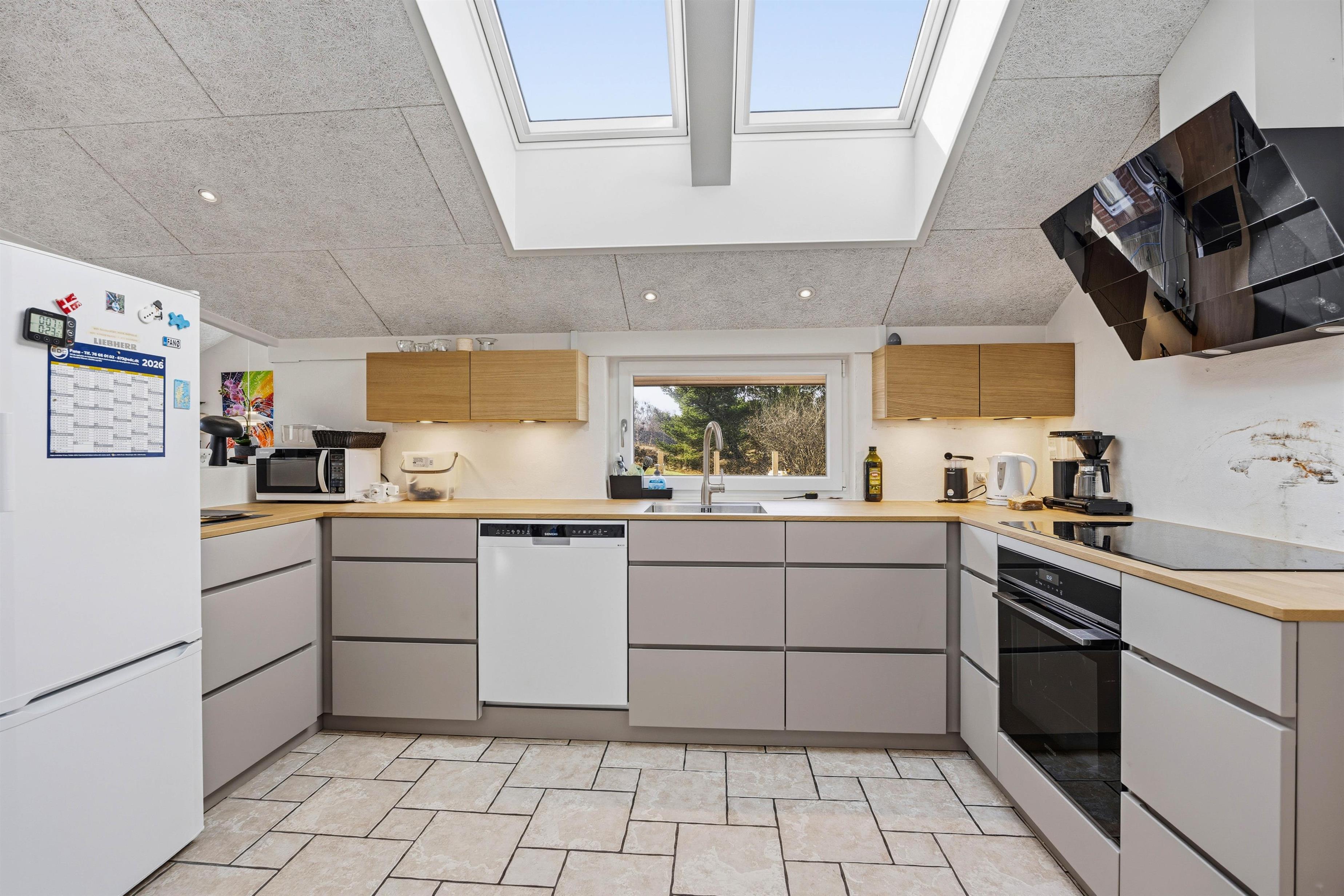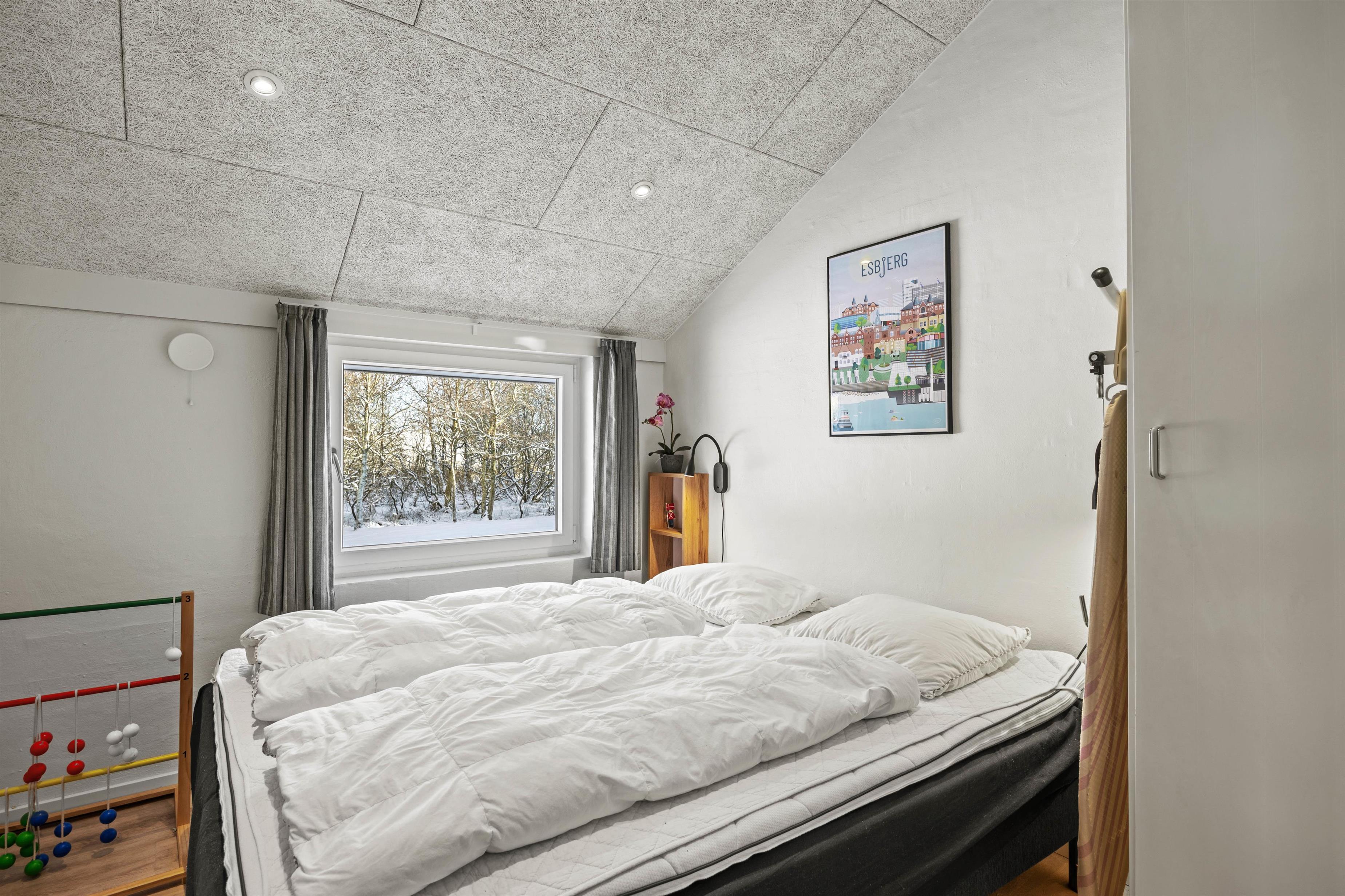 Sommerhuset rummer 4 soveværelser – 3 med dobbeltseng og 1 med enkeltseng samt køjeseng – så op til 9 personer kan overnatte komfortabelt. To moderne badeværelser fuldender boligens komfort og sikrer god plads og privatliv.