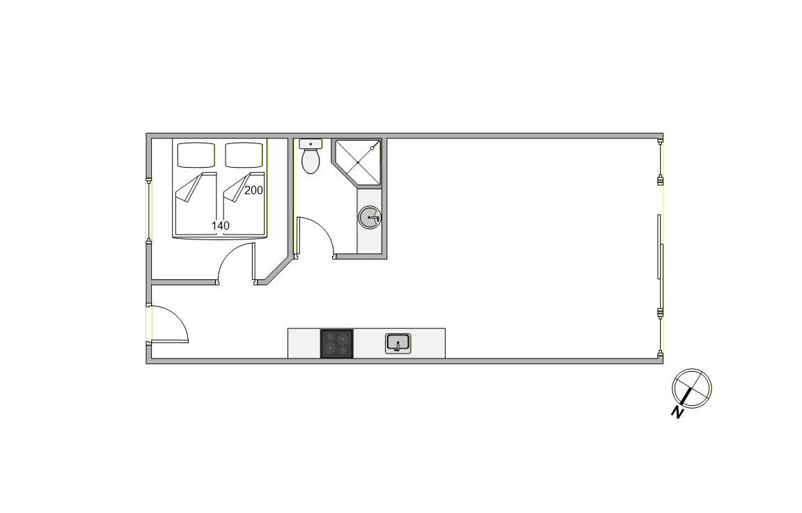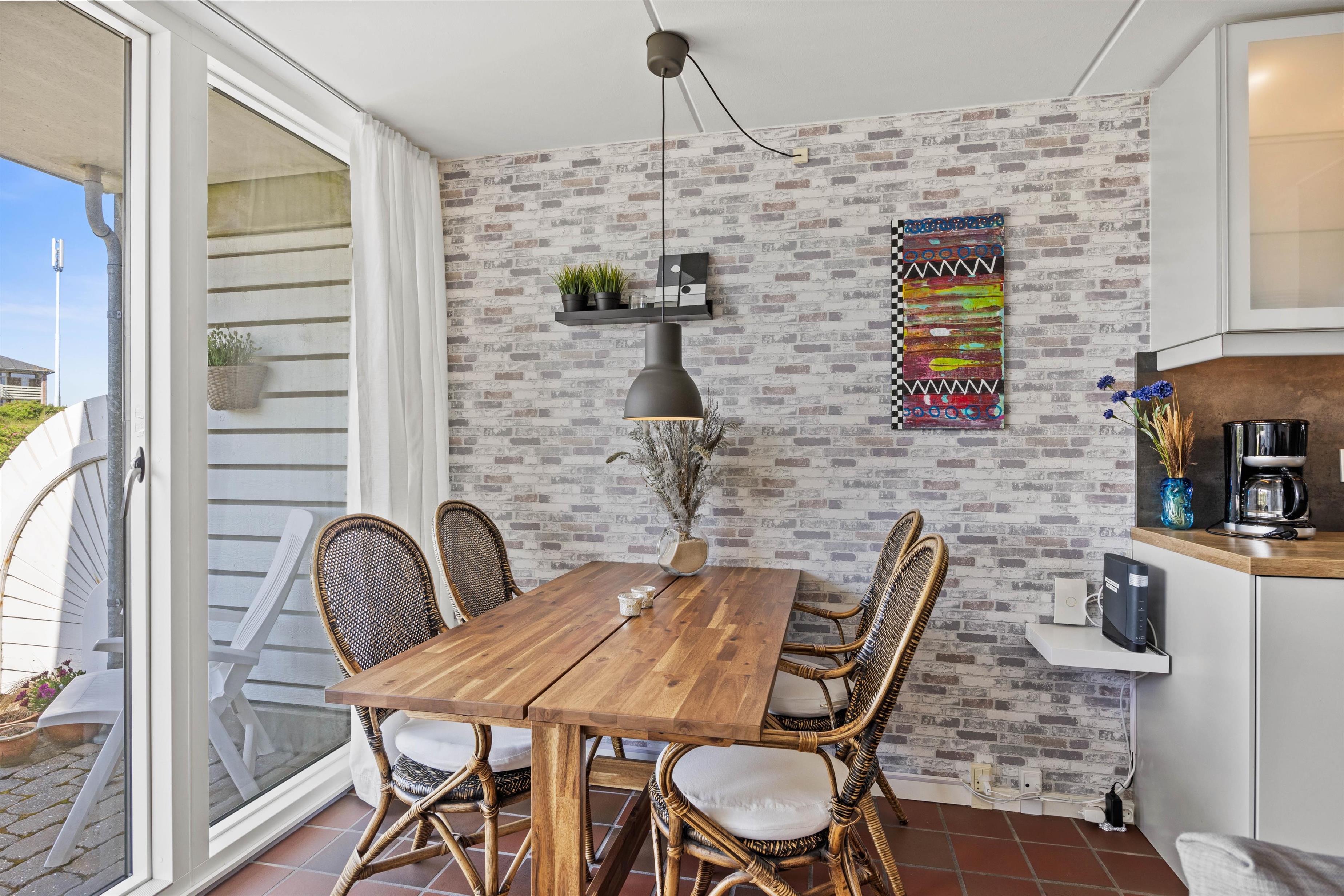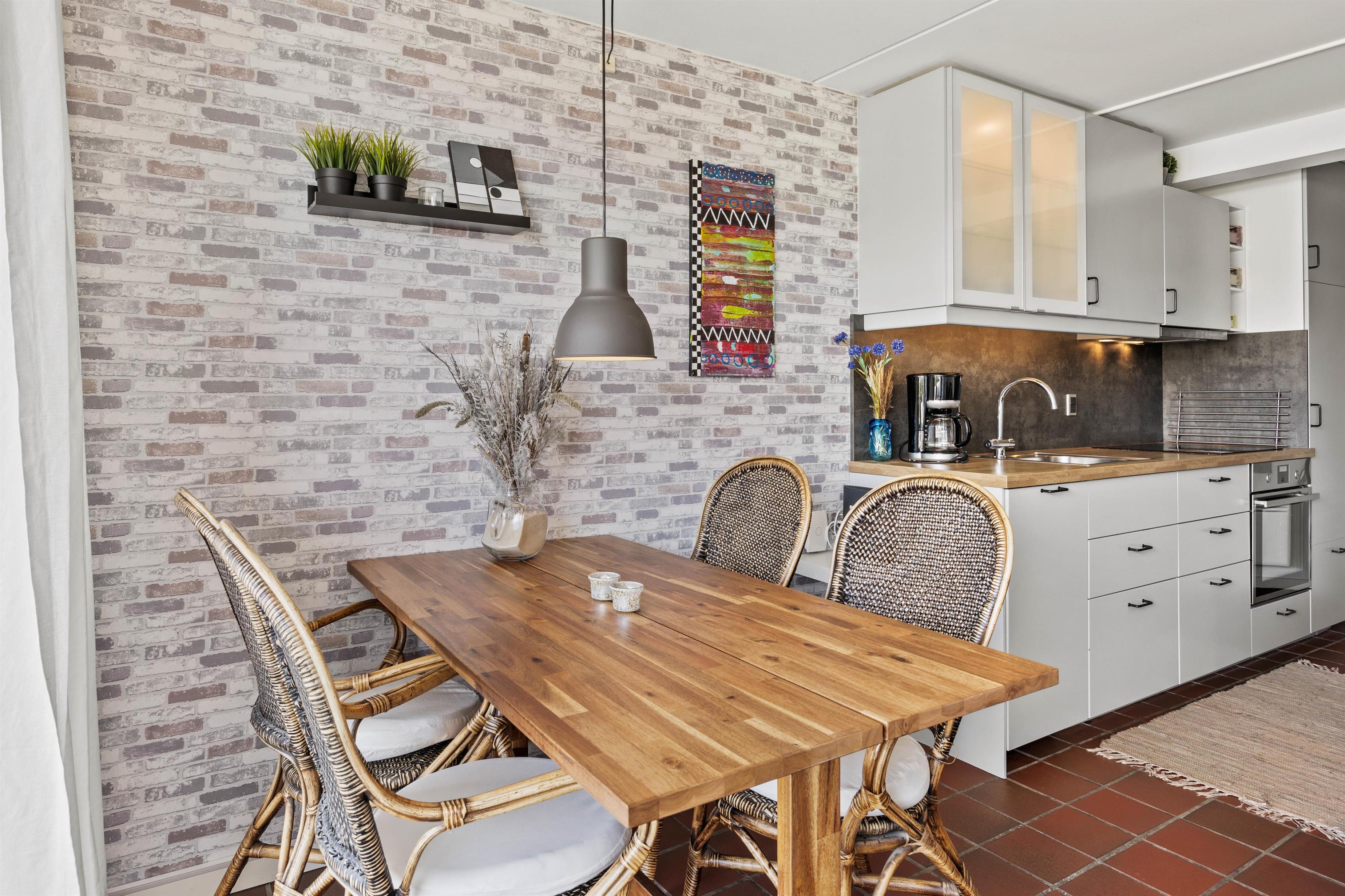 Ferielejligheden, der er 37 kvadratmeter stor, blev renoveret i 2021, og her har I et hyggeligt alrum, hvor køkken, stue og spiseplads er samlet, og hvor I kan tilbringe mange skønne feriestunder med madlavning, spil og film.