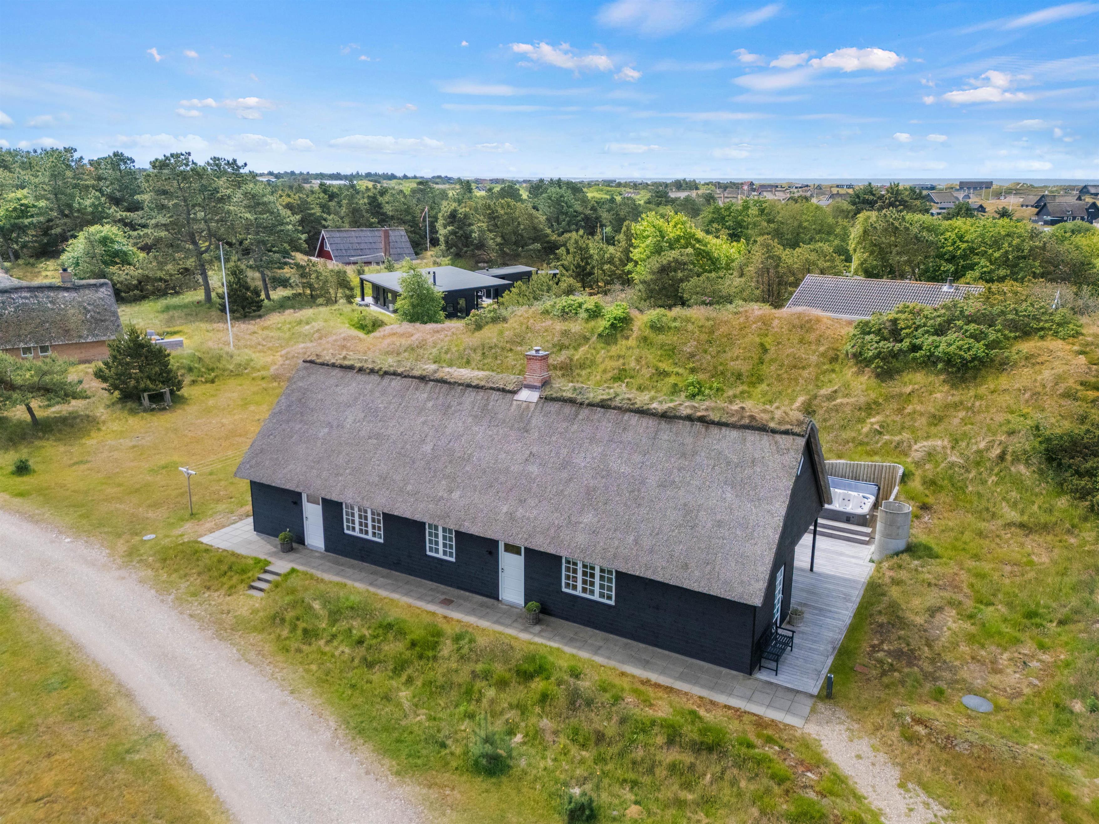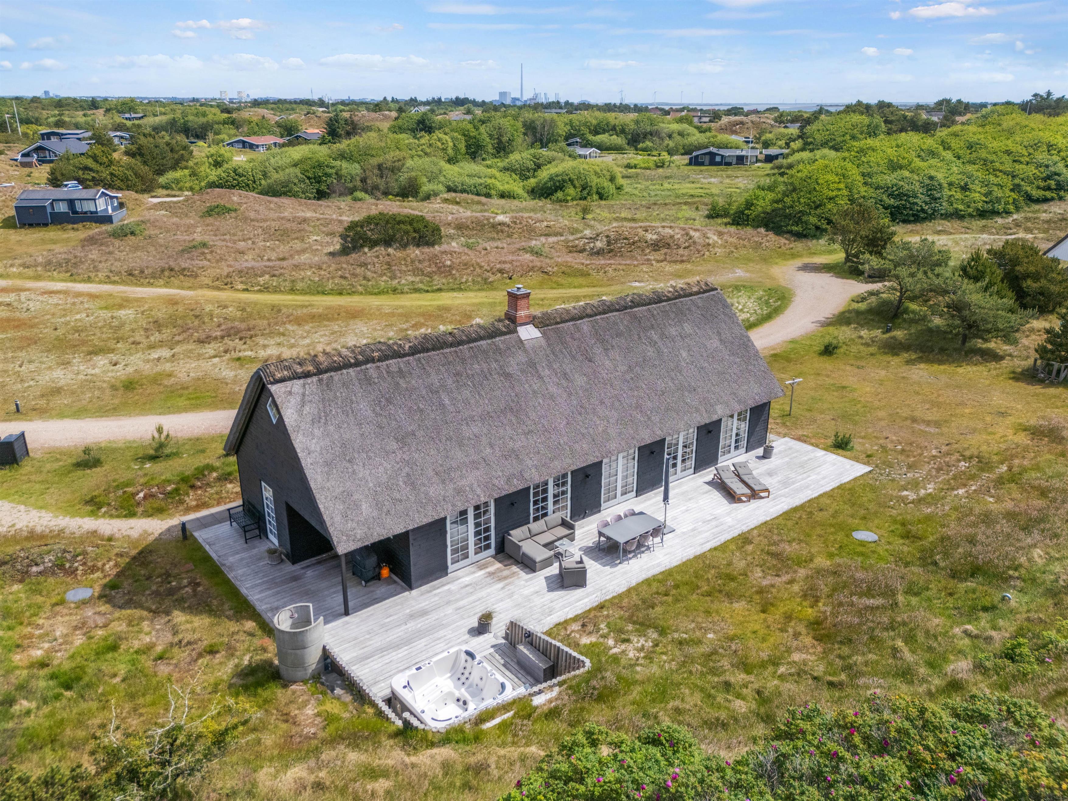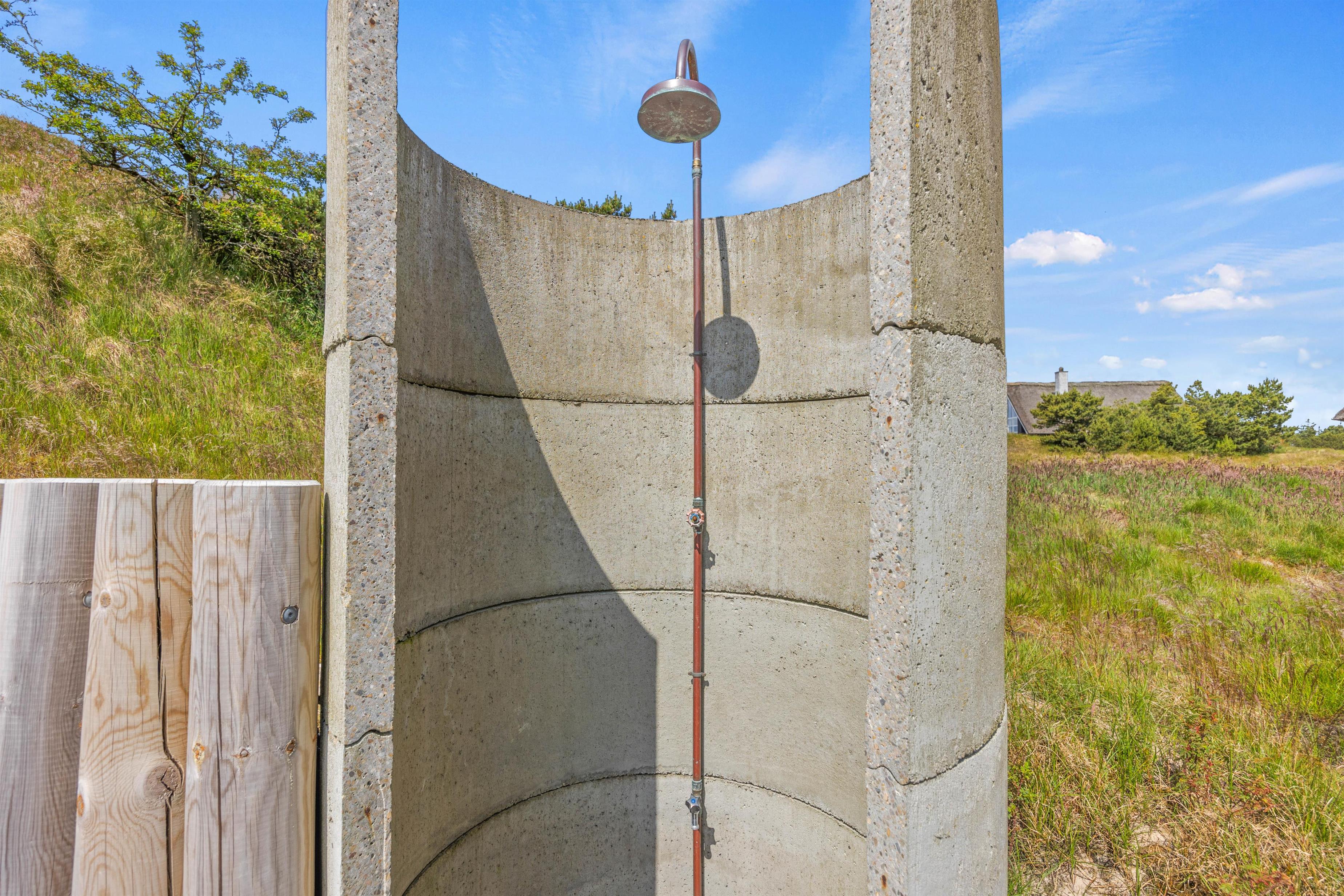 Efter en hyggelig grillaften kan I sætte jer godt til i udespaen, der har plads til 6 personer. Mærk det varme boblende vand og nyd roen, der er over at kigge på de viftende marehalm. Ved siden af udespaen er en udebruser, så I let kan blive skyllet eller vaske sandet af fødderne efter en tur på stranden. Denne kan benyttes fra april til november.