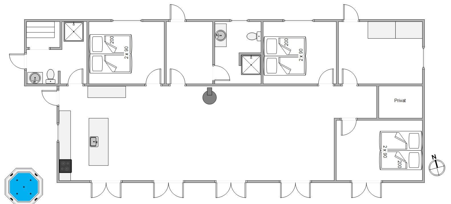 Når der virkelig skal slappes af, kan I benytte jer af infrarødsaunaen, der er at finde på det ene badeværelse. Kom helt ned i gear og få kroppen varmet godt igennem inden sengetid. Når timerne bliver sene, kan I fordele jer på de 3 soveværelser. Alle soveværelser er indrettet med komfortable dobbeltsenge, så I er sikret en god nattesøvn. Fra et af soveværelserne er der adgang til den skønne træterrasse.