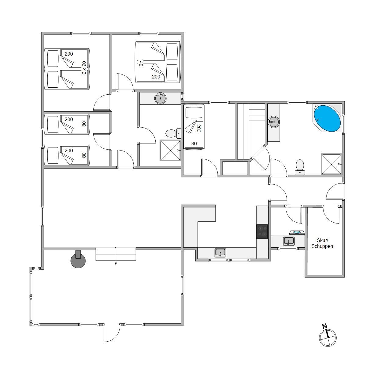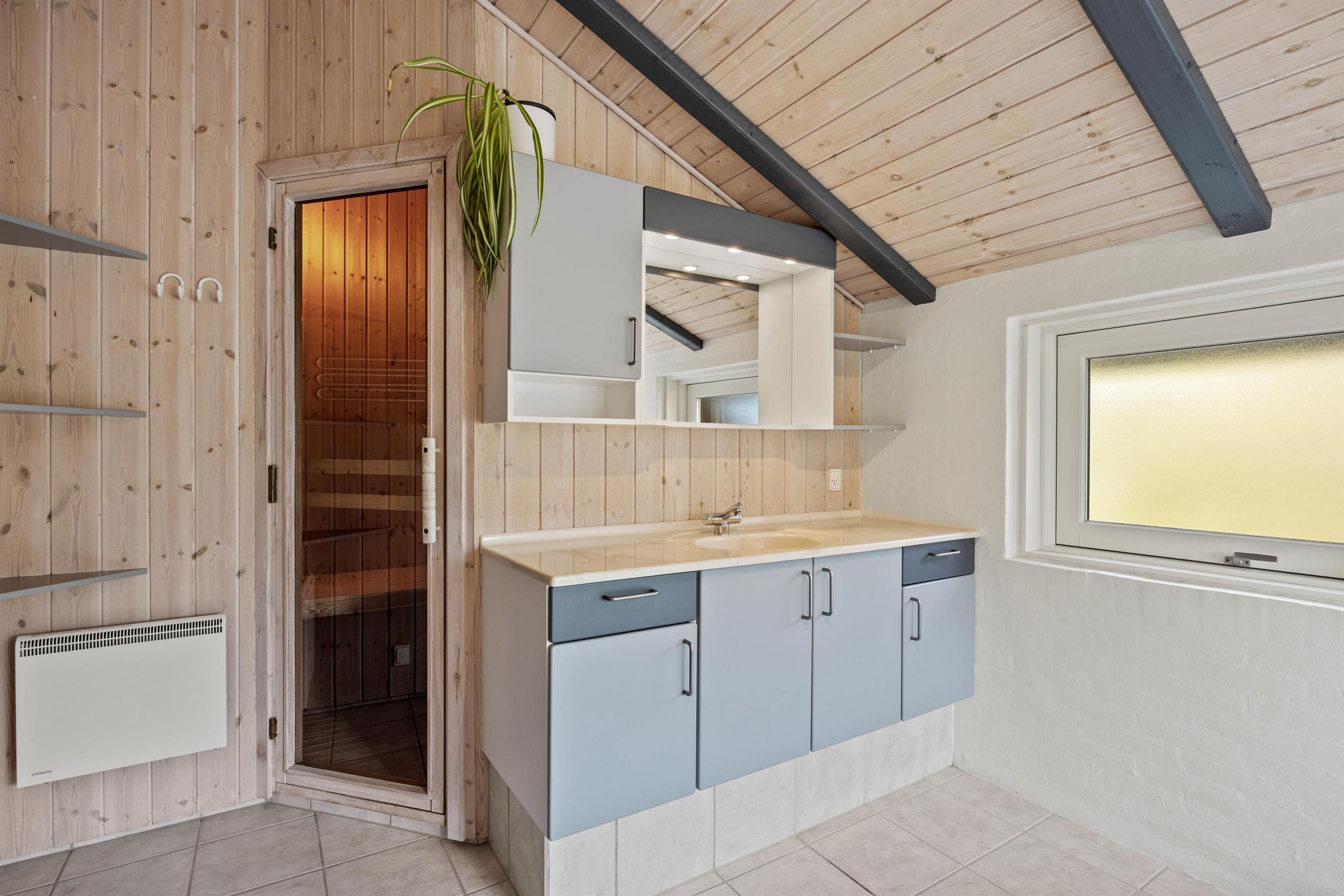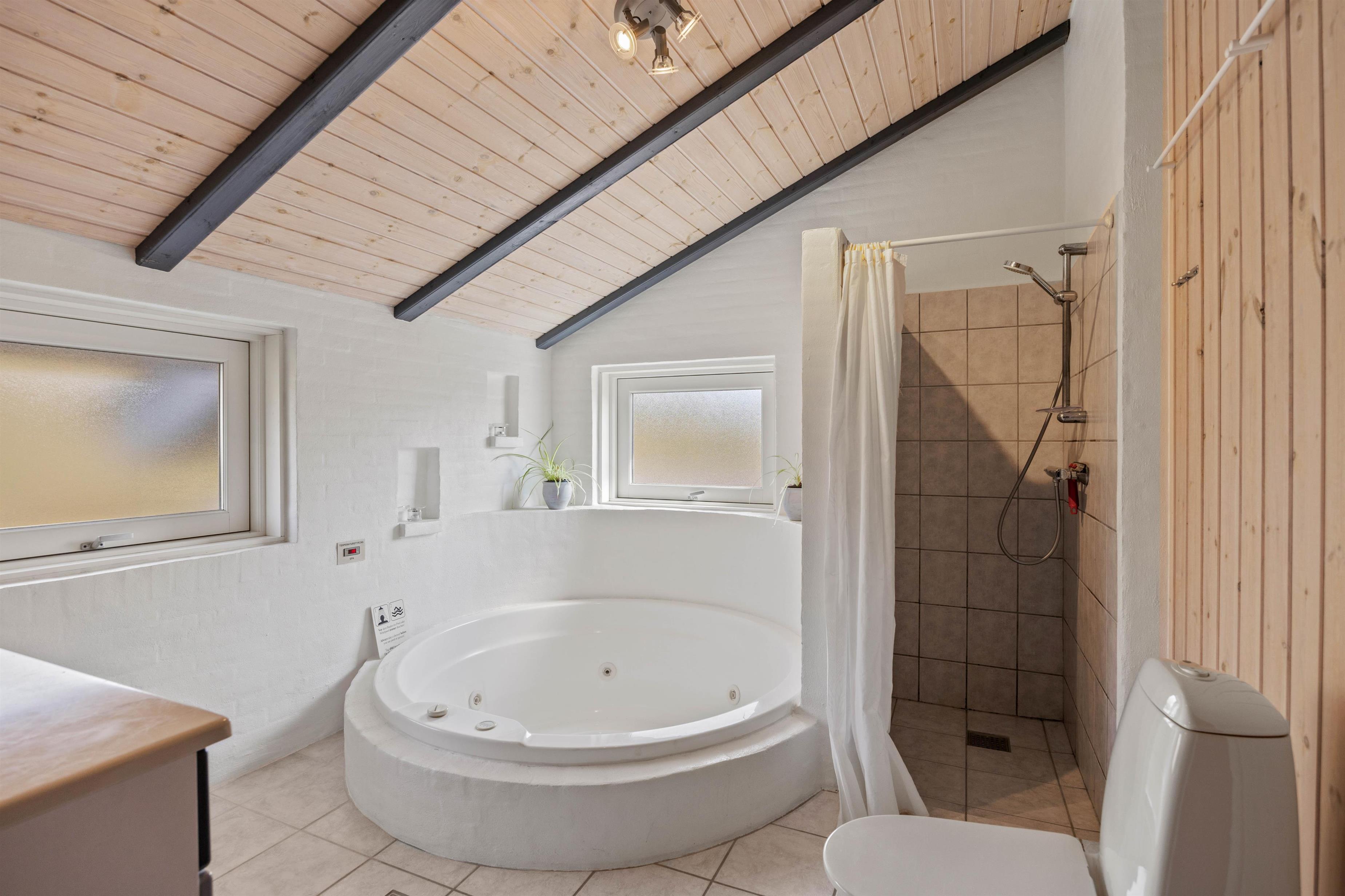 Et af feriehusets højdepunkter er det store badeværelse, hvor I finder et standvandsspa og feriehusets varme sauna. Her kan I sætte jer godt til rette i det varme vand og mærke bobler mod ryggen. Praktisk har feriehuset 2 badeværelser, så I undgår morgenkøen. Her er både vaskemaskine og tørretumbler, og sovepladserne er fordelt på 4 fine værelser.