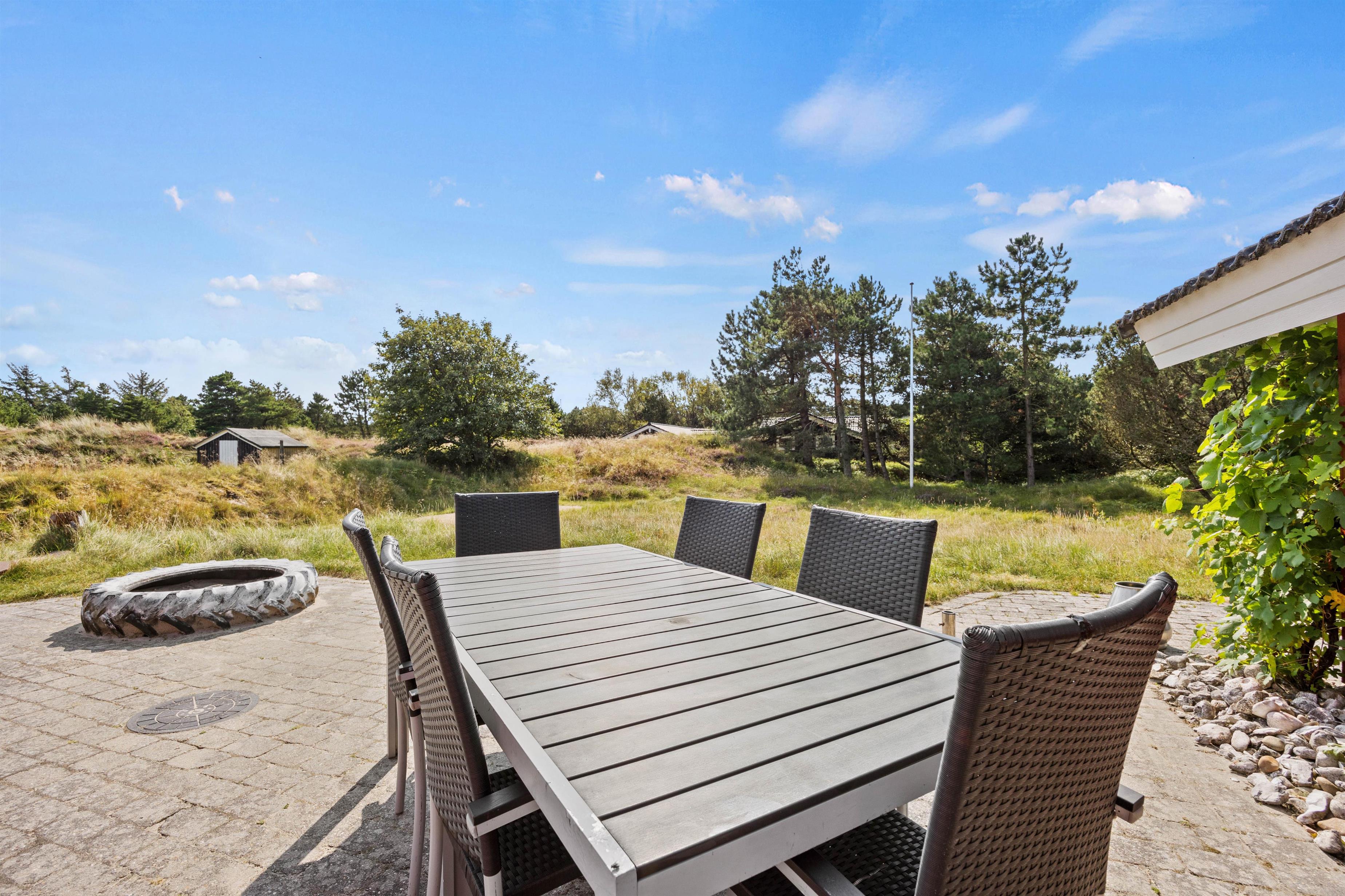 På terrassen står havemøblerne klar til jer. Her kan I nyde solen eller sidde i skyggen på den overdækkede del af terrassen. Udenfor har sommerhuset også sin egen pentanquebane – find kuglerne frem og nyd det gode vejr. Afslut dagen med en hyggelig grillaften på terrassen efterfulgt af en lang gåtur på Stranden, som I finder små 1100 meter herfra.