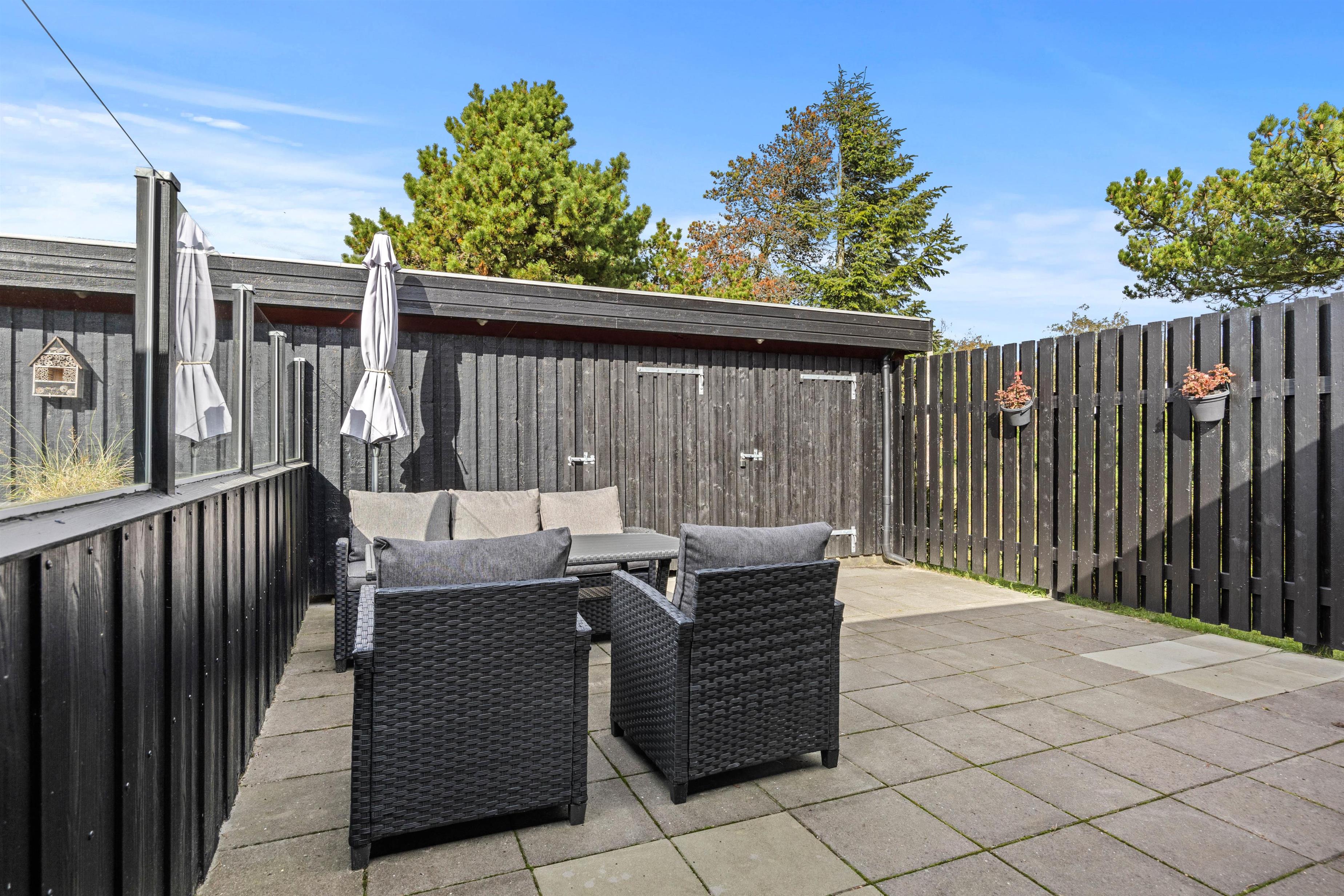 Afskærmet terrasse inviterer til afslapning
