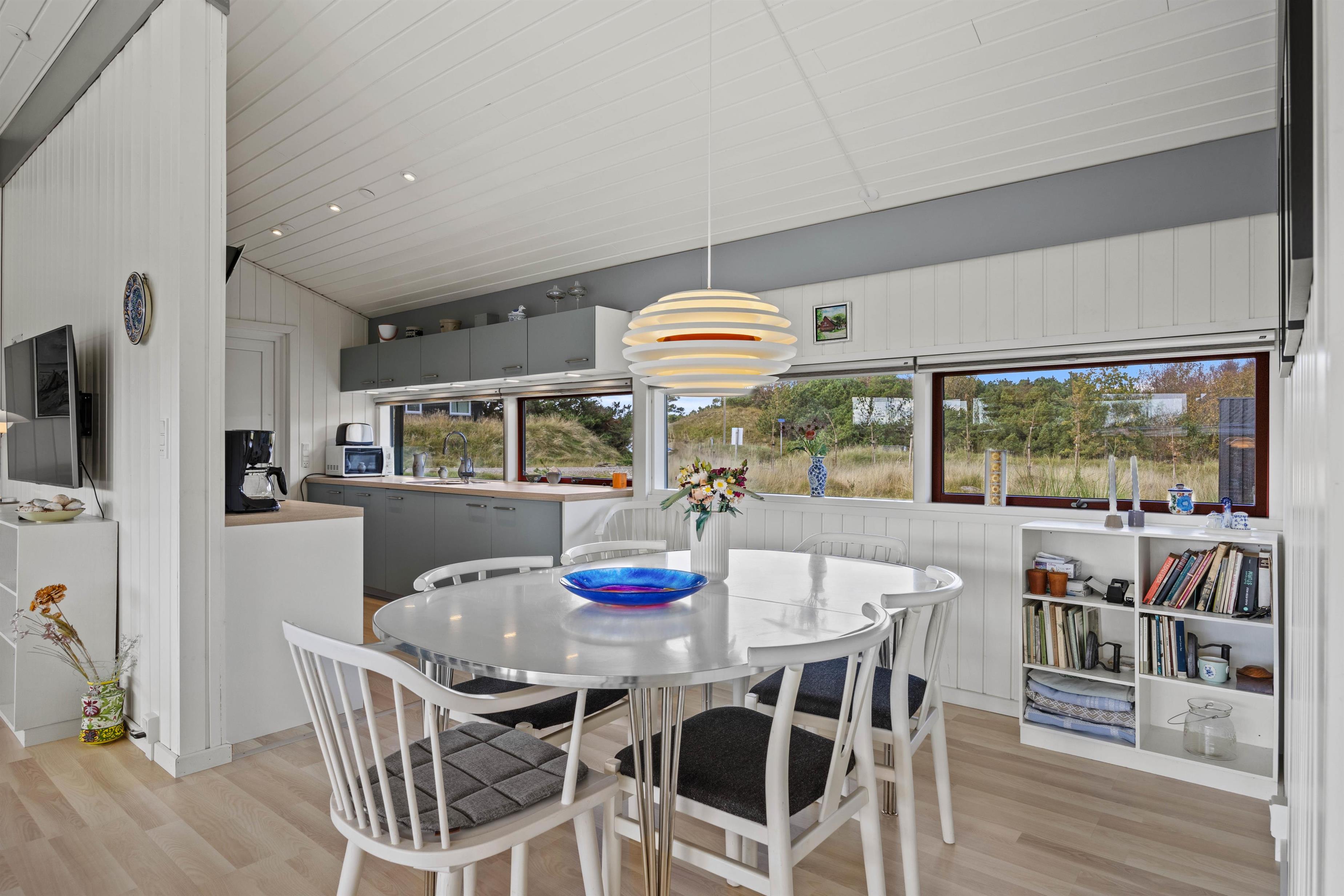 Feriehuset på Nørre Meldbjergdal 2 er 100 m² stort og tilbyder komfort samt moderne faciliteter. Det stilfulde feriehus har en rummelig stue med en hyggelig brændeovn, som skaber en varm og indbydende atmosfære på kølige aftener. I det veludstyrede køkken finder I blandt andet induktionskogeplade og opvaskemaskine, så madlavning bliver nem og opvasken hurtig overstået.
