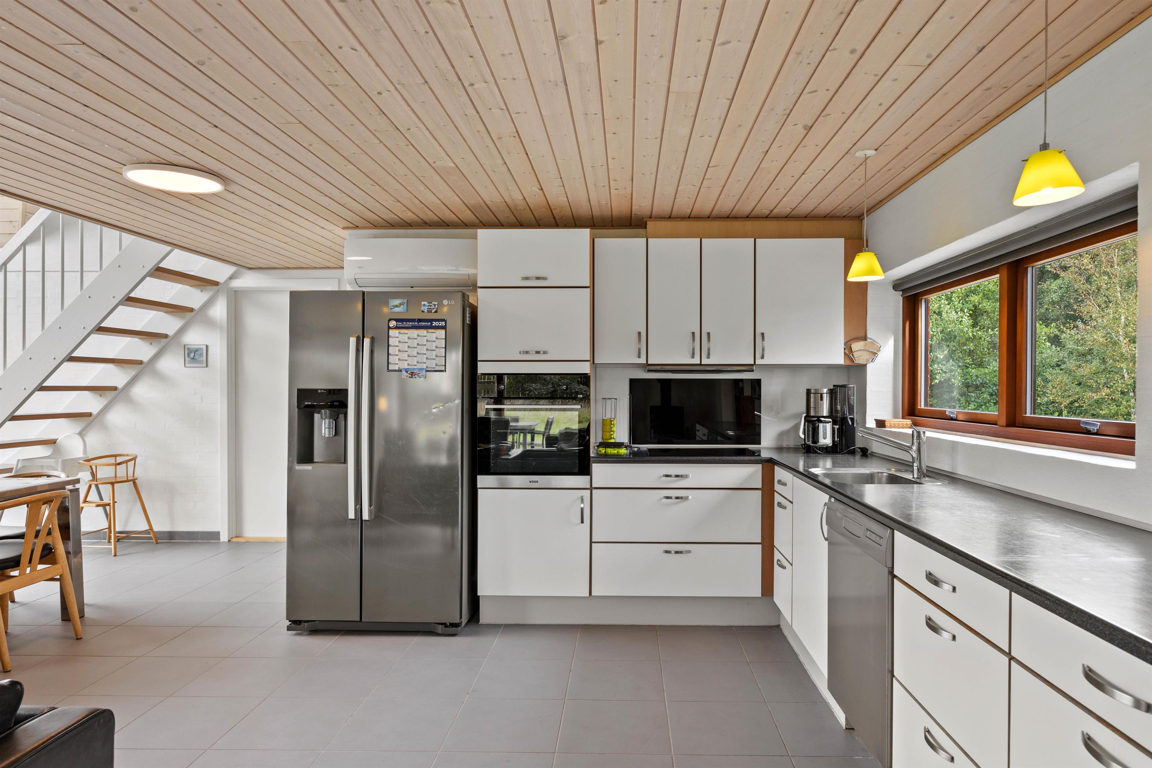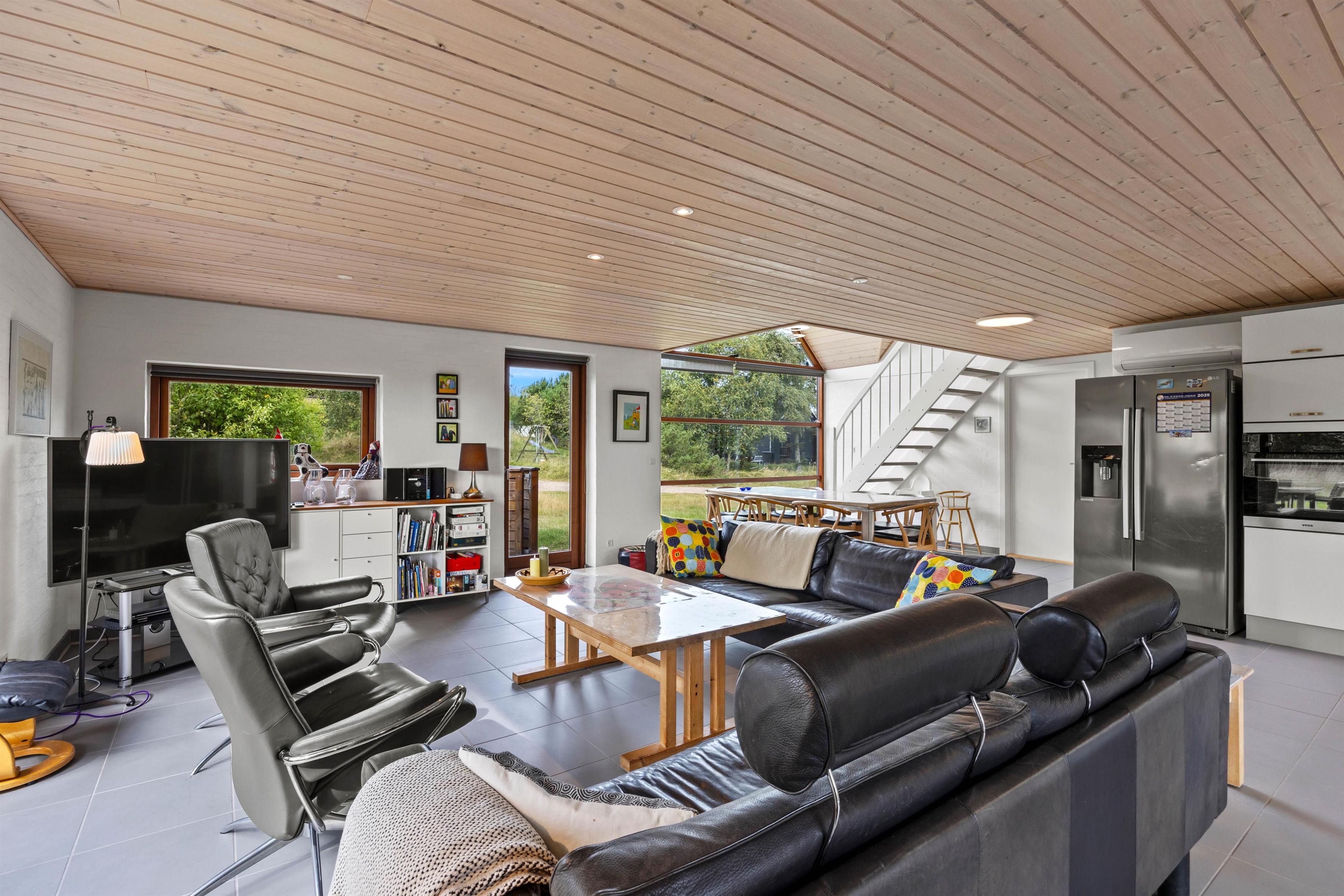 Flere af sommerhusets rum har klinkegulve med behagelig gulvvarme – en komfortabel detalje, især på badeværelserne, hvor det er ekstra rart med lune fødder. Det hele bindes sammen af et lyst og venligt interiør, der gør det let at falde til og føle sig hjemme – uanset årstid.
