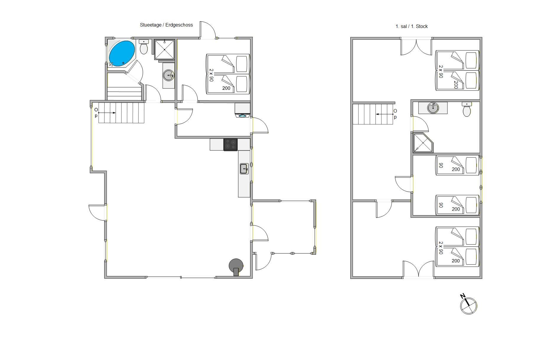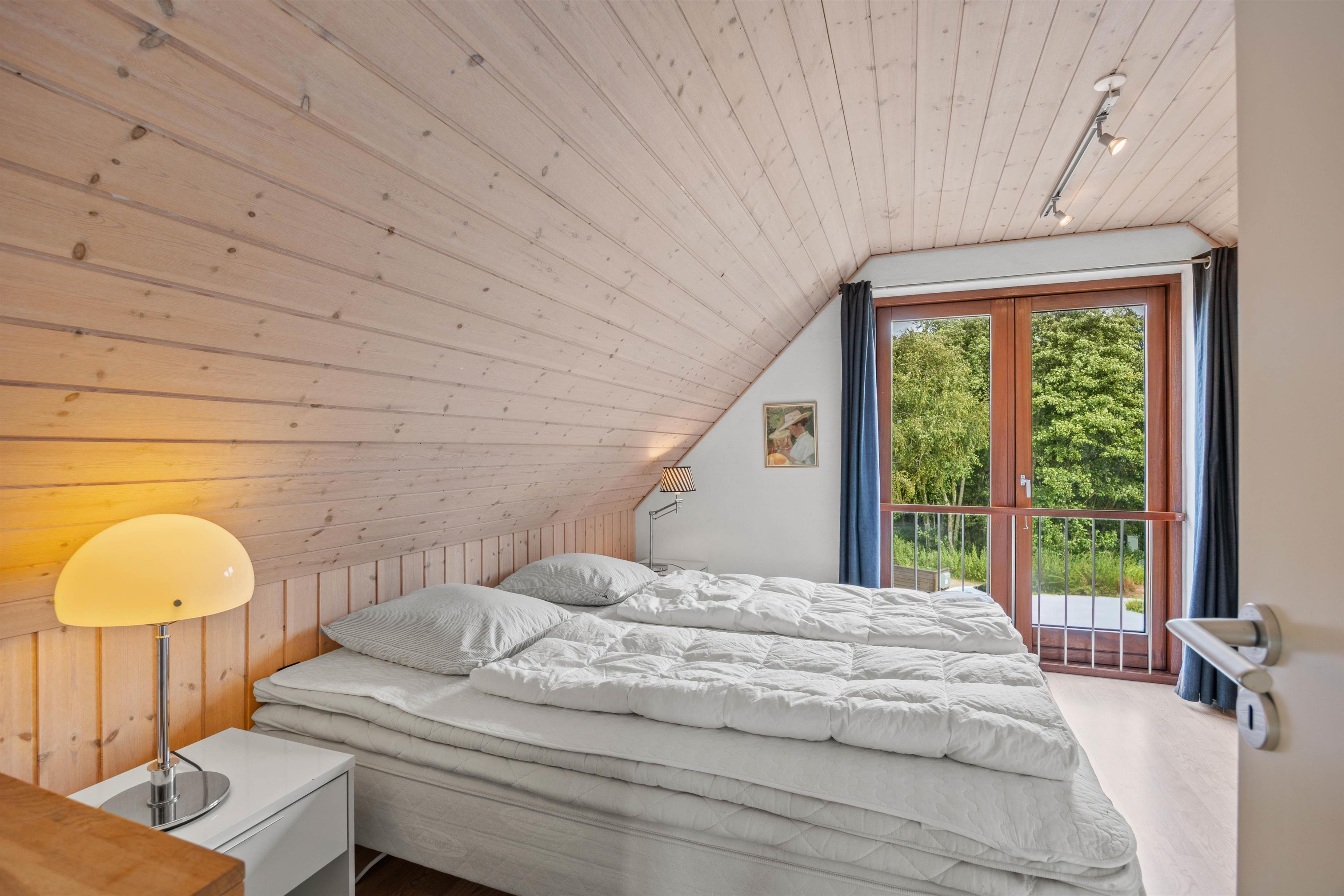 Sommerhuset er i 2 plan og giver jer en funktionel indretning med god plads til hele familien eller vennegruppen. 3 af de 4 soveværelser ligger på førstesalen sammen med det ene af sommerhusets 2 badeværelser. Det sidste værelse og badeværelse ligger i stueplan. Sovepladserne fordeler sig på 3 dobbeltsenge og 2 enkeltsenge. Alle værelser er lyst indrettet og skaber en behagelig ramme for afslapning og nattesøvn.